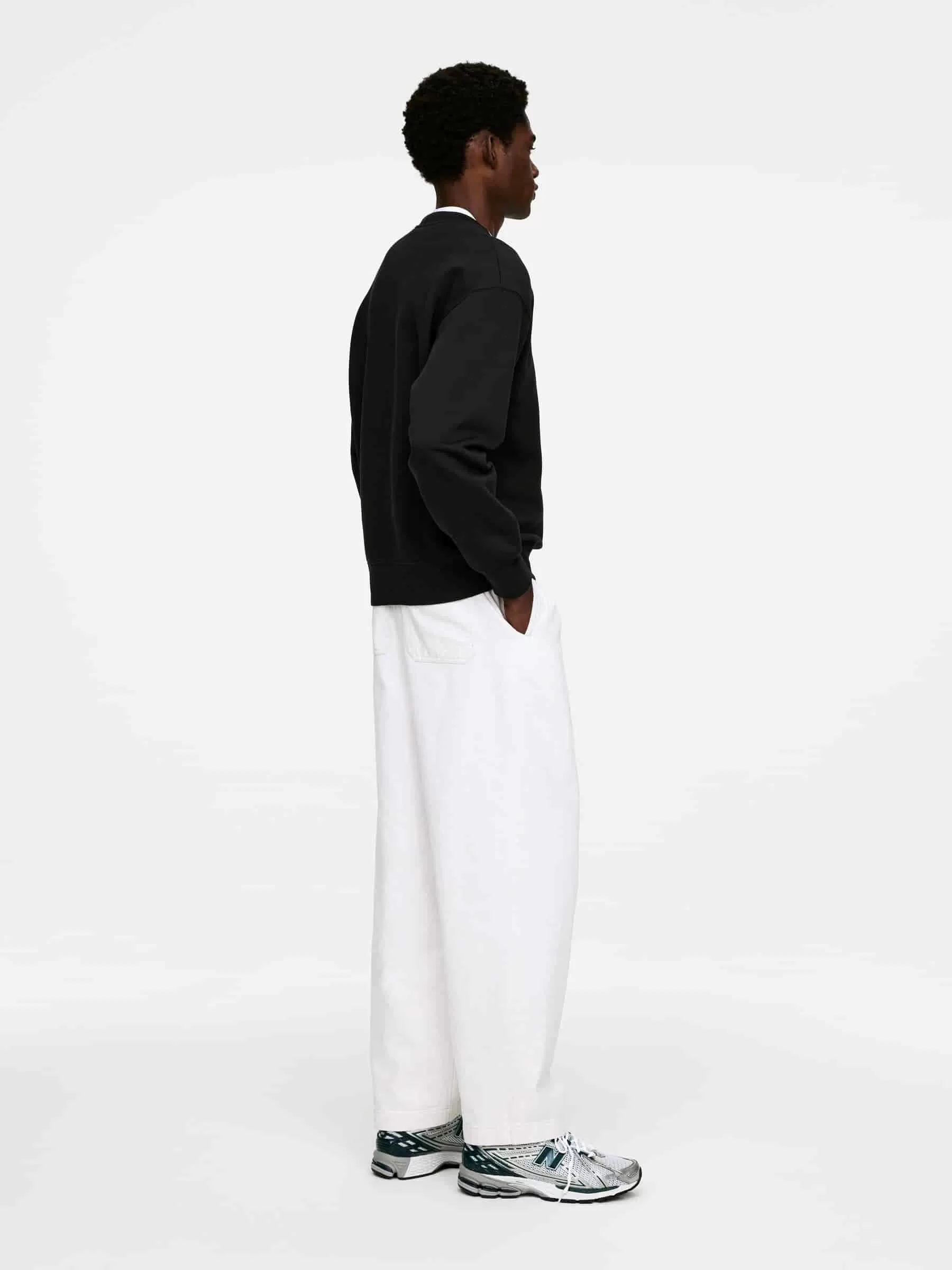 Sudadera confeccionada con un tejido de rizo francés elaborado en algodón. Un estilo relajado con hombros ligeramente caídos. Pasamanería de canalé.