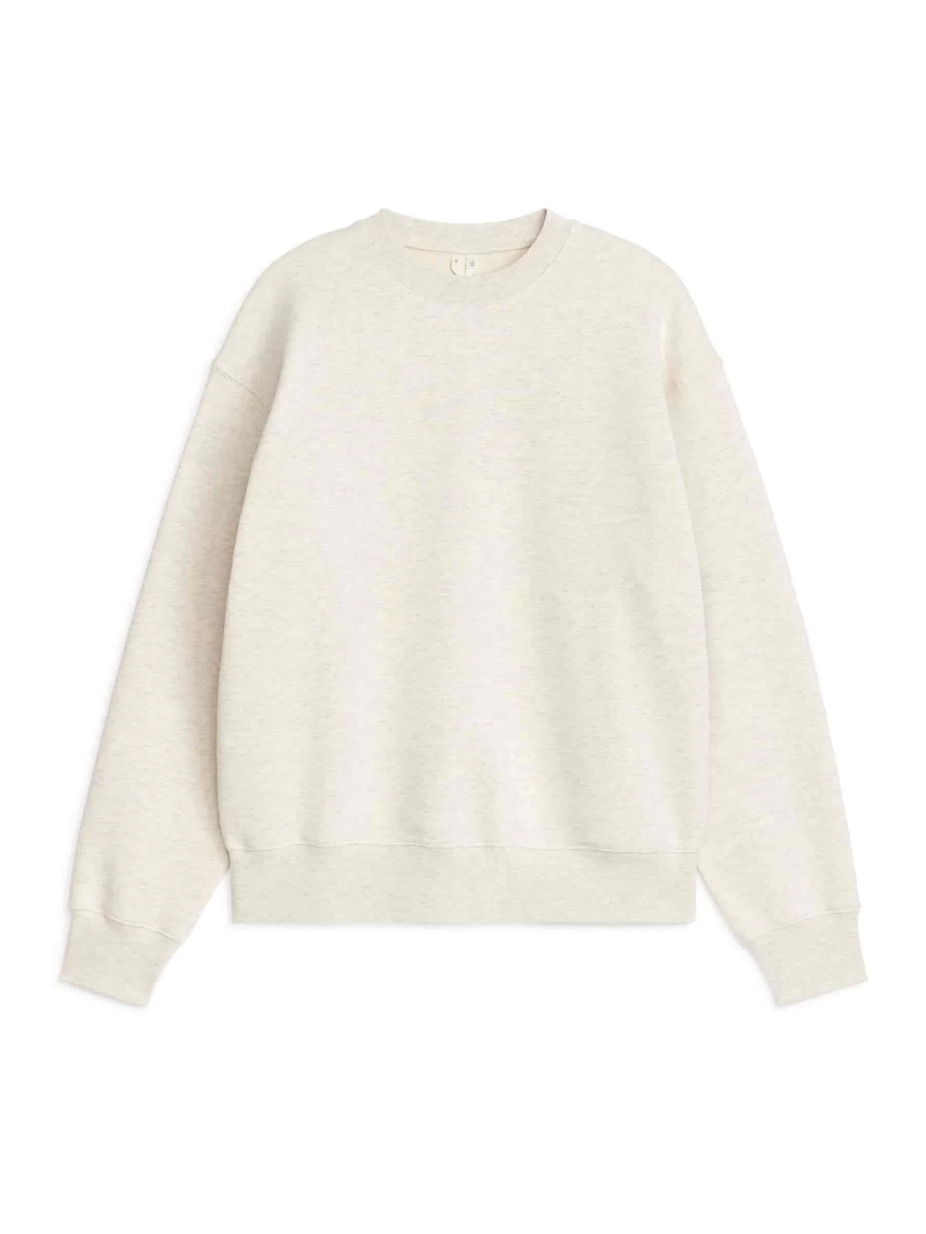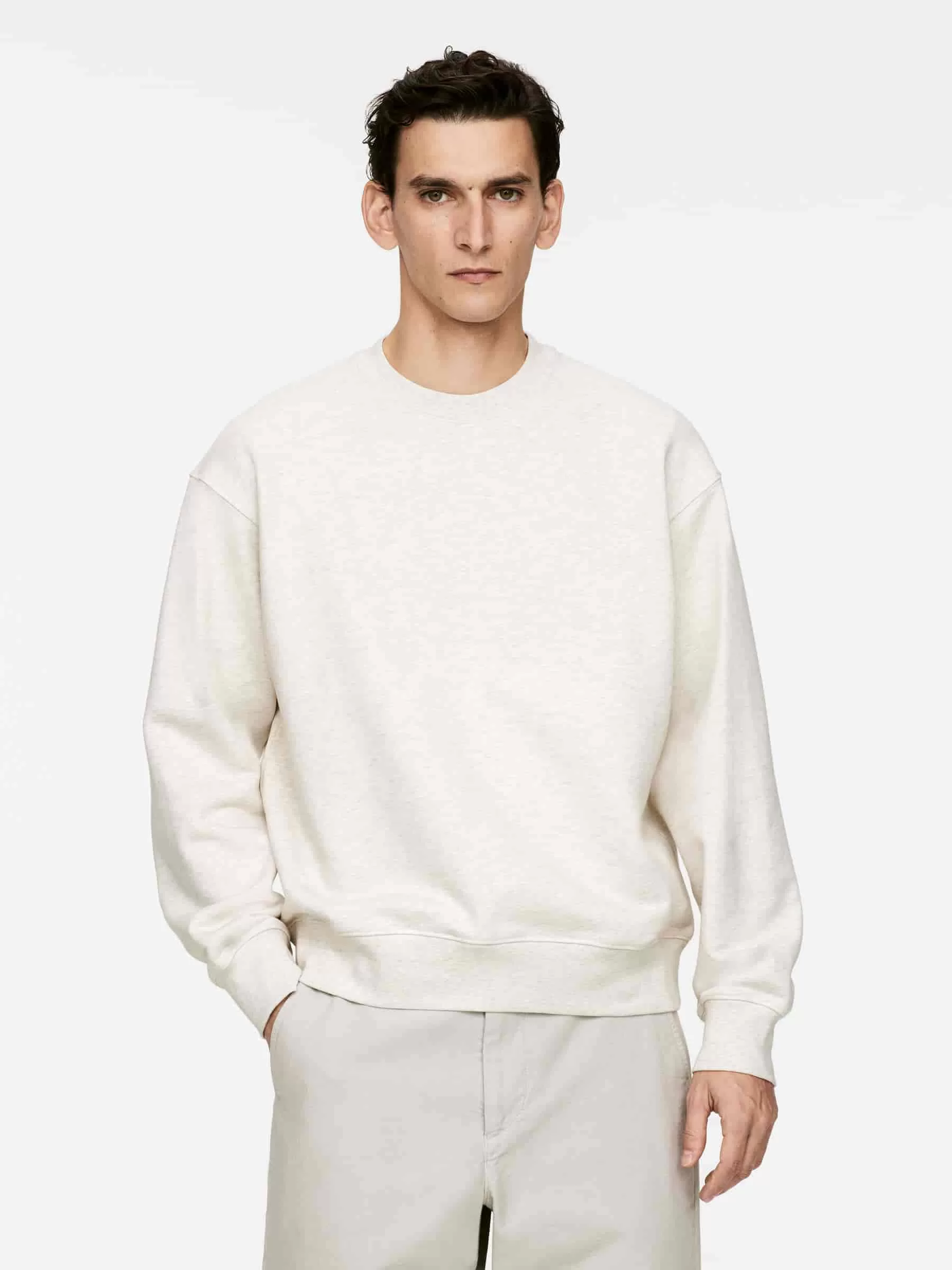 Sudadera confeccionada con un tejido de rizo francés elaborado en algodón. Un estilo relajado con hombros ligeramente caídos. Pasamanería de canalé.
