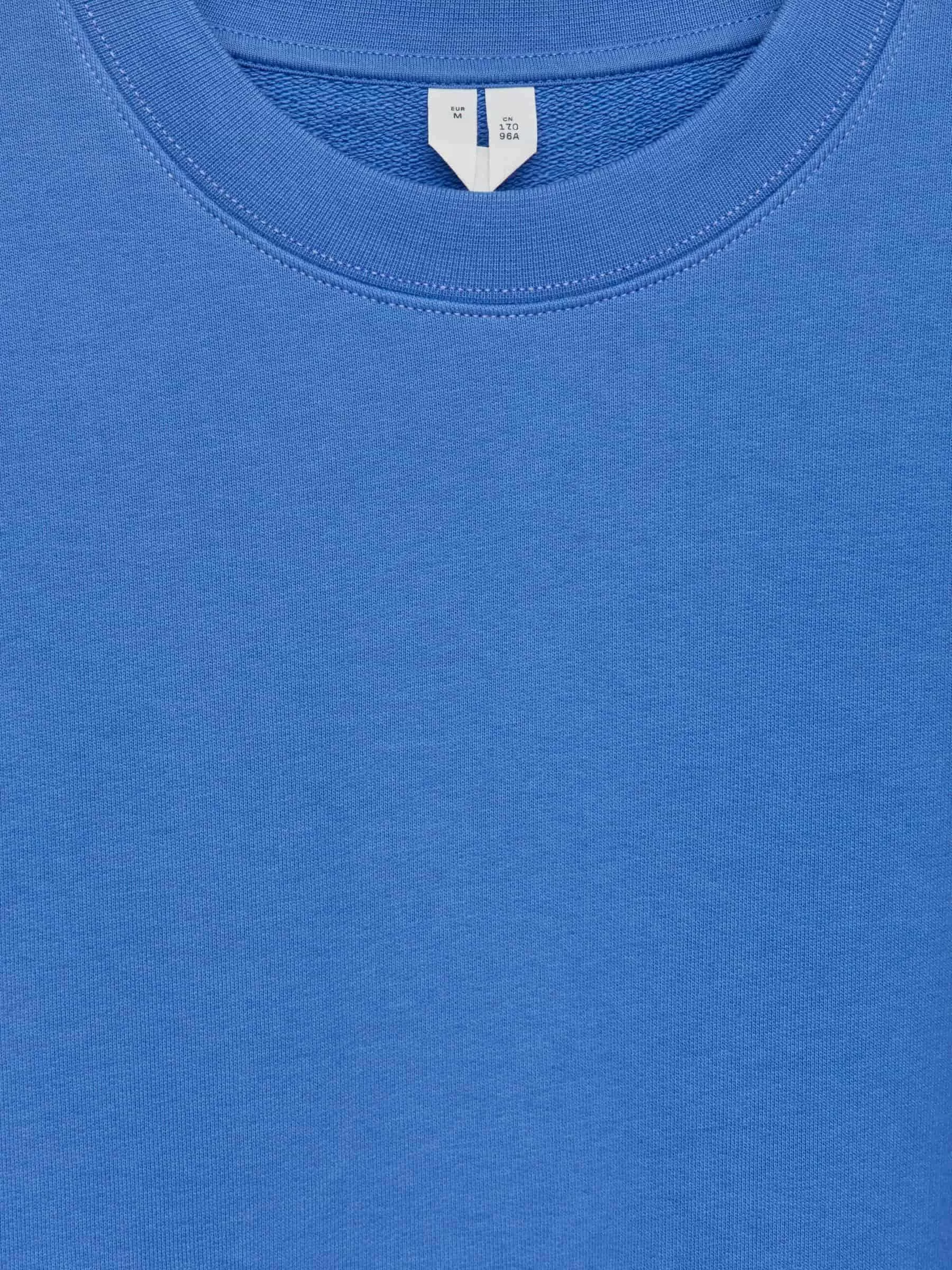 Sudadera confeccionada con un tejido de rizo francés elaborado en algodón. Un estilo relajado con hombros ligeramente caídos. Pasamanería de canalé.
