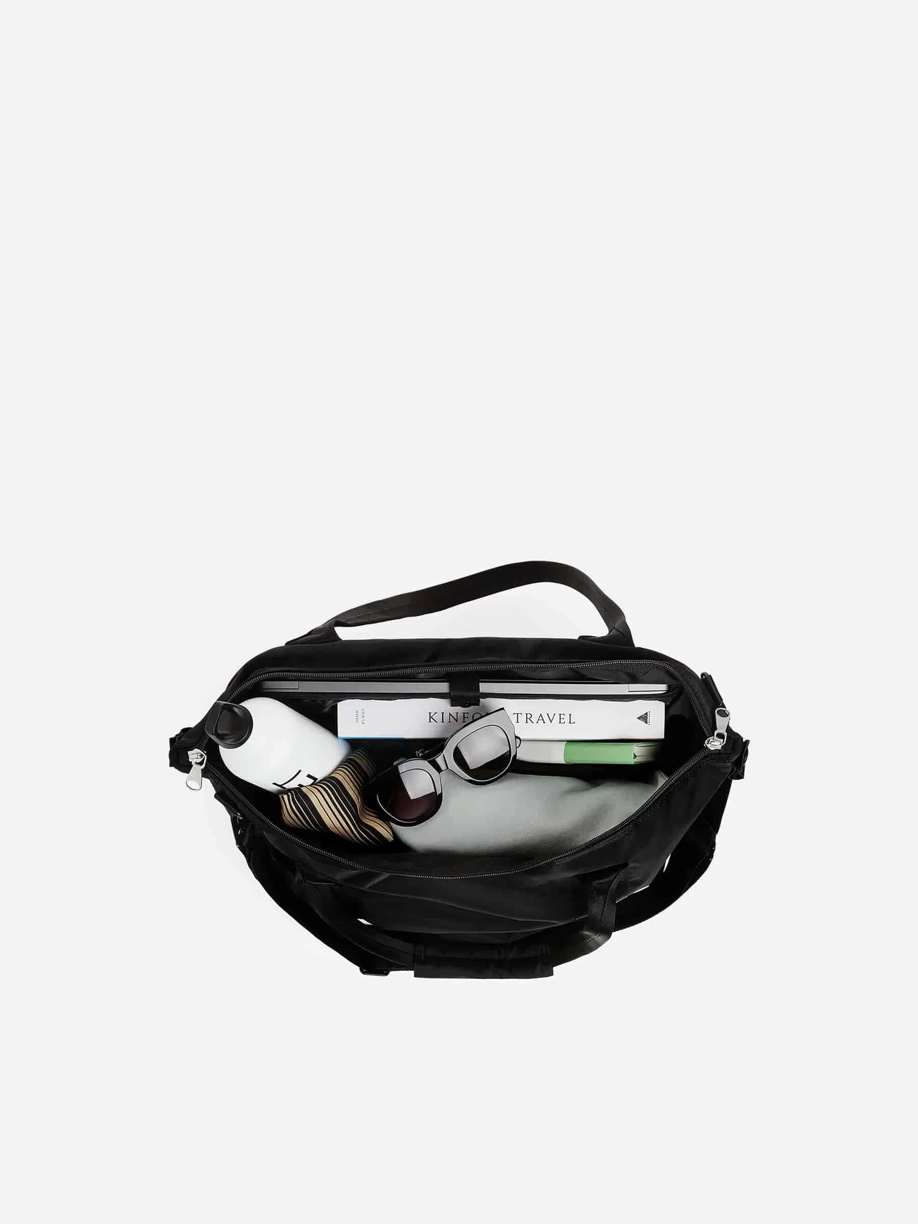 Ideal para pasar la noche, el bolso 36-Hour está confeccionado con un tejido exterior de nailon duradero y adornado con correas tonales. Las medidas de los compartimentos interior y exterior están personalizadas para artículos de viaje estándar, como ordenador, tableta, cargador, pasaporte y un libro de bolsillo, para facilitar el acceso y la organización. Cierre con cremallera bidireccional, lengüetas laterales ajustables, bandolera desmontable. Dos bolsillos con cremallera y compartimento para portátil/tableta. Medidas 42 x 18 x 38 cm.