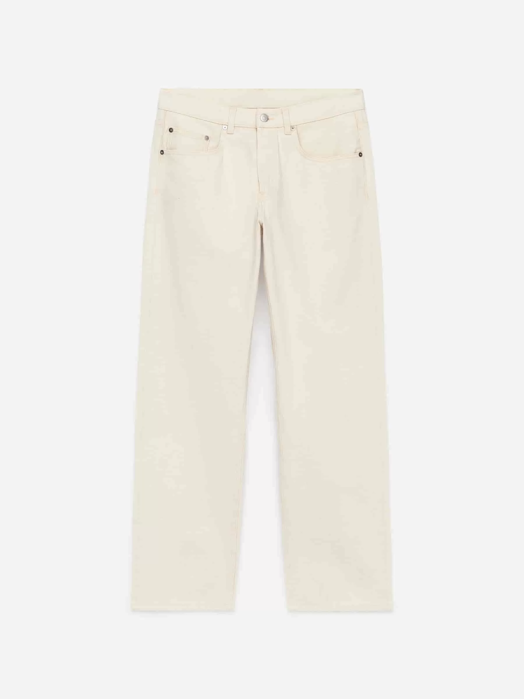 OCEAN está confeccionado en denim no elástico para ofrecer un ajuste holgado y cómodo y presenta cintura de talle medio y perneras rectas y largas. Bragueta de botones.