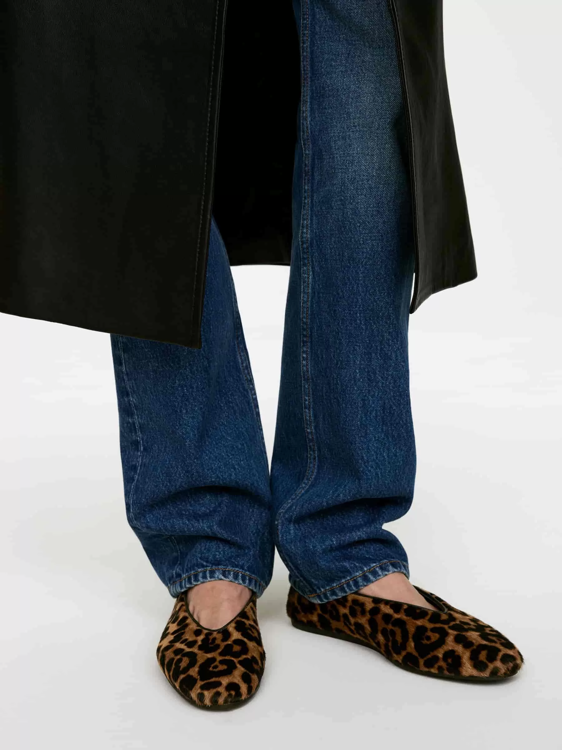 Bailarinas de piel con textura peluda. Diseñado con una línea superior en forma de V y una puntera redondeada. Suela de goma.