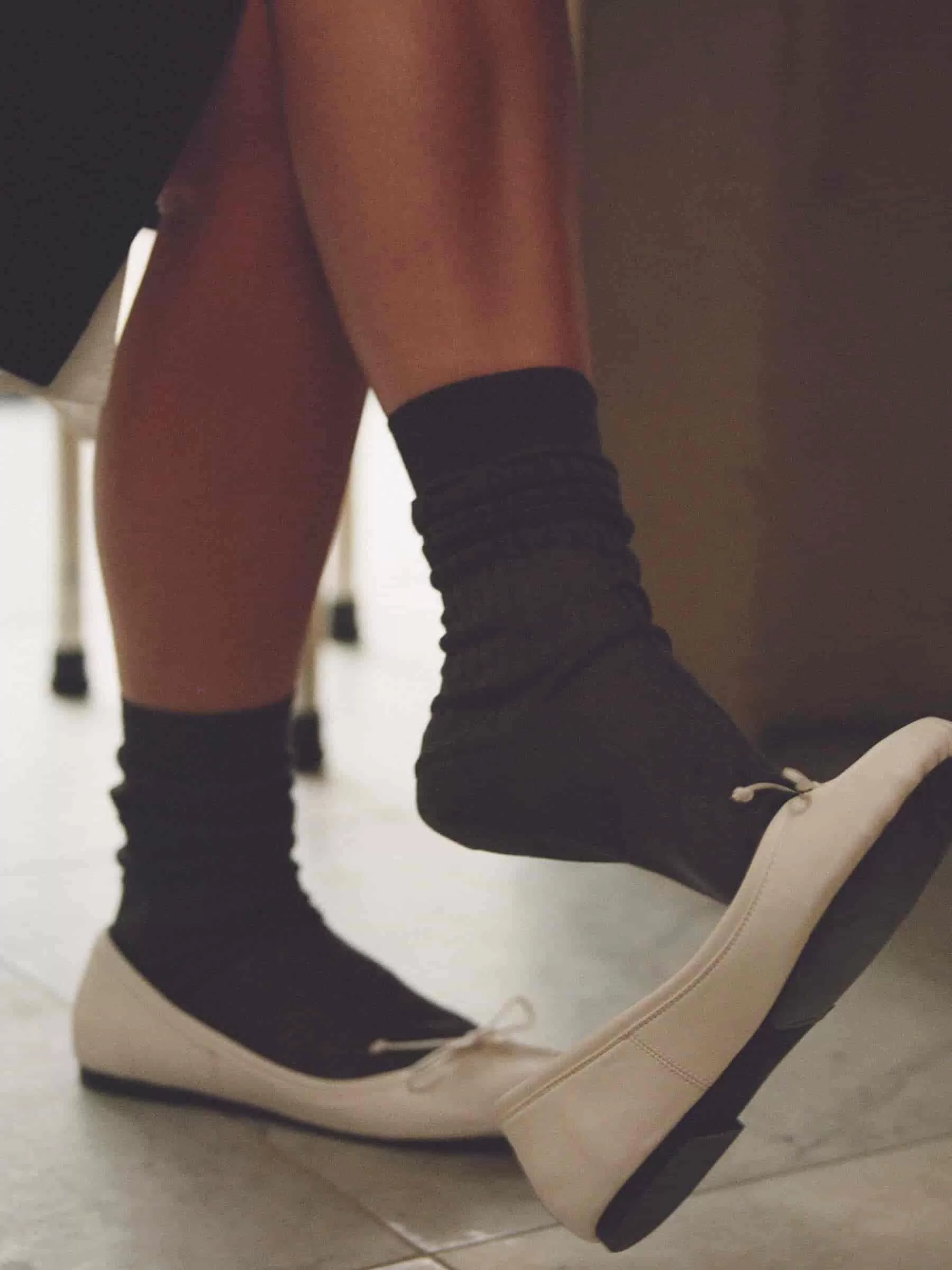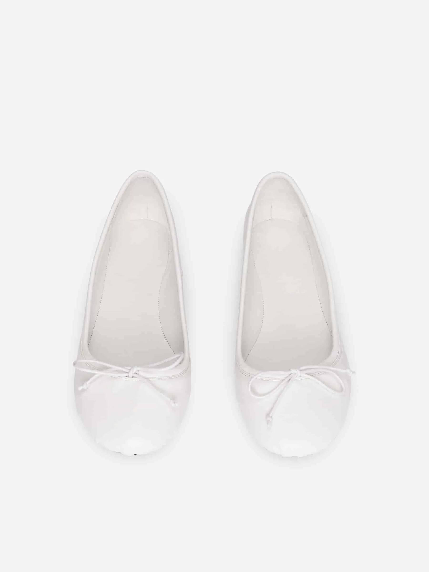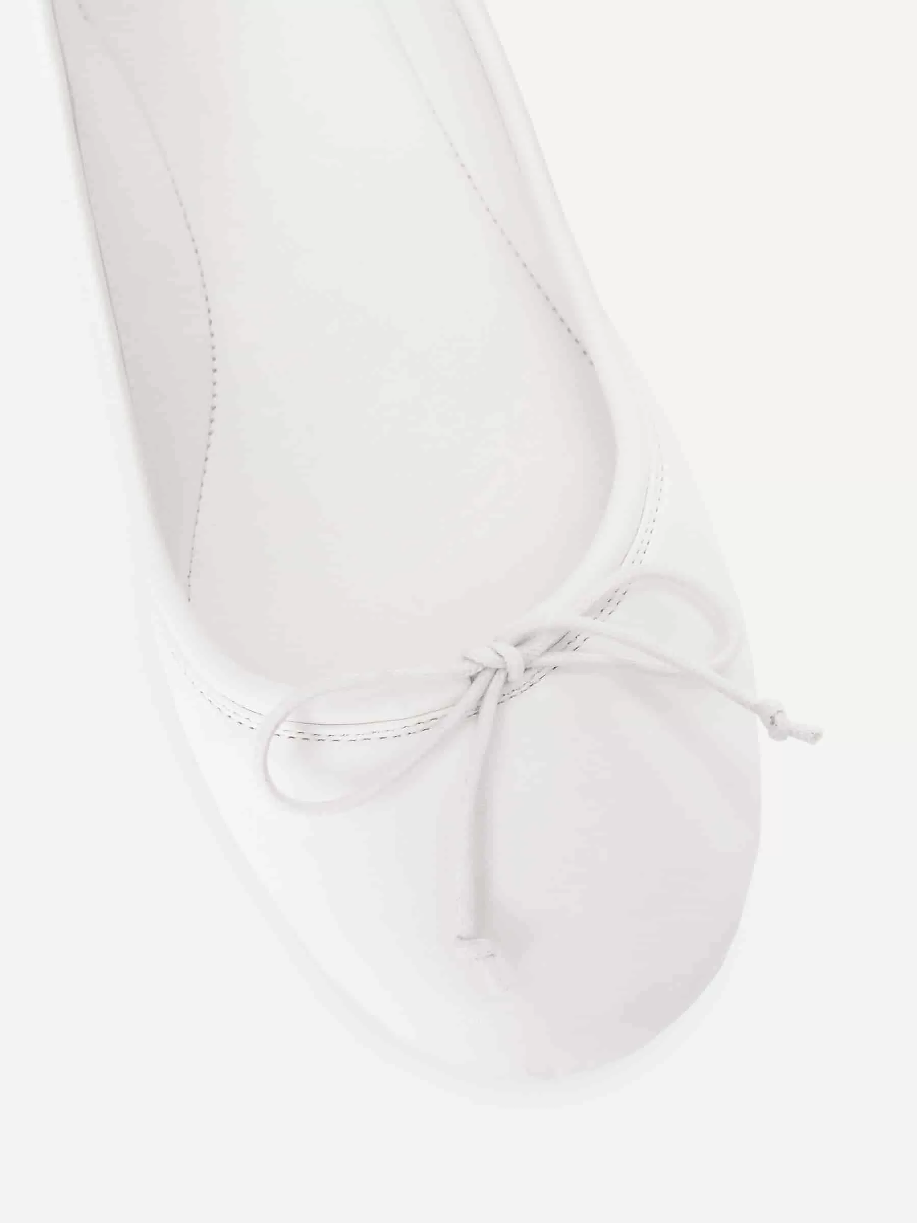 Bailarinas confeccionadas en piel sin cromo. Diseñado con cordones de satén y suela de goma.