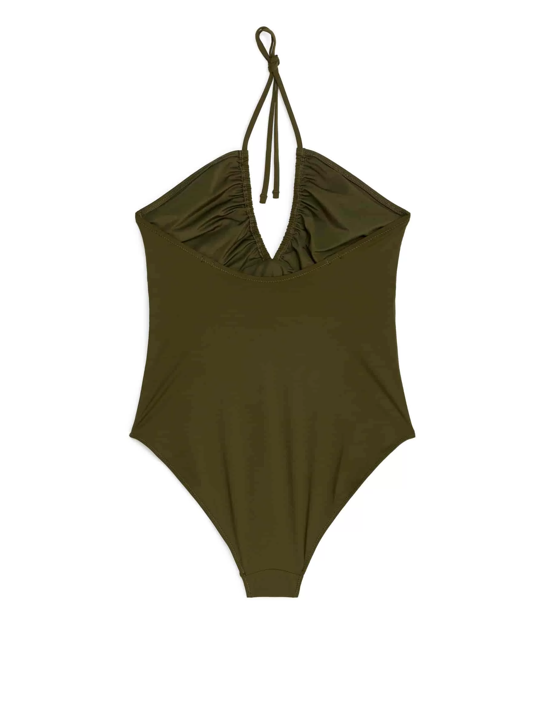 ARKE Mujer Bañador con cuello halter verde oscuro