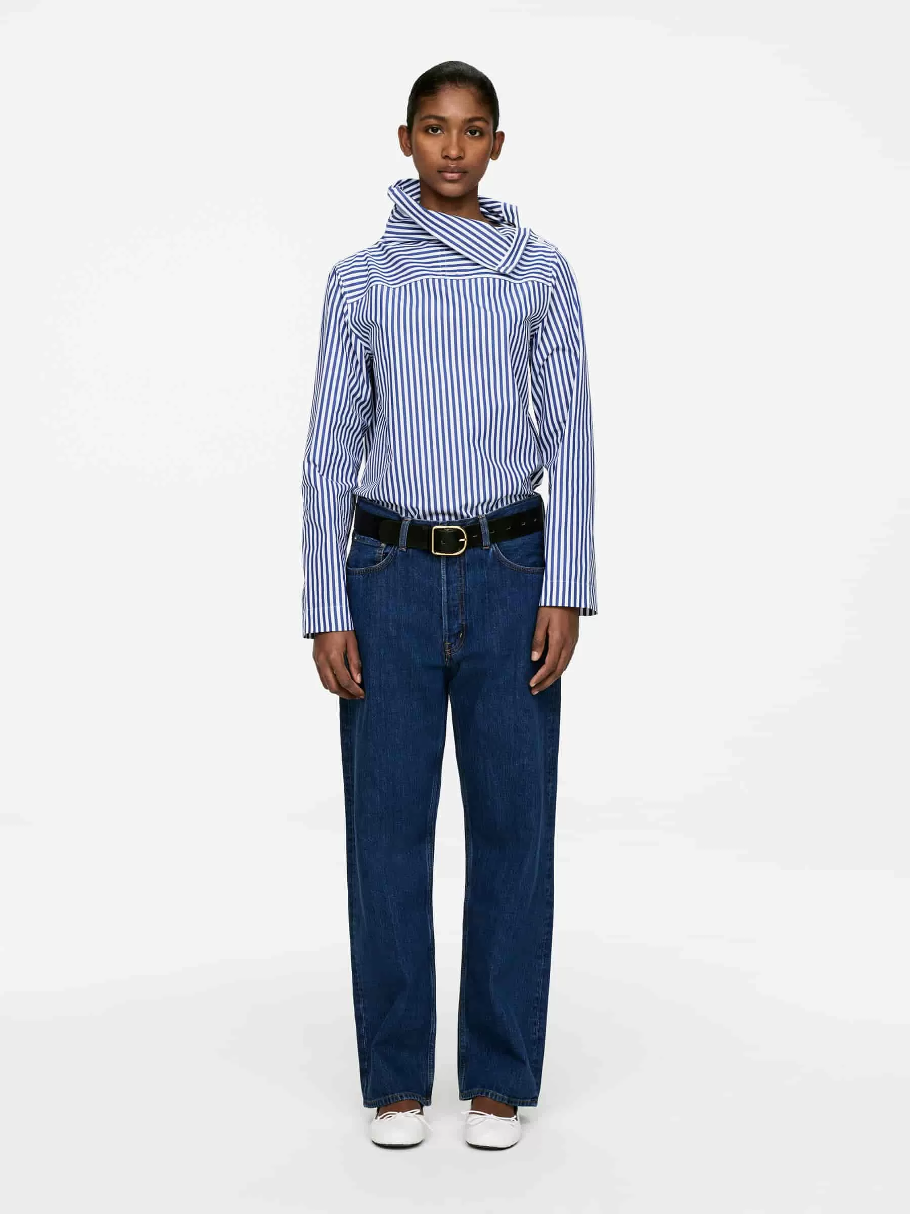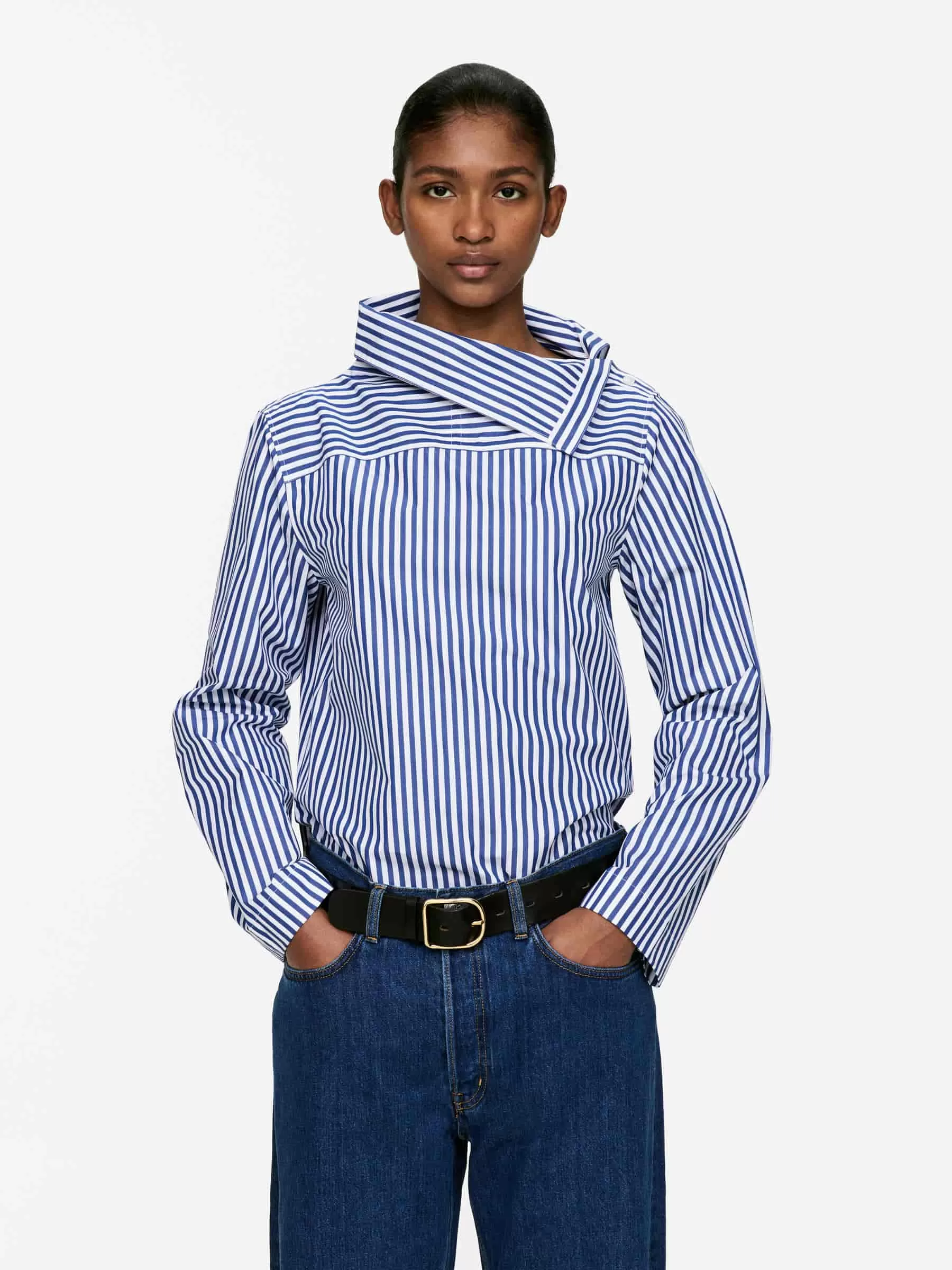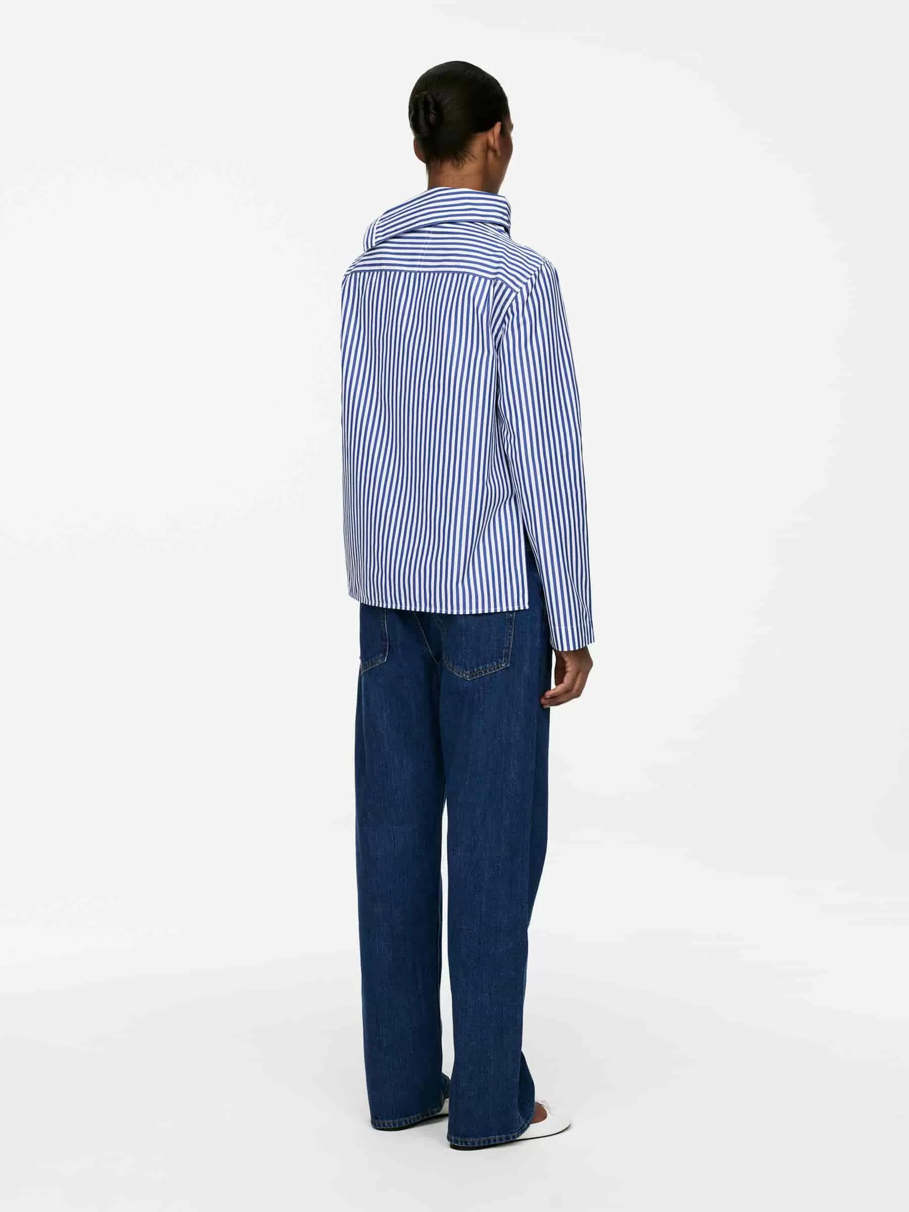 Blusa de algodón de manga larga con cuello doblado y cierre de botón. Ajuste regular.