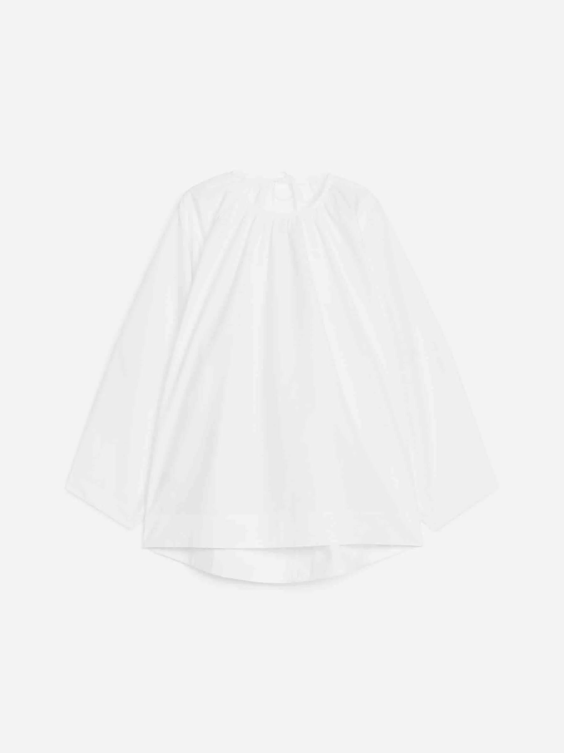 Blusa de algodón con espalda abierta, fruncido en el cuello y anudado en el centro de la espalda. Ajuste holgado.