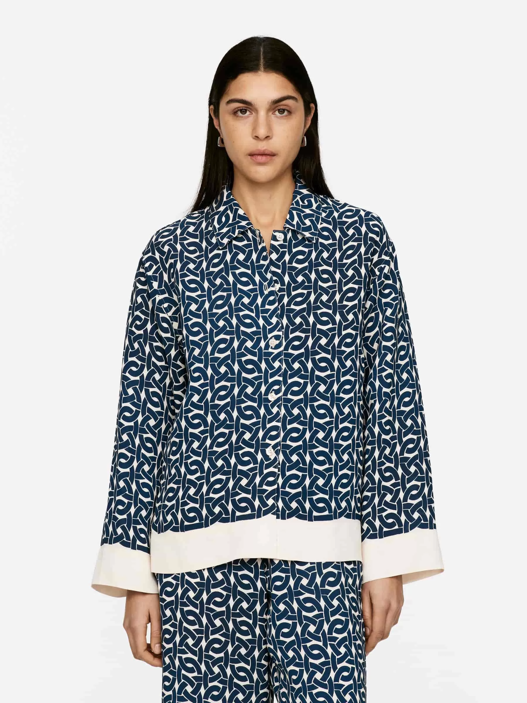 Blusa estampada con cierre de botones y cuello camisero. Ajuste holgado.