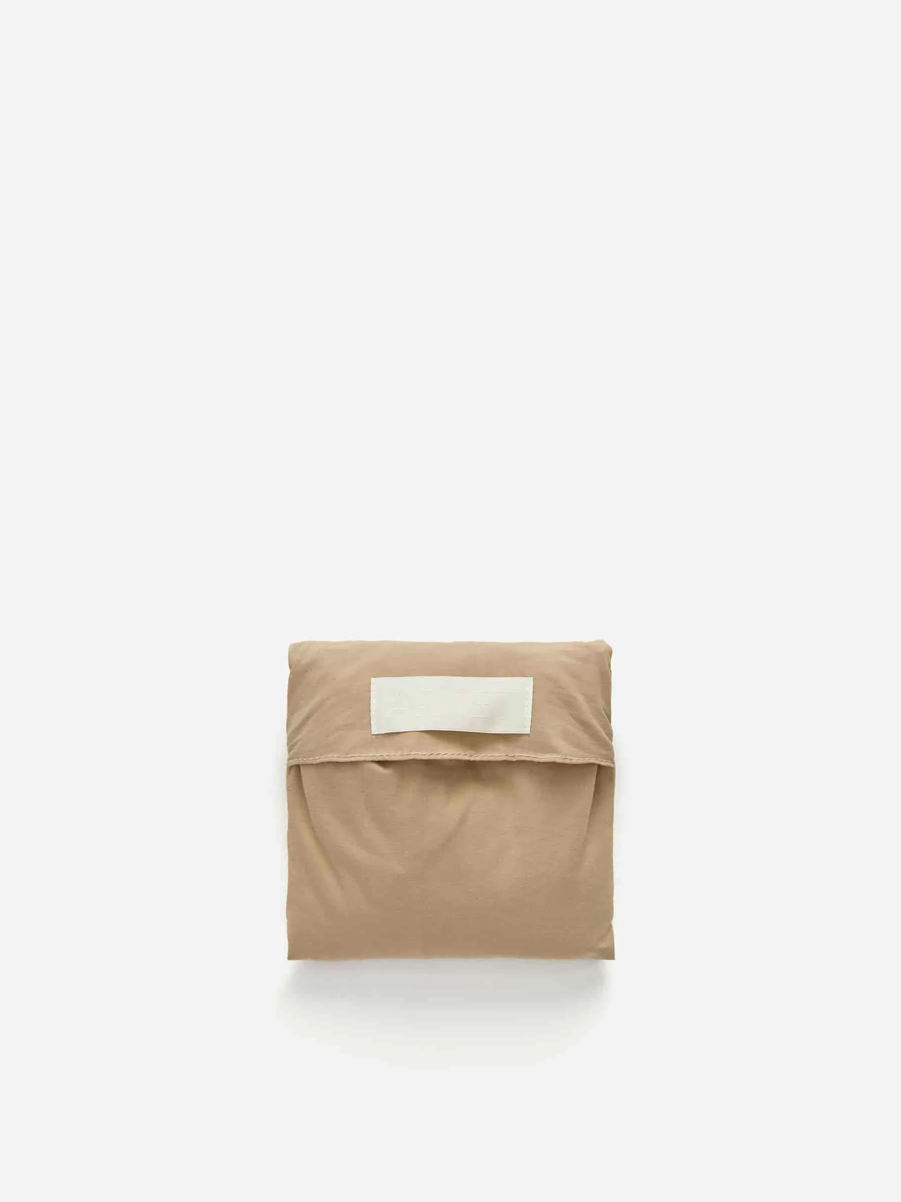 Bolso tote de nailon redondeado con bolsillo interior para guardar el bolso. Medidas del cuerpo: ancho 54 cm, alto 31 cm. Caída del mango 17 cm.