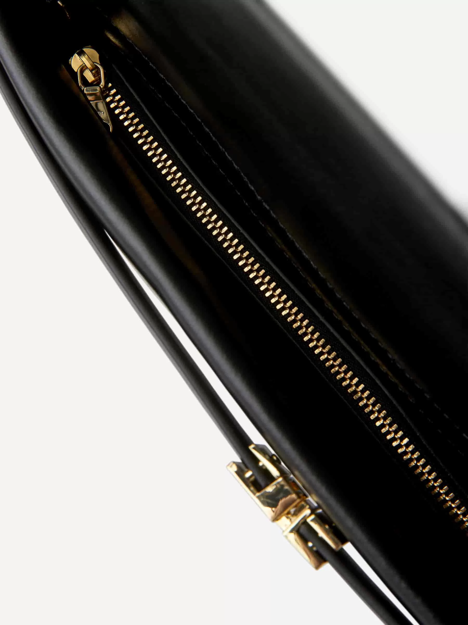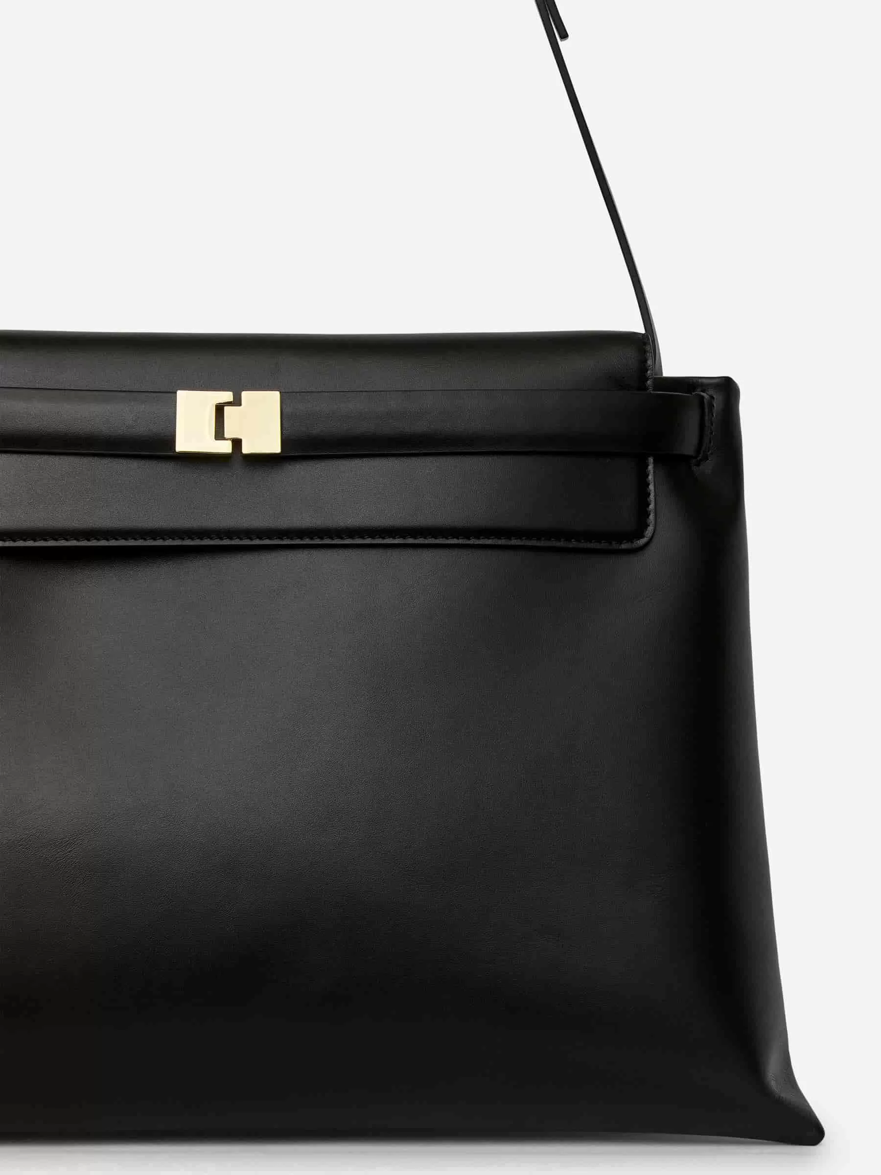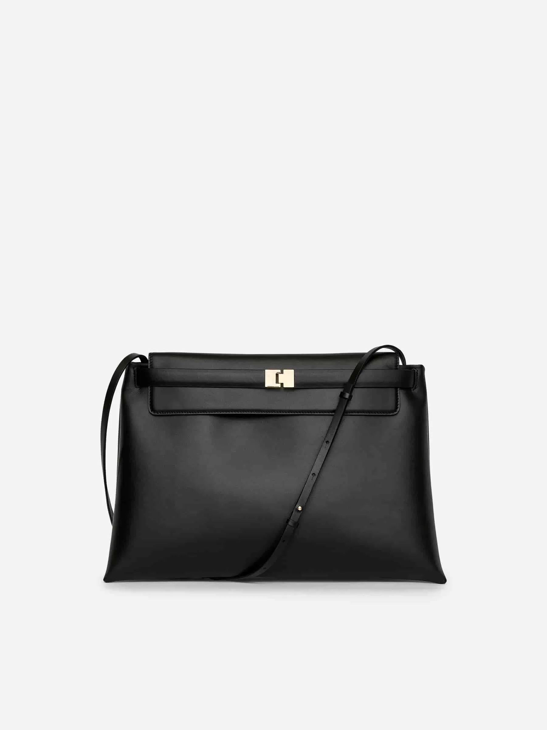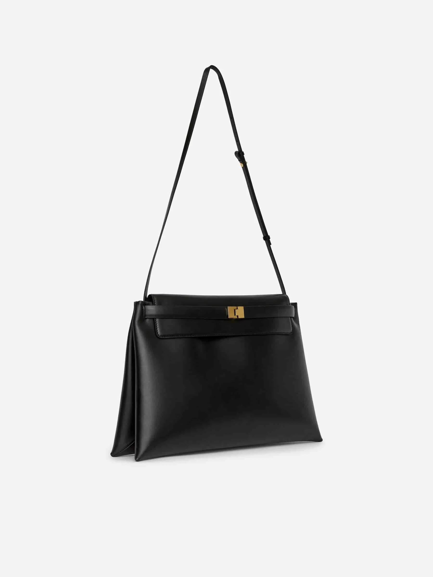 Bolso elaborado en piel sin cromo. Diseñado con un cinturón desmontable con una hebilla chapada en oro alrededor de la solapa superior. Bandolera extraíble y cierre con cremallera. El bolso se puede llevar como bolso de mano o al hombro. Medidas 39 x 25,5 cm.