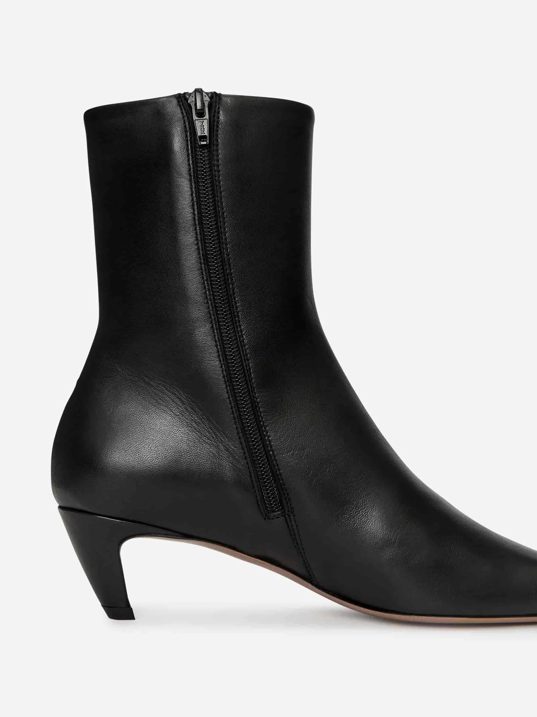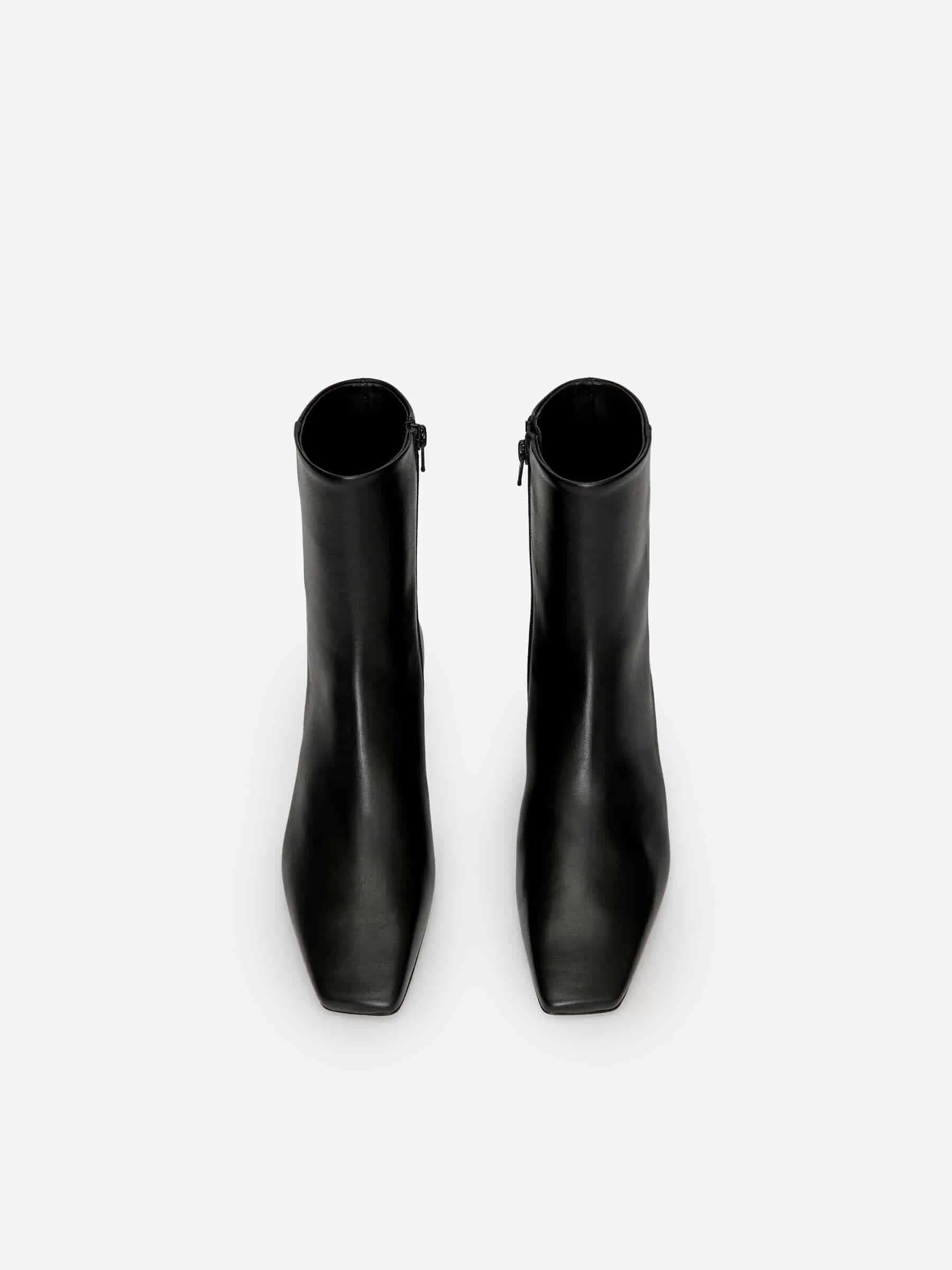 Botas fabricadas en piel sin cromo. Un estilo de corte limpio con tacón ligeramente redondeado y puntera cuadrada. Cierre con cremallera en el lateral interior. Altura tacón 5 cm.