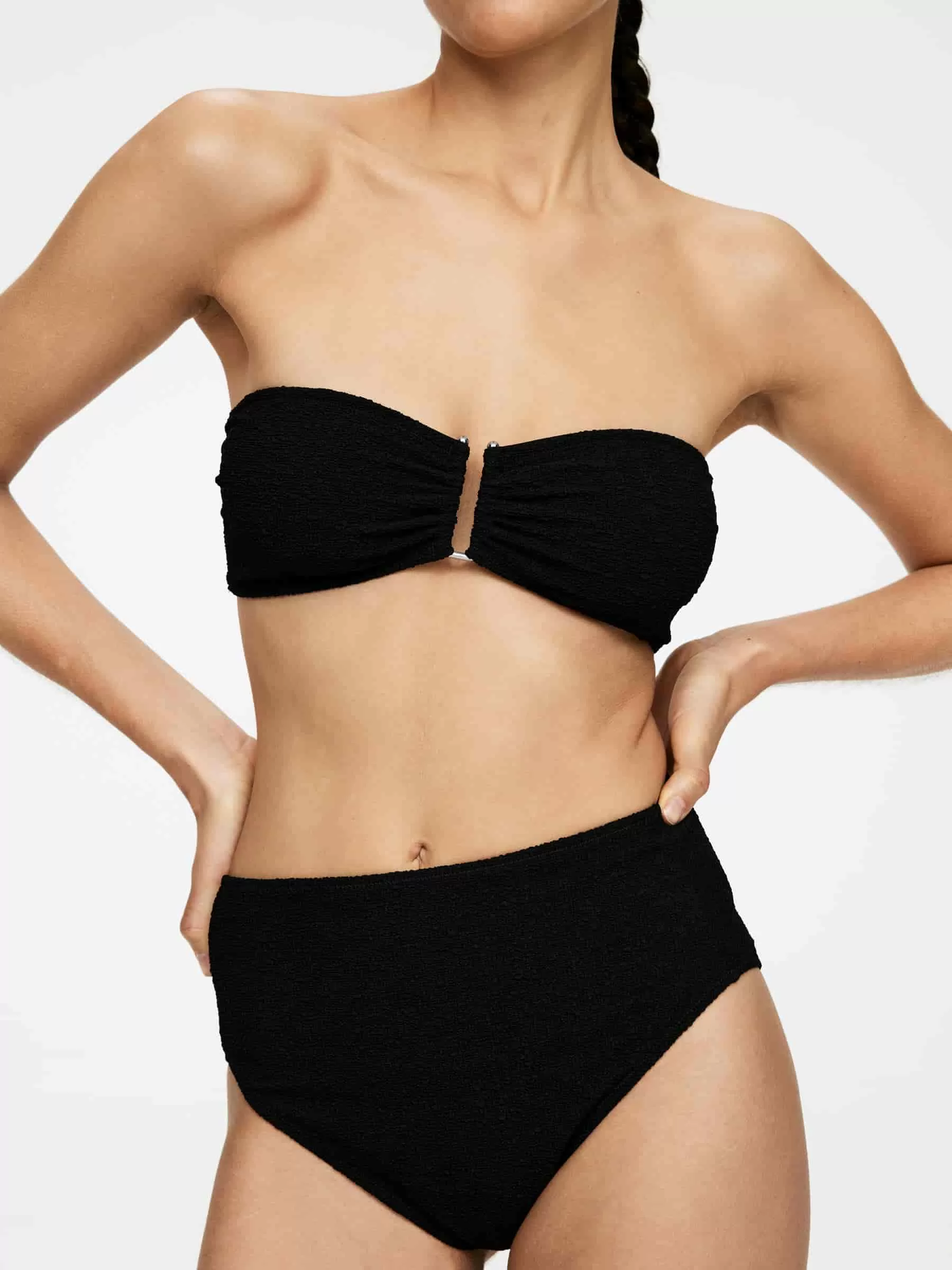 Braguita de bikini elástica y arrugada. Un diseño de cintura alta con abertura regular en las piernas. Forrado delante pero no detrás.