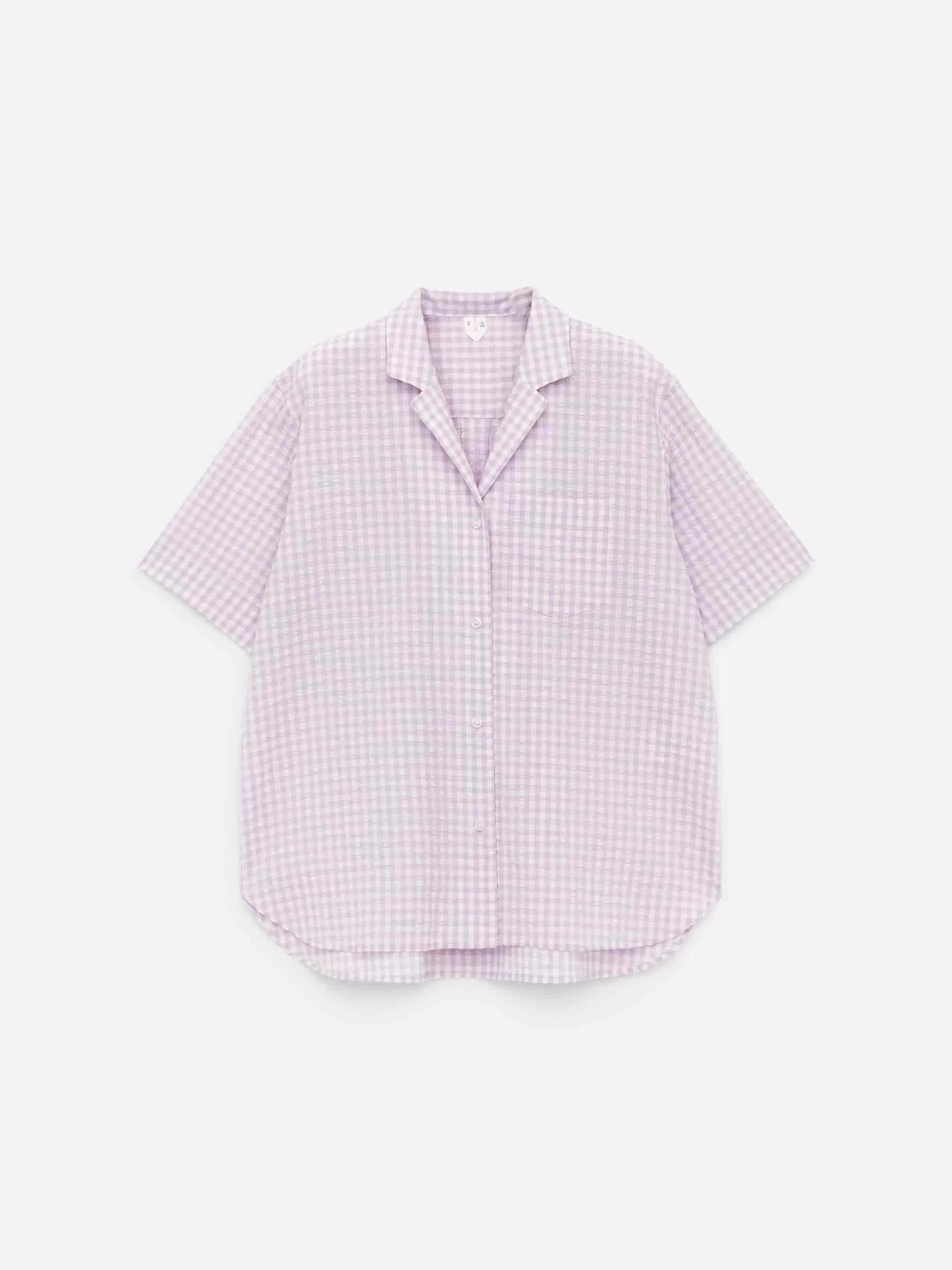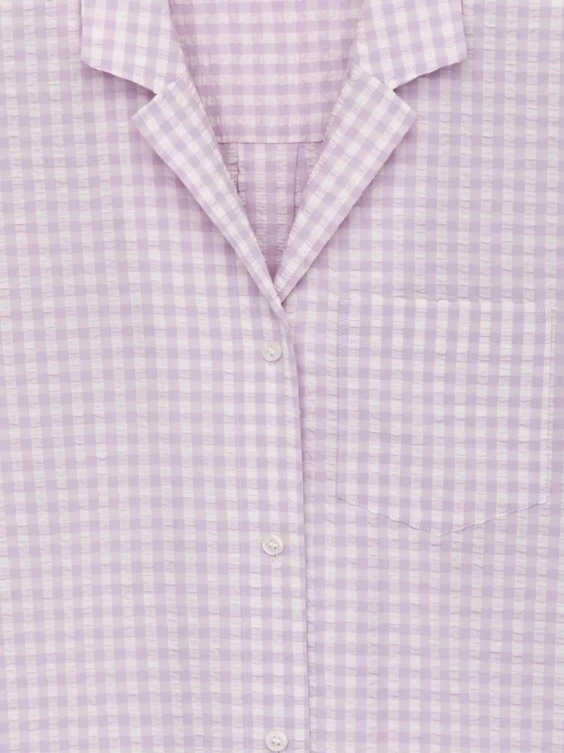 Camisa loungewear de suave sirsaca. Diseñado con mangas cortas, cuello estilo resort y un único bolsillo en el pecho.