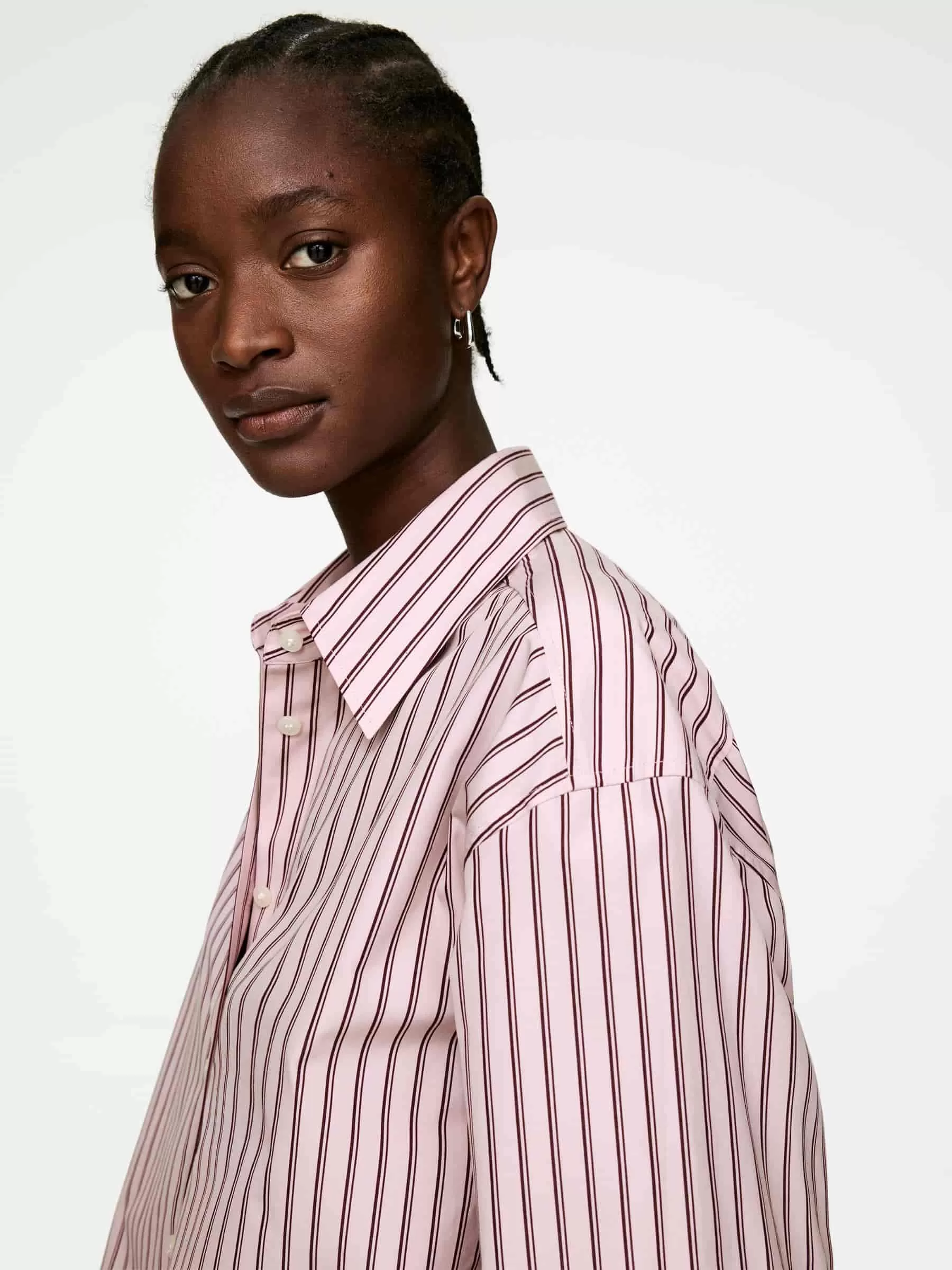 Camisa de manga larga confeccionada con popelina de algodón impecable. Un estilo abotonado con una silueta relajada pero elegante.
