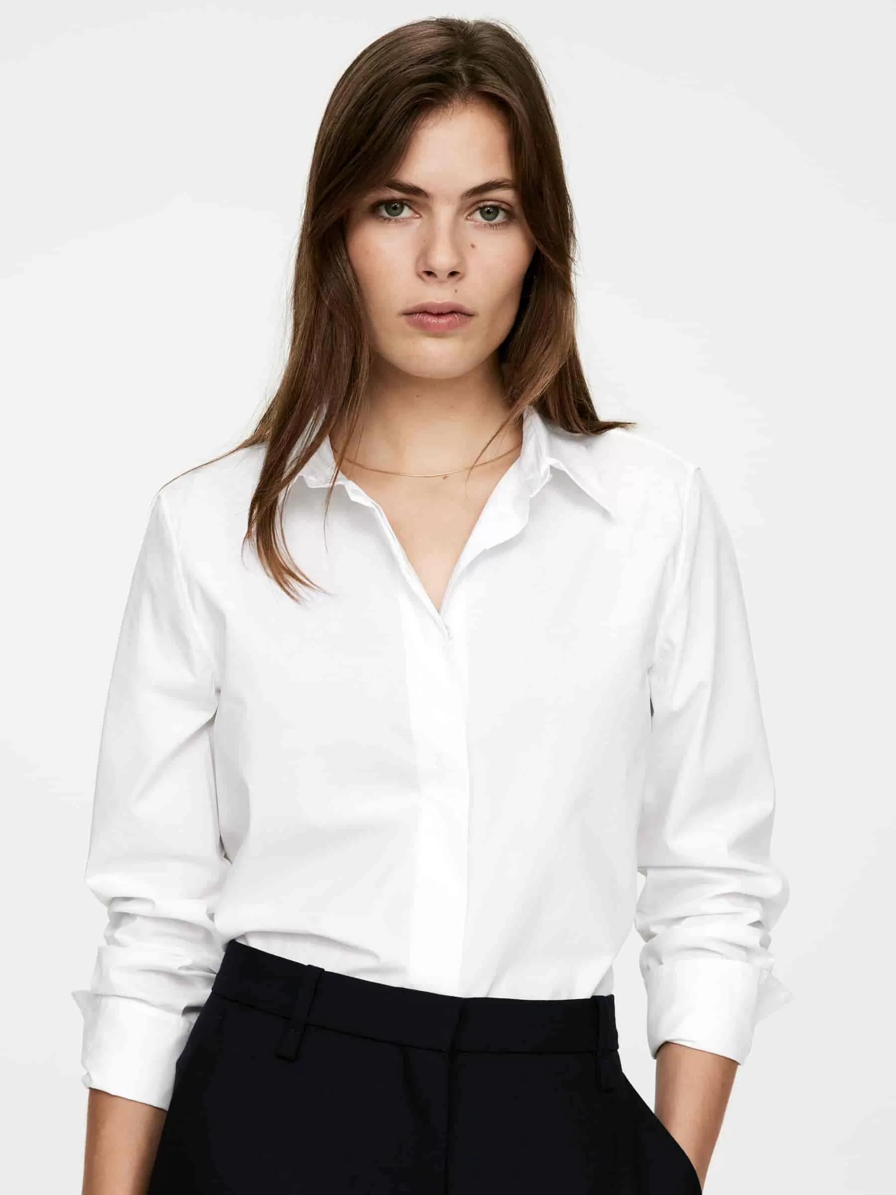 Camisa clásica de algodón con corte regular fit y tapeta delantera con botonadura oculta.