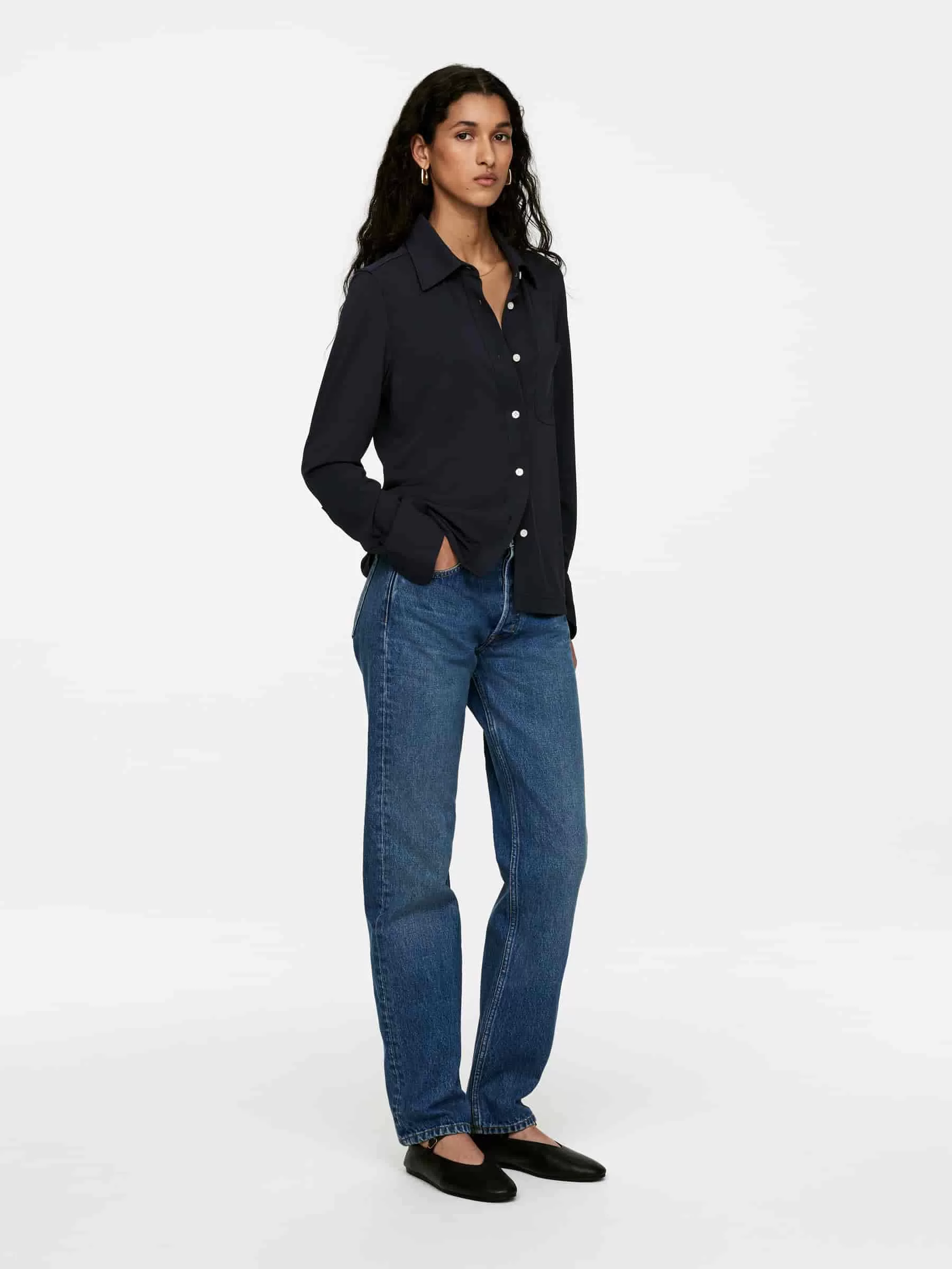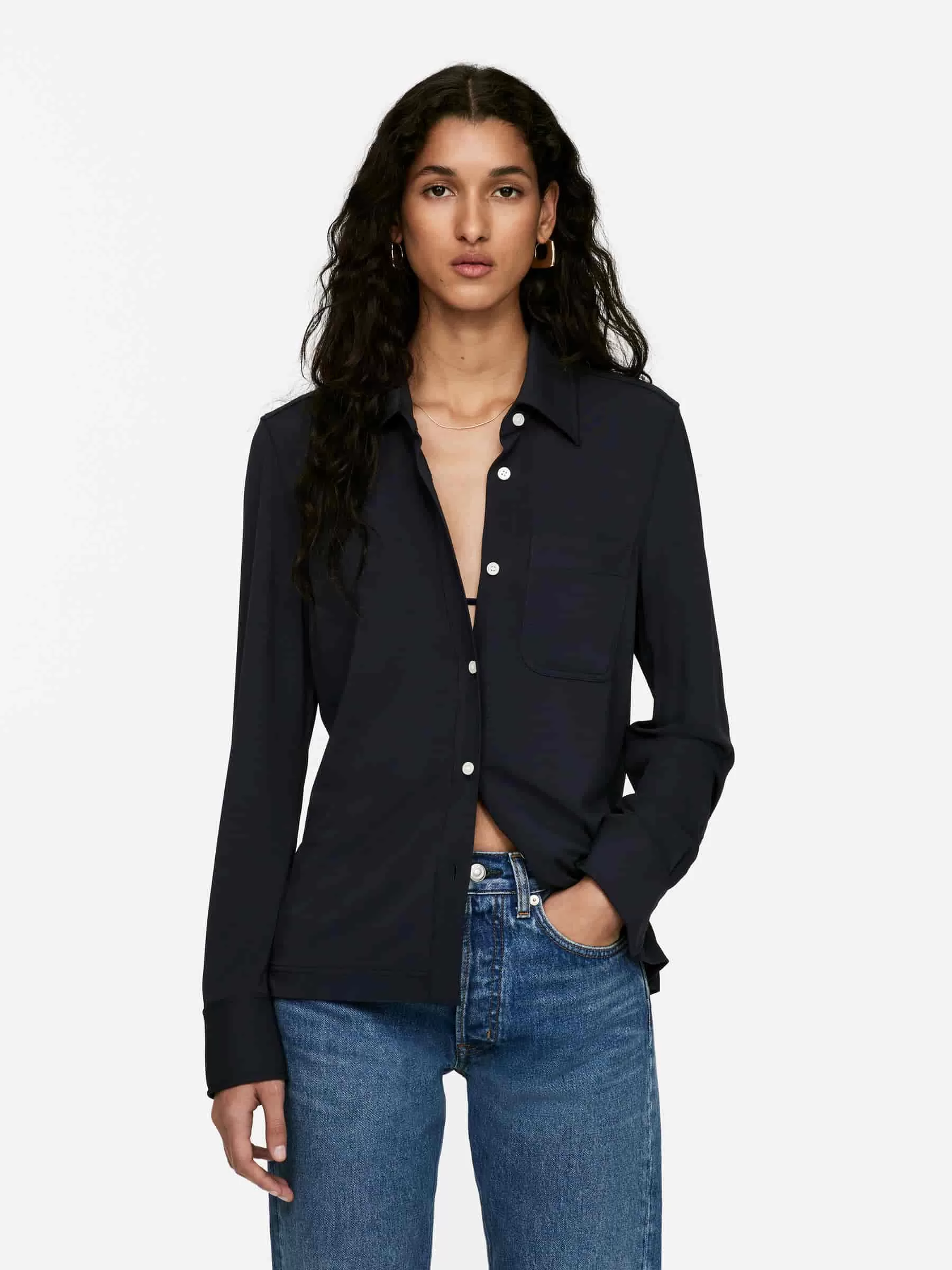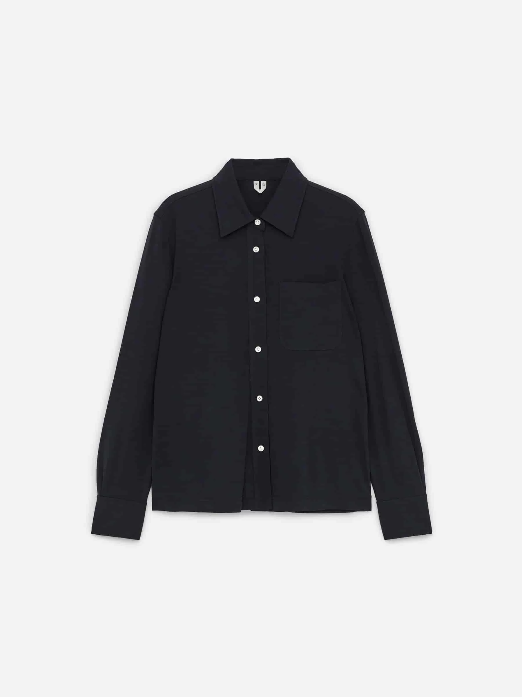 Camisa confeccionada en viscosa con un toque de elastano para mayor elasticidad. Un estilo abotonado con un único bolsillo en el pecho y puños abotonados. Ajuste regular.