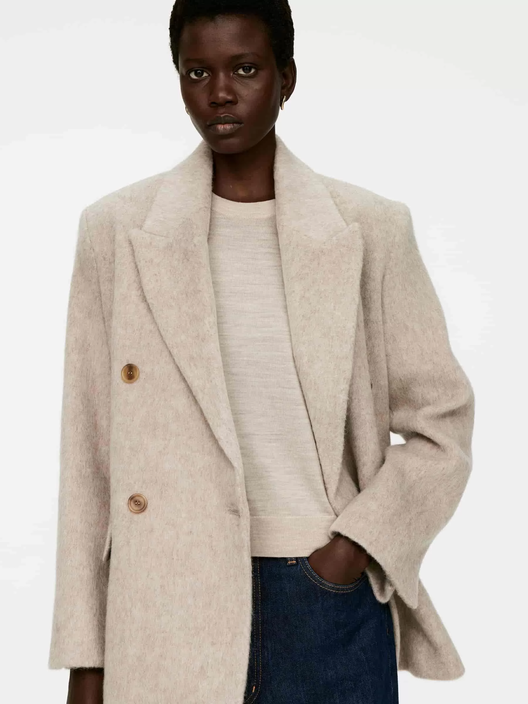 ARKE Mujer Camiseta de punto de lana merino Beige claro