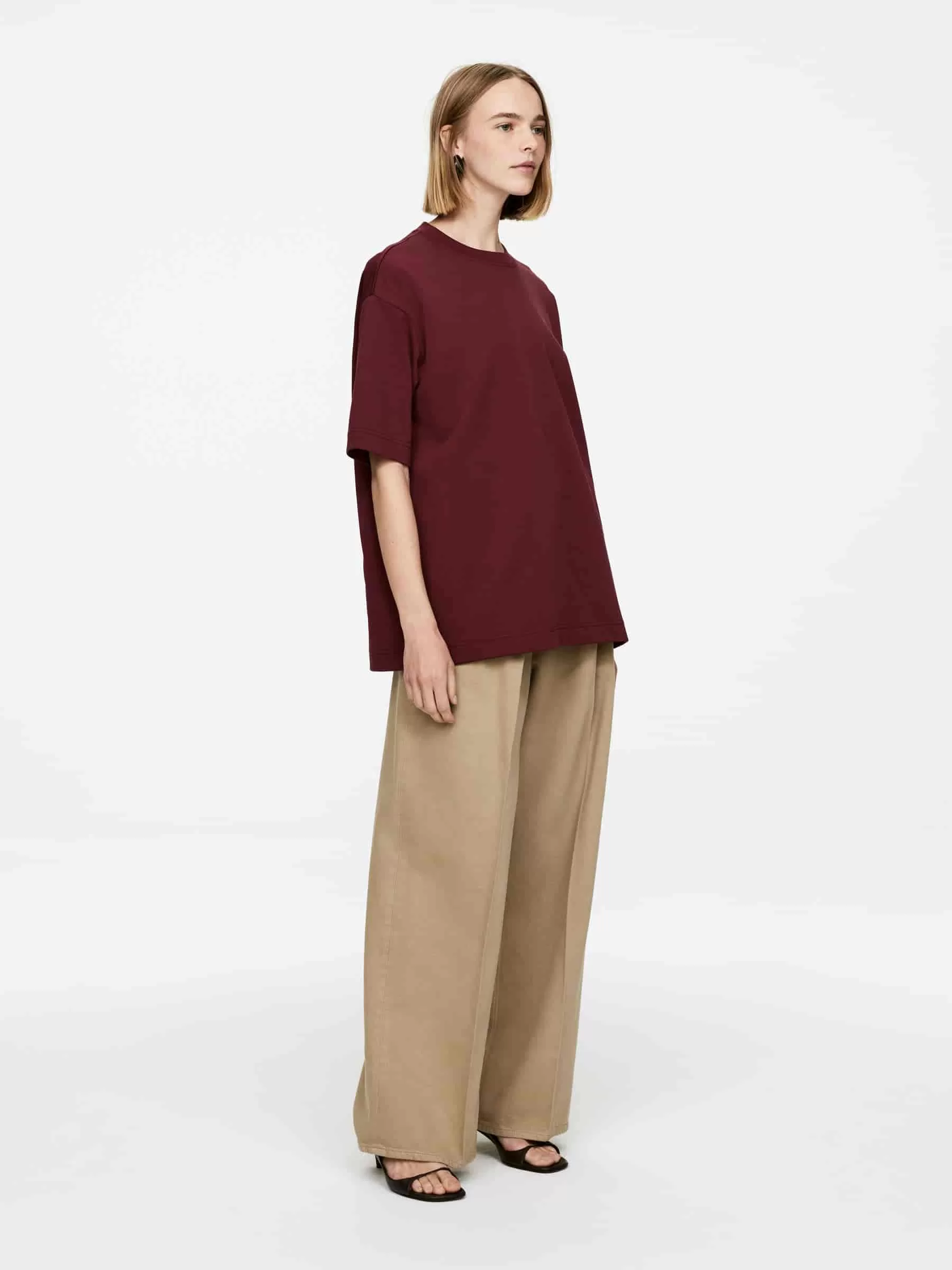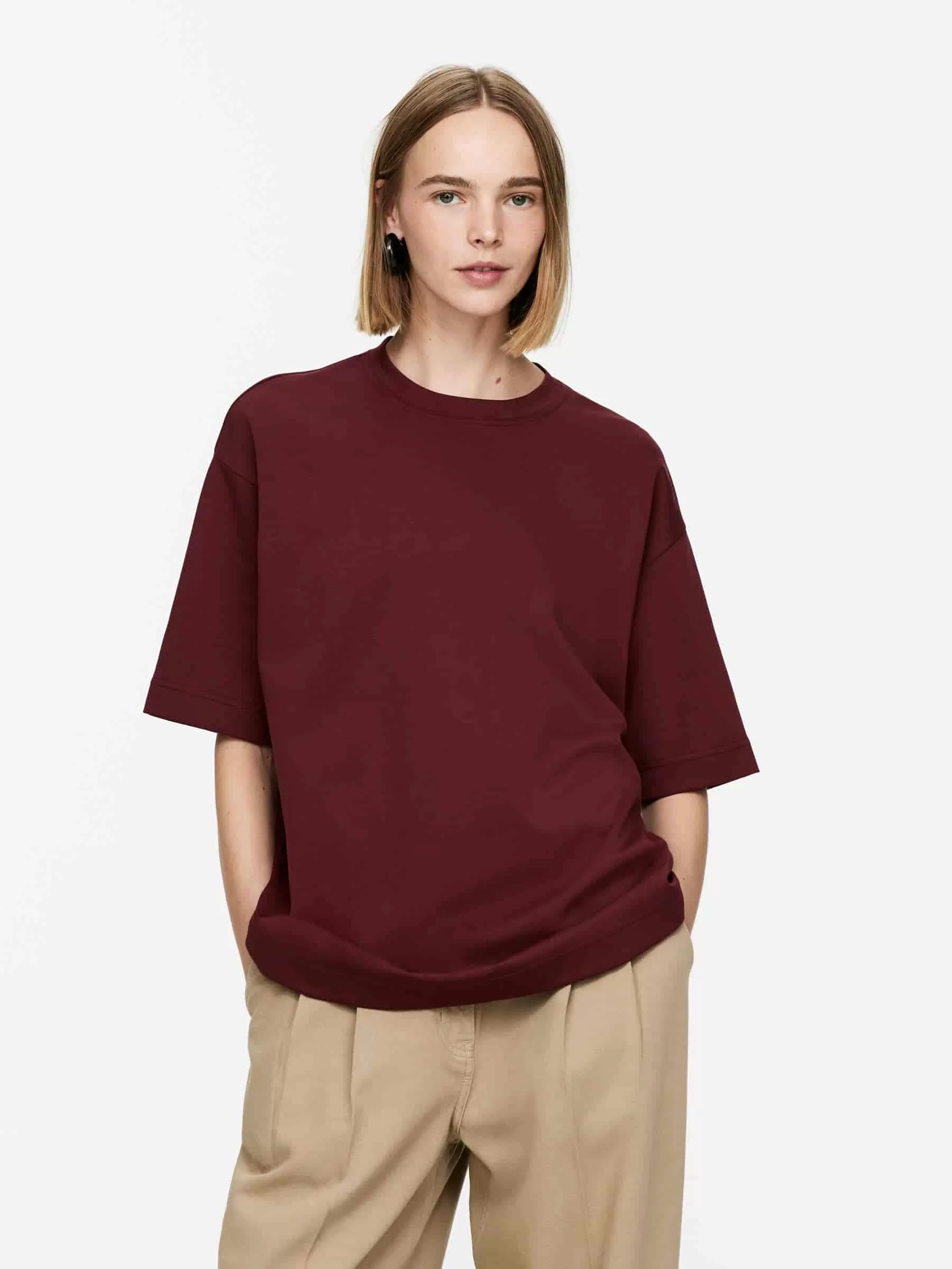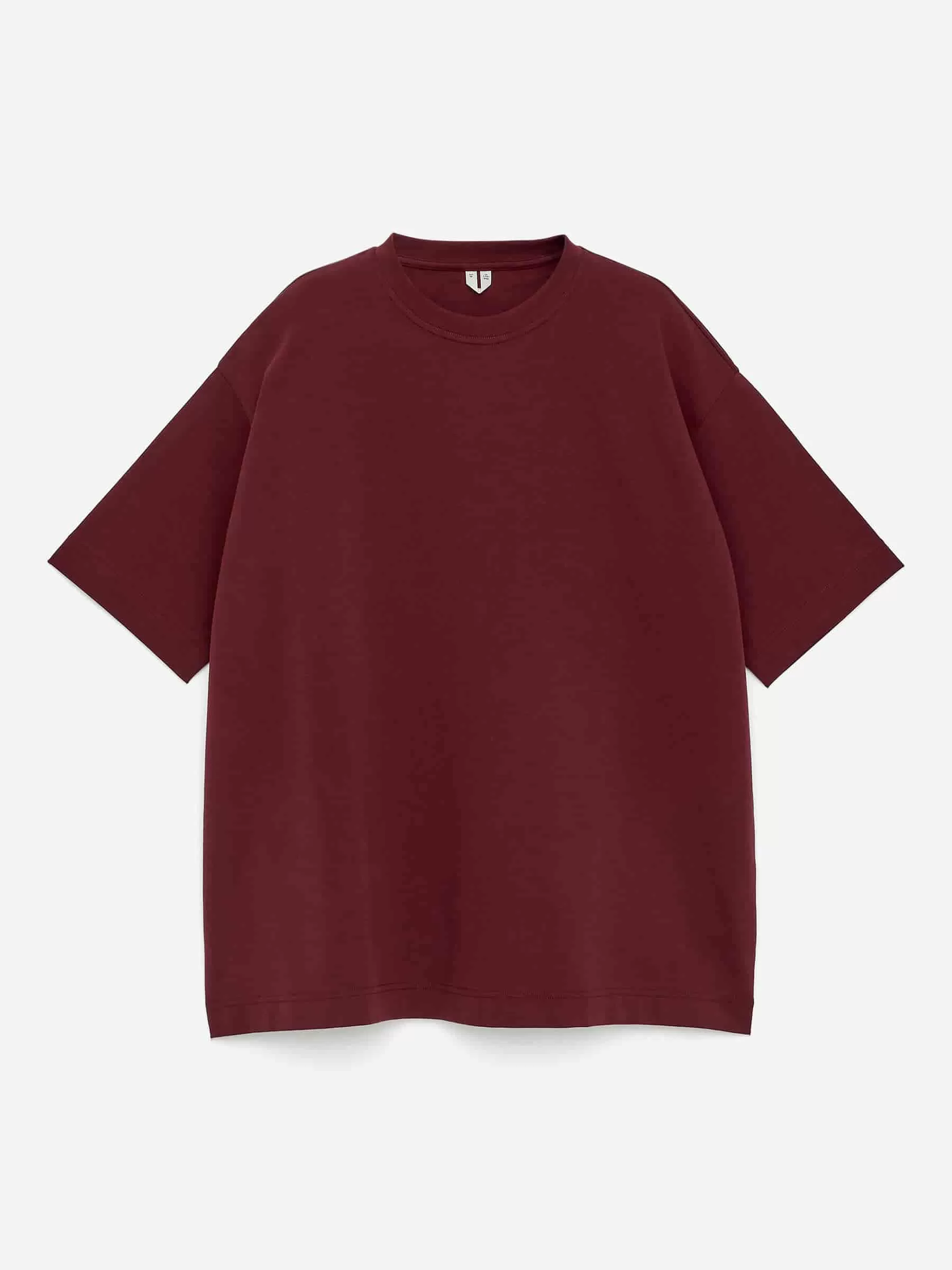 Camiseta extragrande con hombros caídos confeccionada en un tejido interlock pesado con un tacto resistente pero suave.
