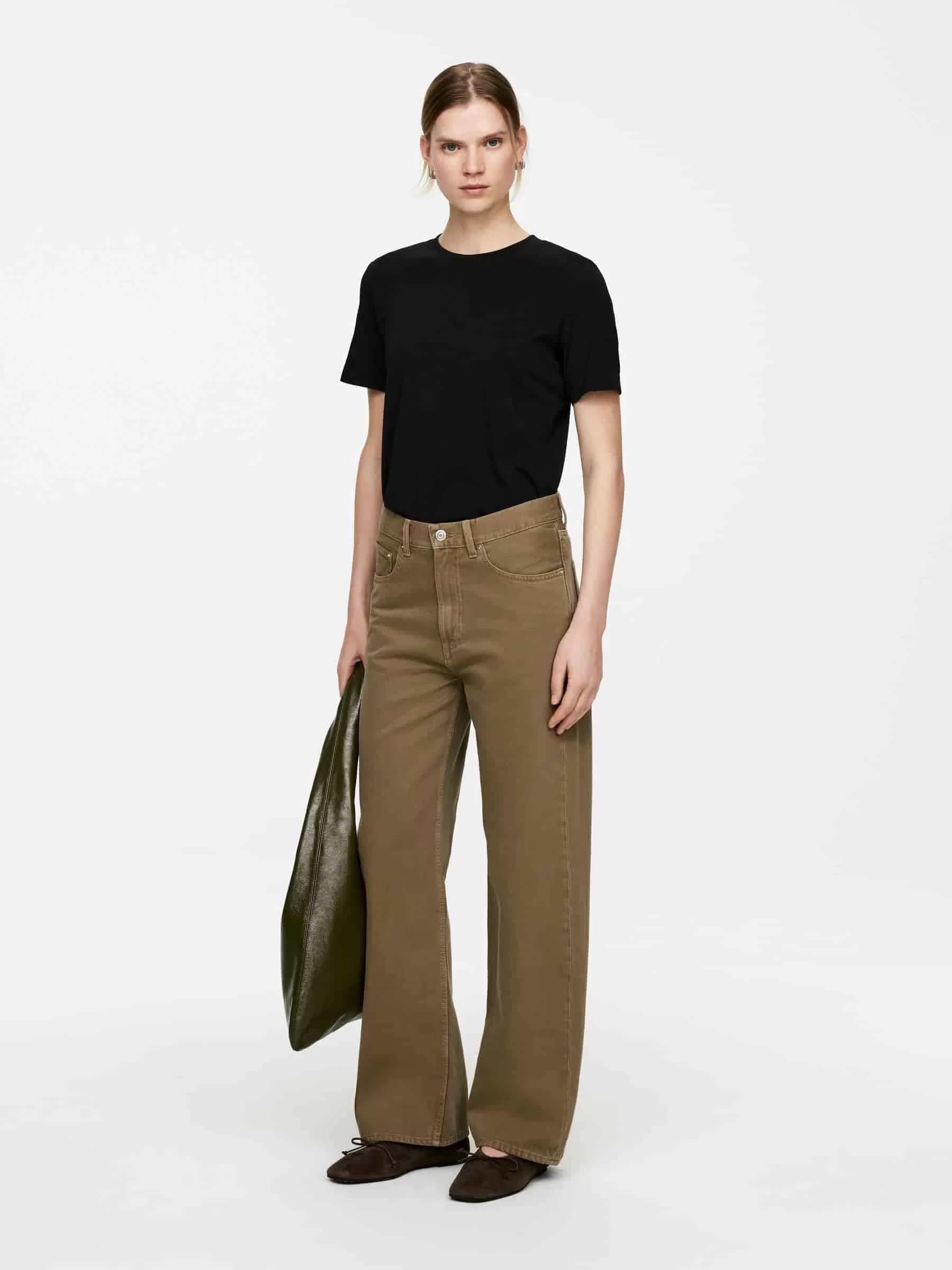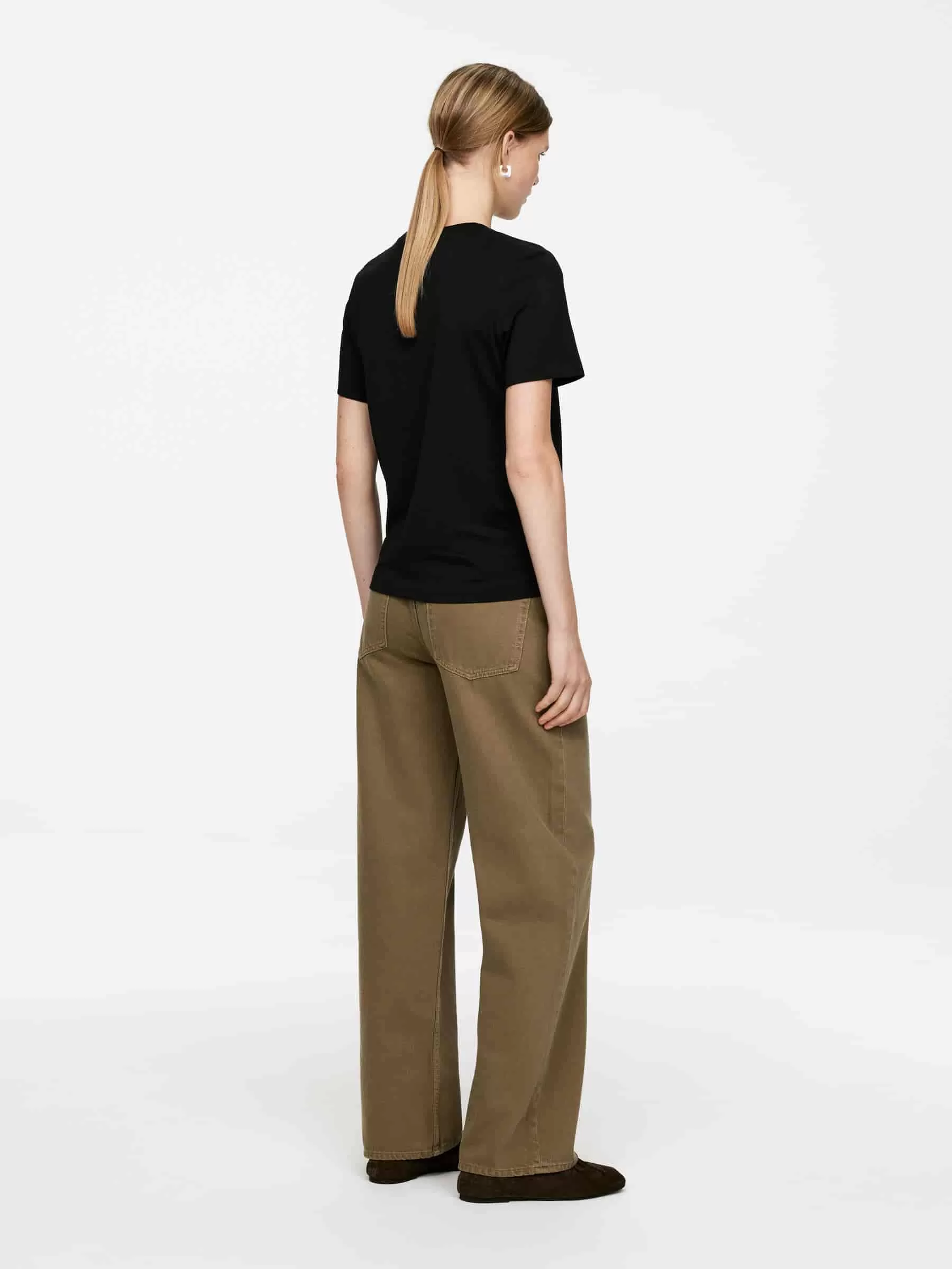 Camiseta tejida con algodón de fibra larga, suave y compacto. Diseñado con un ajuste regular de punto sencillo con ribetes acanalados alrededor del cuello redondo.
