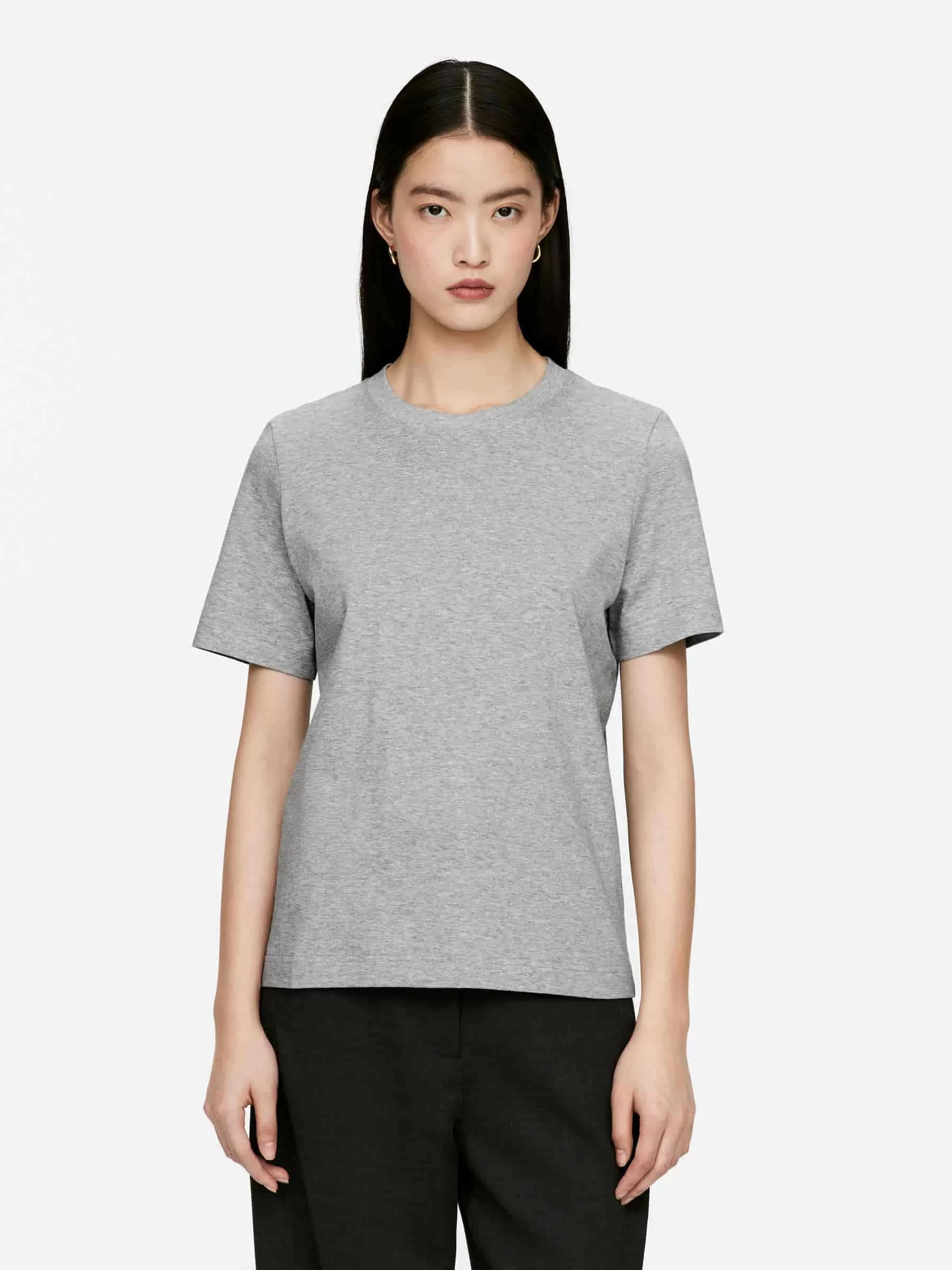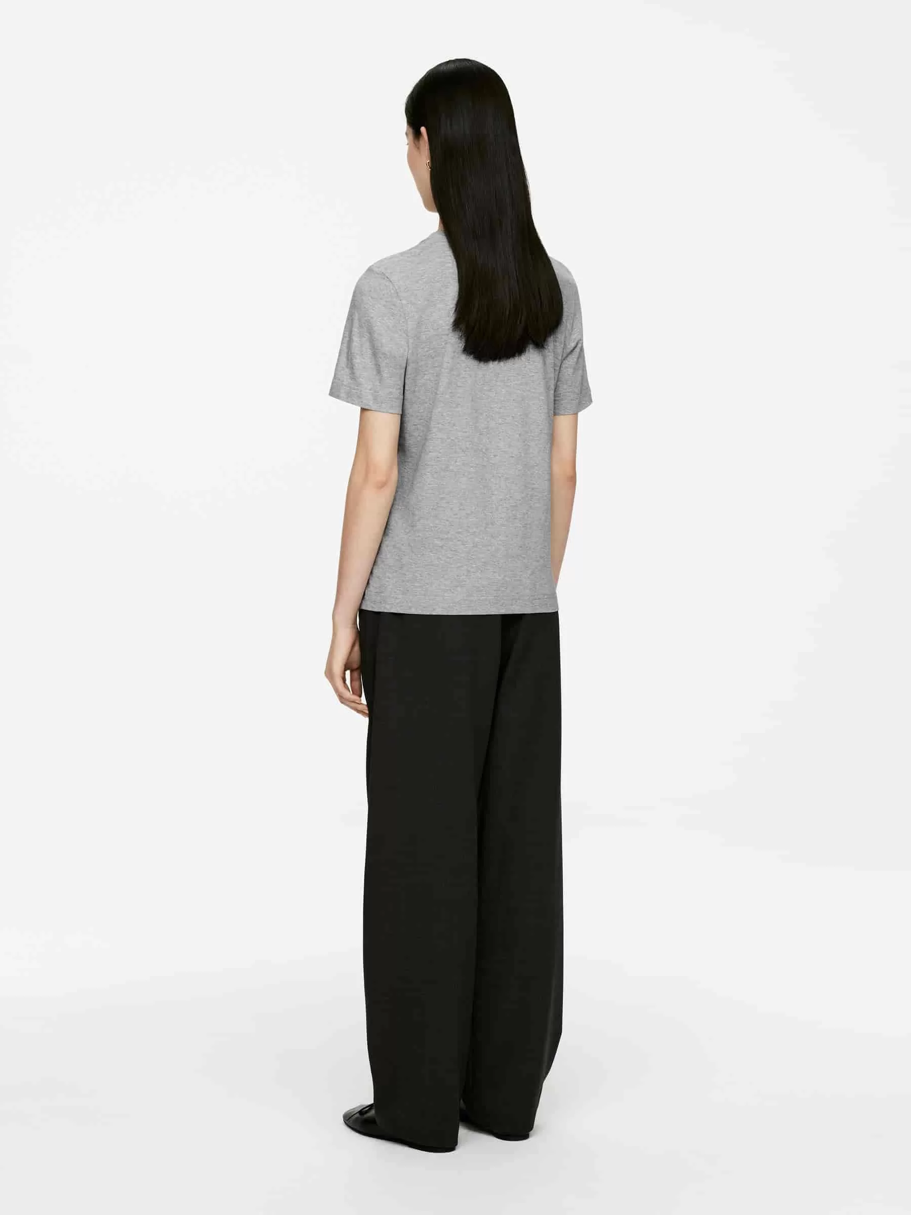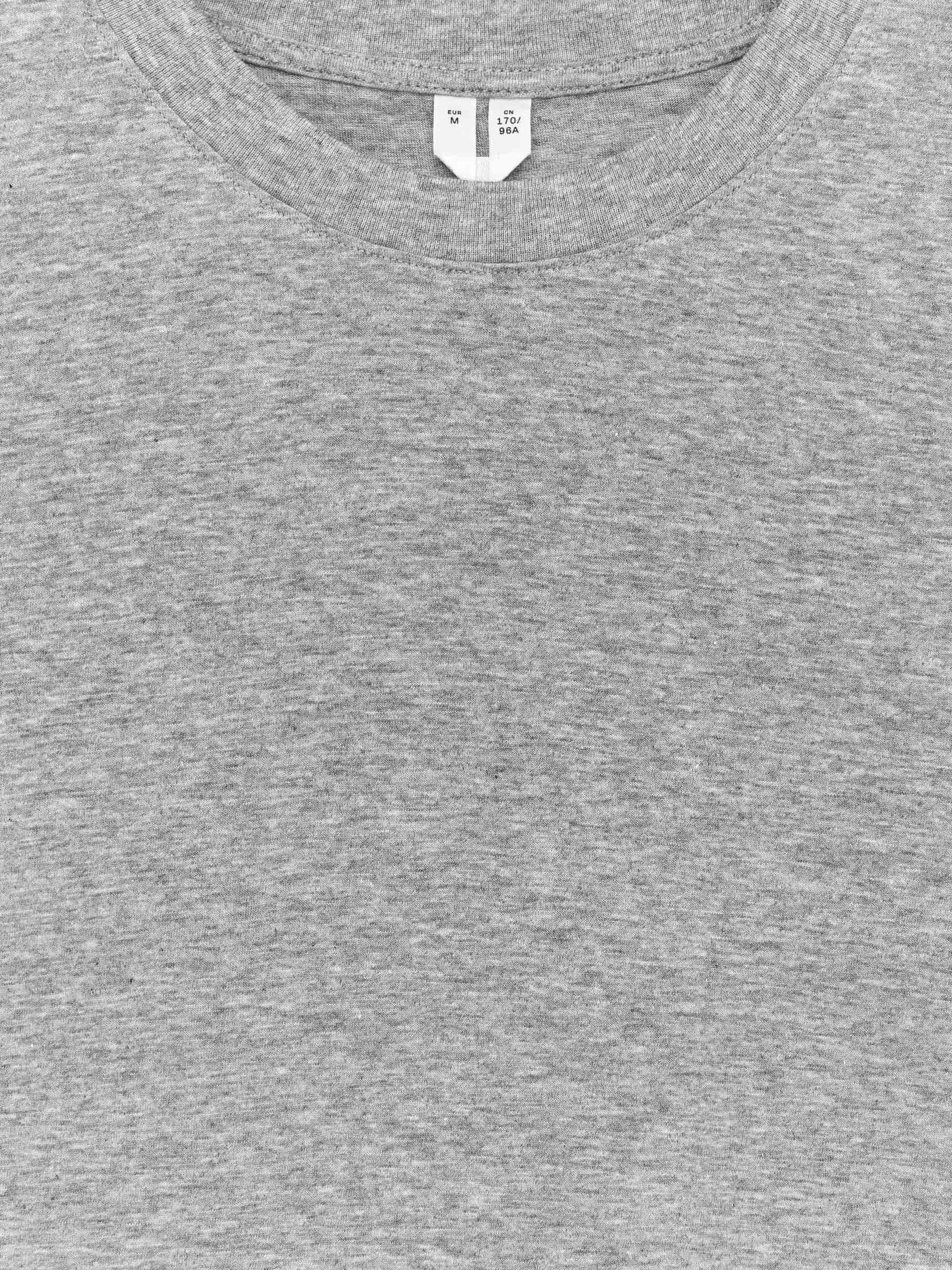 Camiseta tejida con algodón de fibra larga, suave y compacto. Diseñado con un ajuste regular de punto sencillo con ribetes acanalados alrededor del cuello redondo.