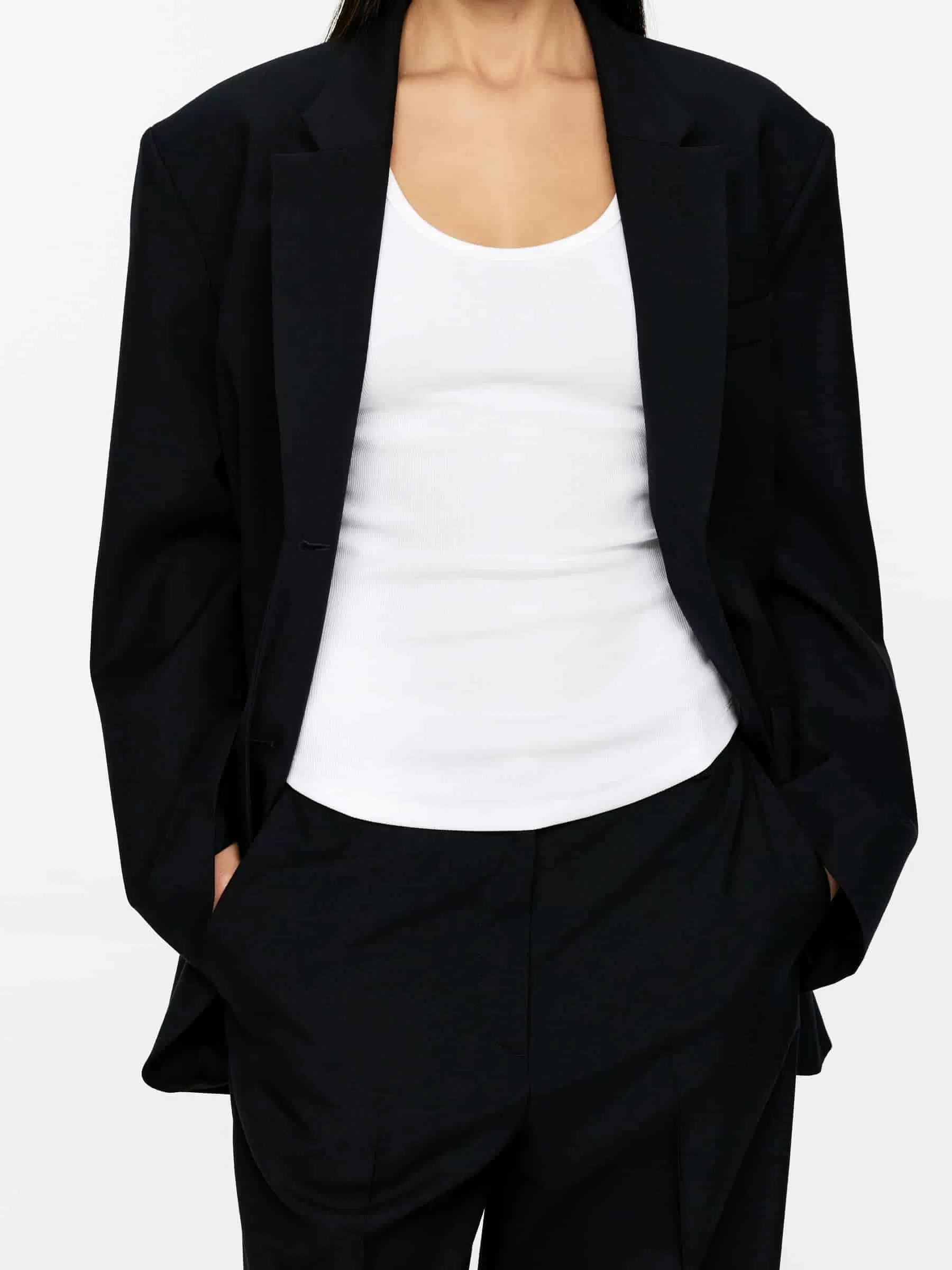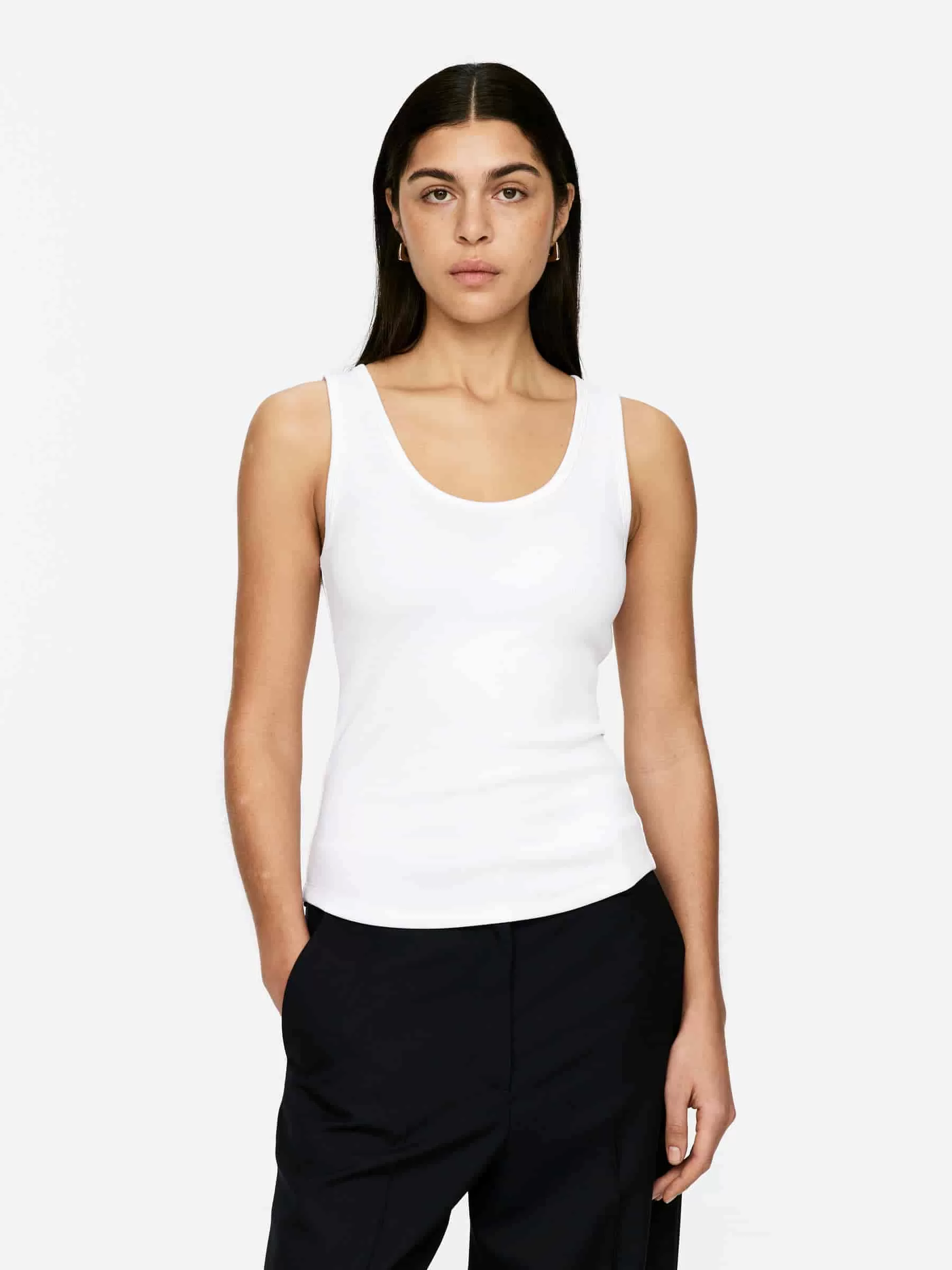 Camiseta sin mangas de punto de canalé con cuello redondo confeccionada en algodón con un toque de elastano para mayor elasticidad. Corte ajustado.