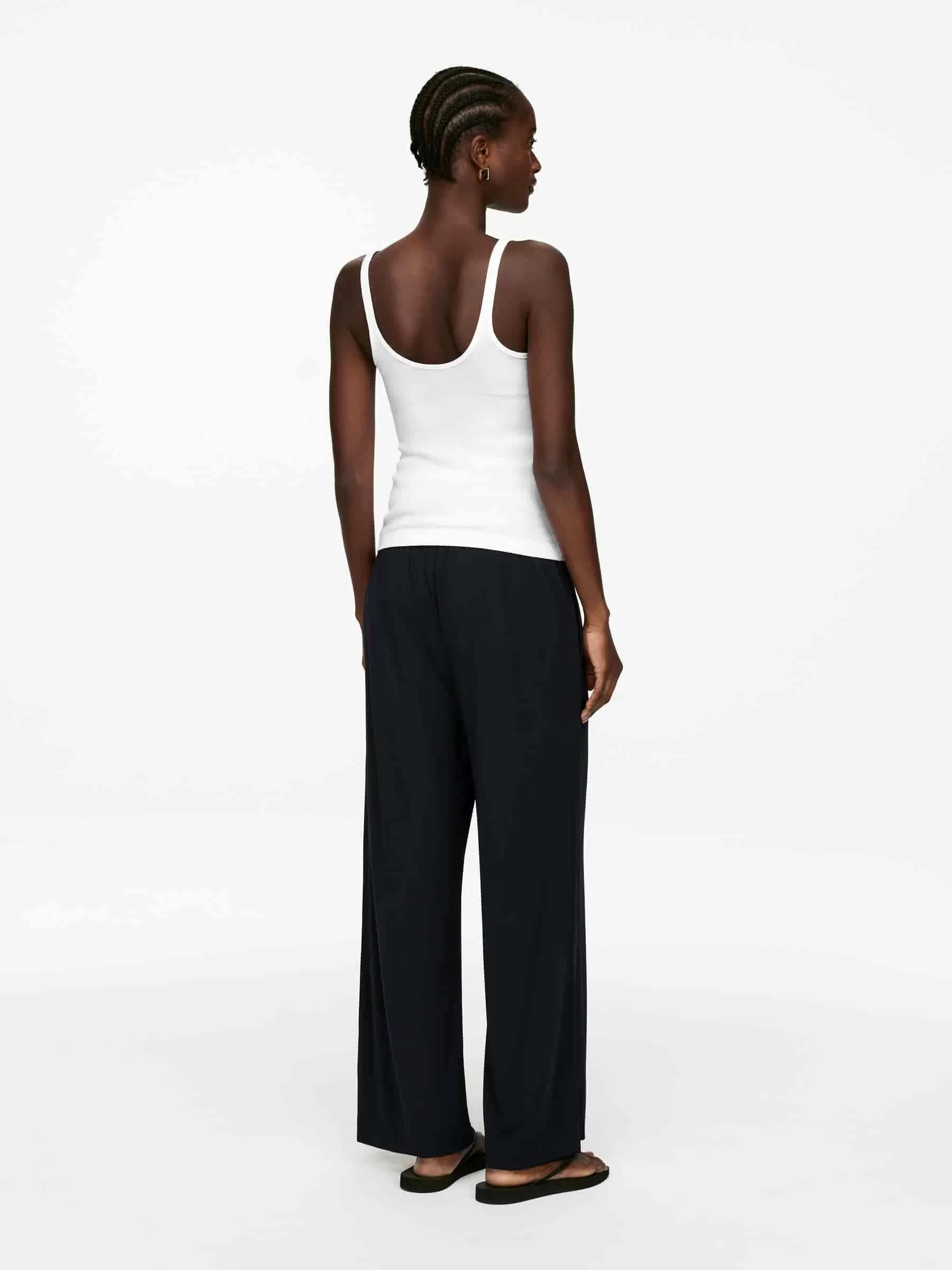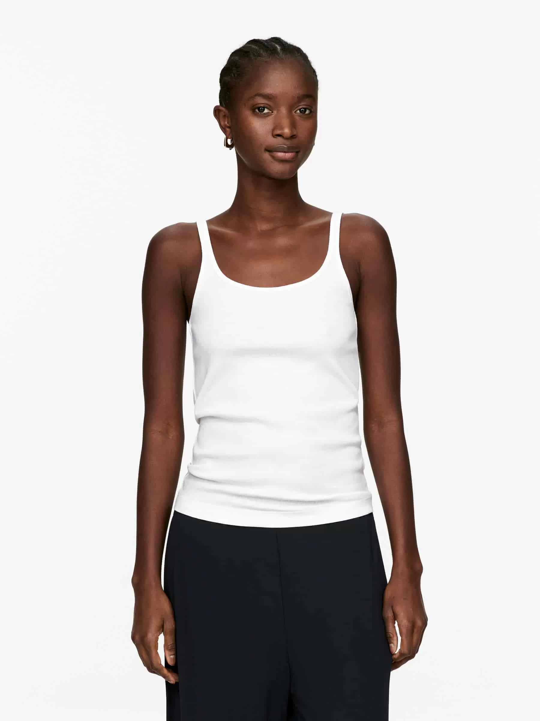 Camiseta de tirantes confeccionada en punto de algodón acanalado. Diseñado con un escote profundo y tirantes finos.