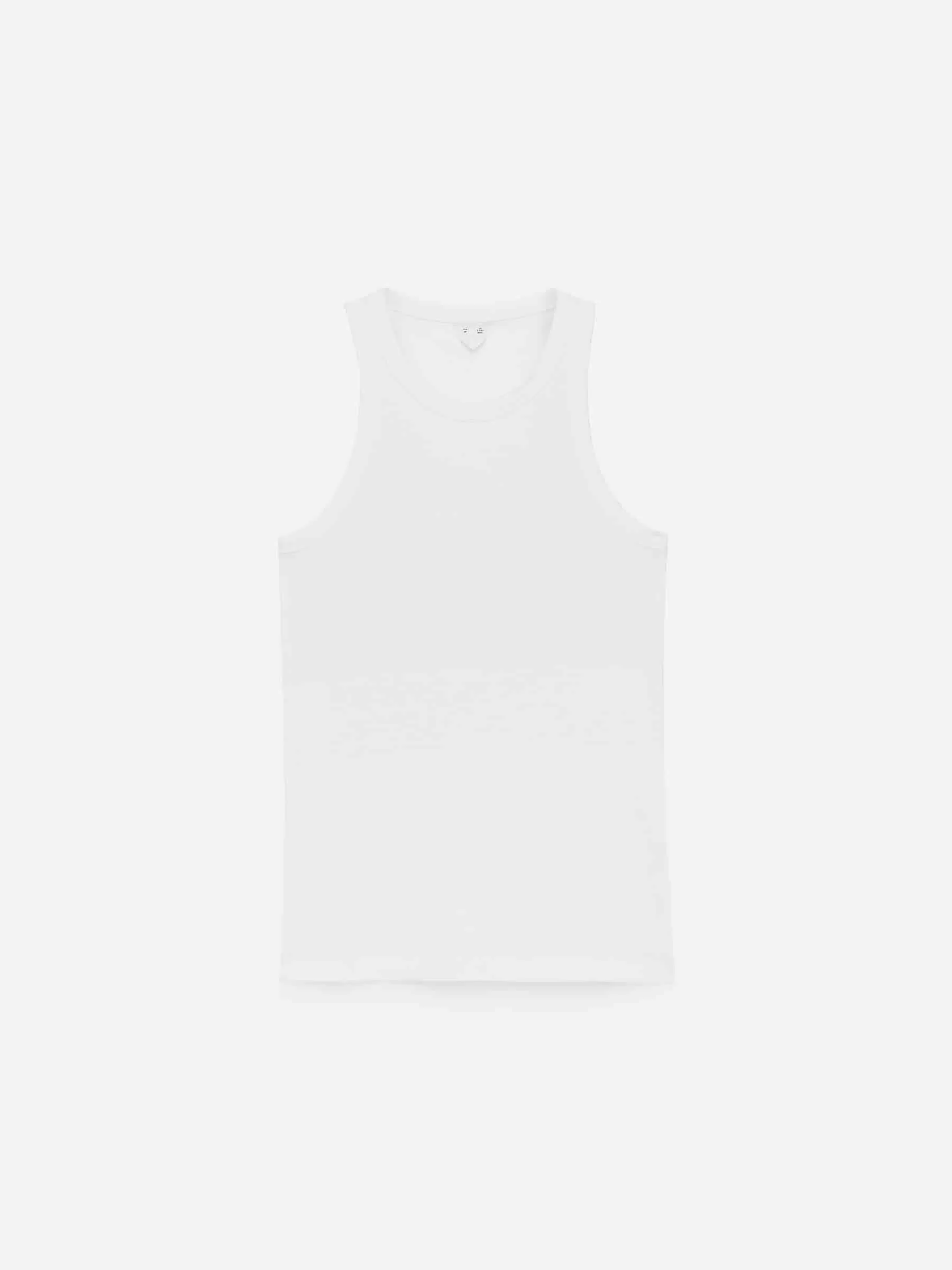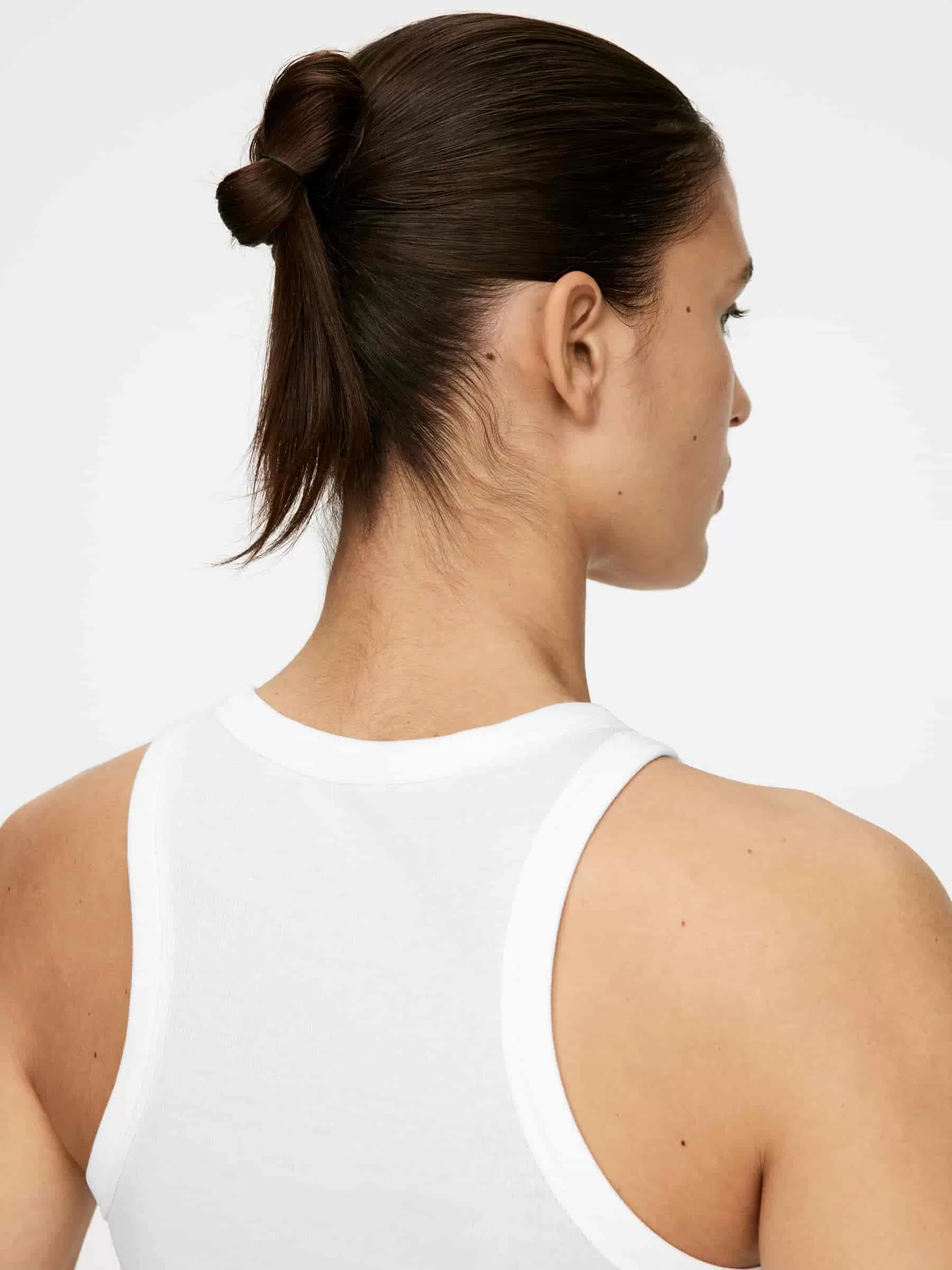 Camiseta sin mangas de corte ajustado confeccionada con un suave tejido de punto acanalado elaborado con algodón con un toque de elastano. Diseñado con un favorecedor escote y espalda en forma de nadador.