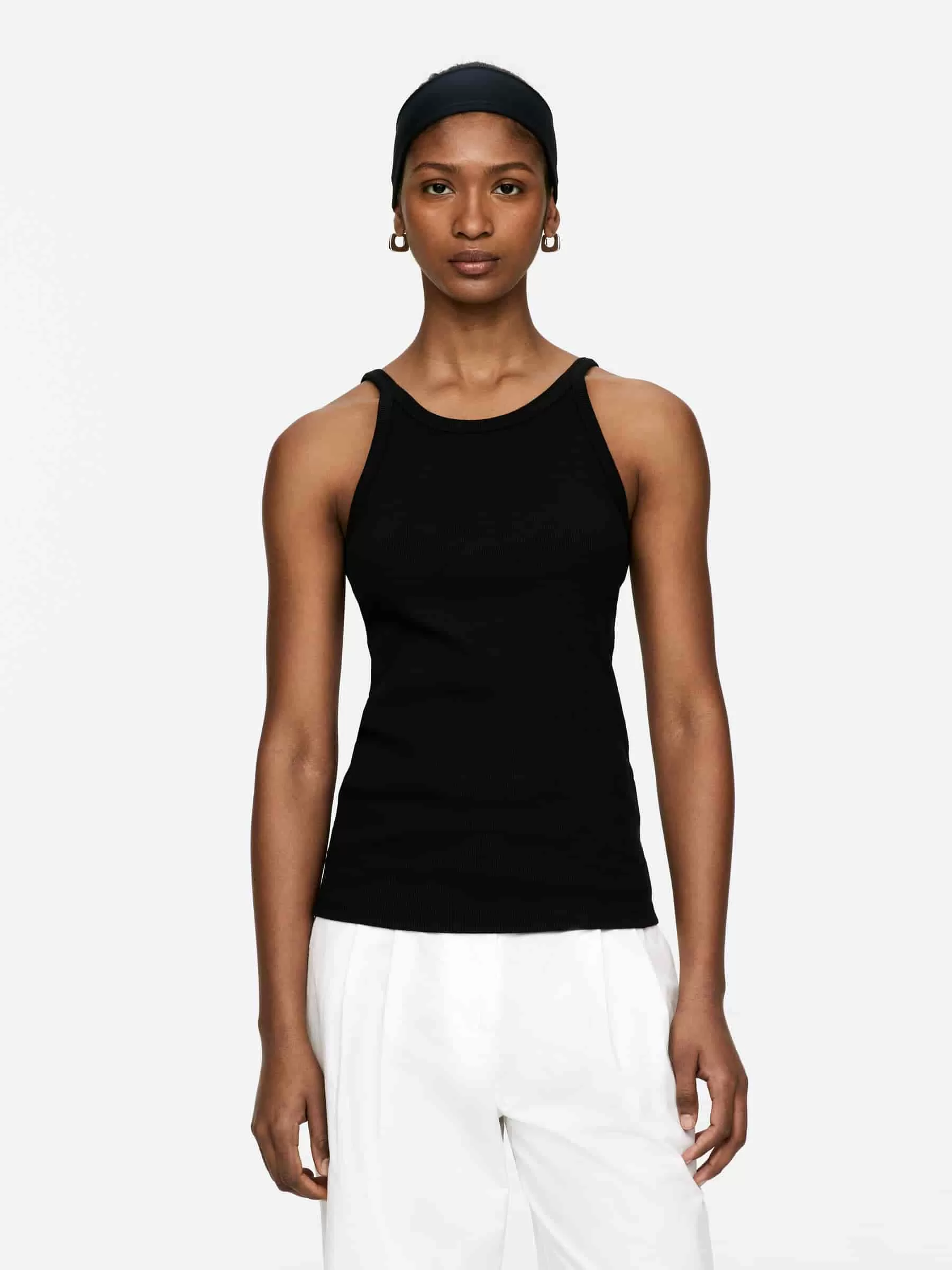 ARKE Mujer Camiseta sin mangas de canalé Negro