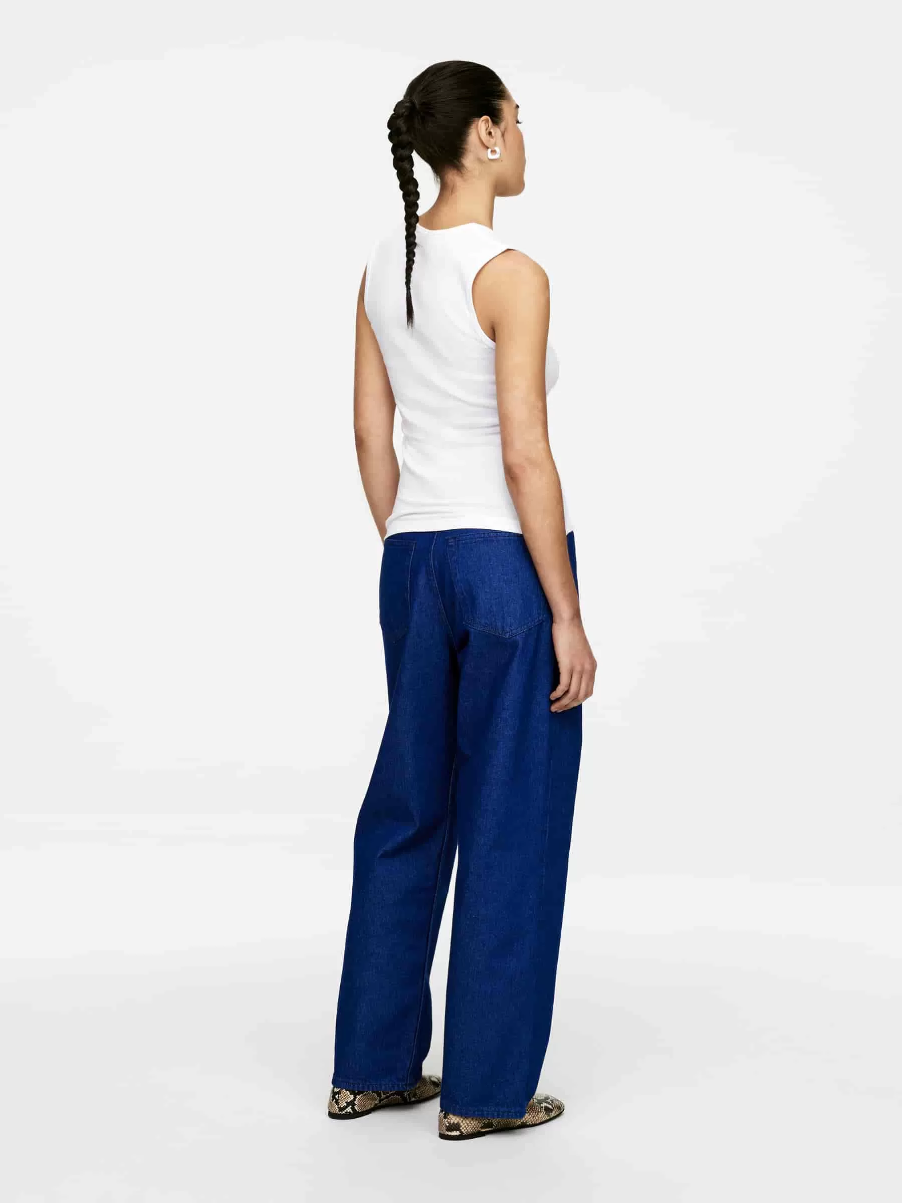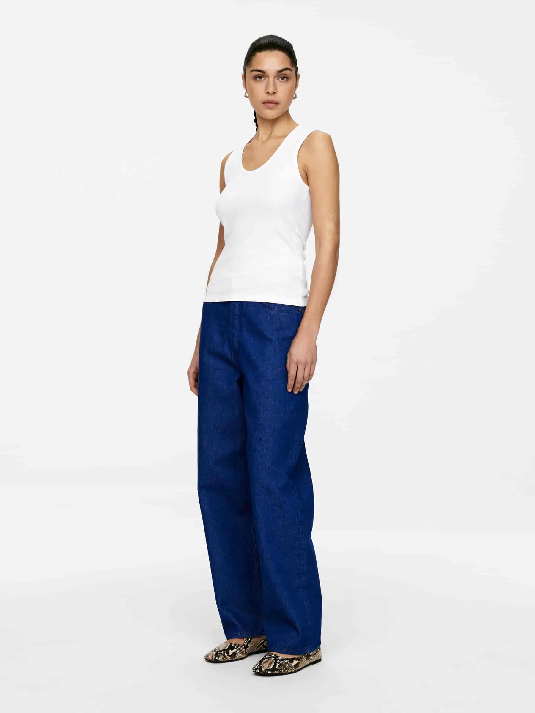Camiseta sin mangas confeccionada en punto de algodón acanalado. Un modelo ajustado con cuello redondo.