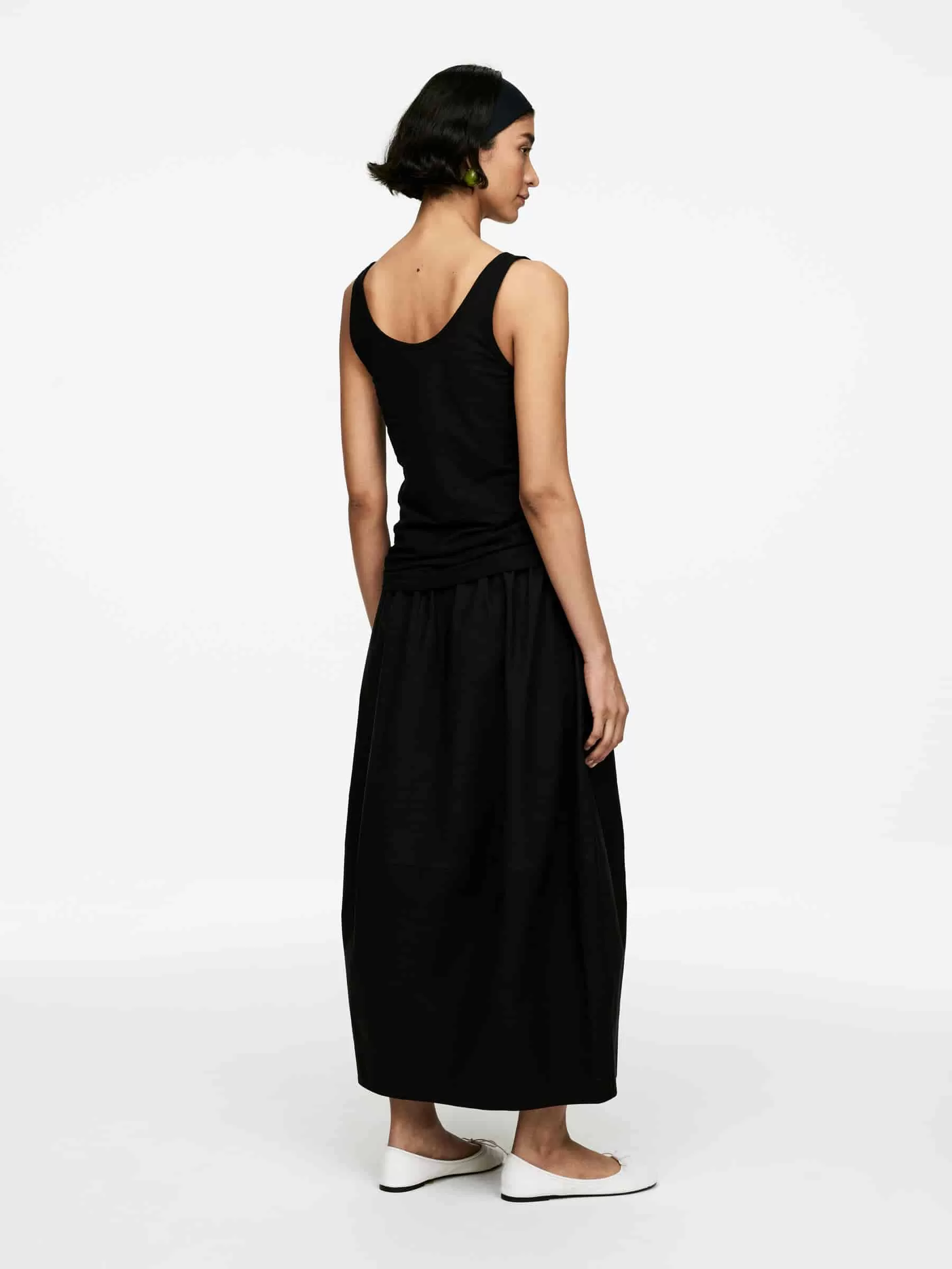 Camiseta sin mangas de algodón confeccionada en crepé fluido con un tacto fresco. Diseñado con cuello en U en la parte delantera y trasera. Ajuste regular.