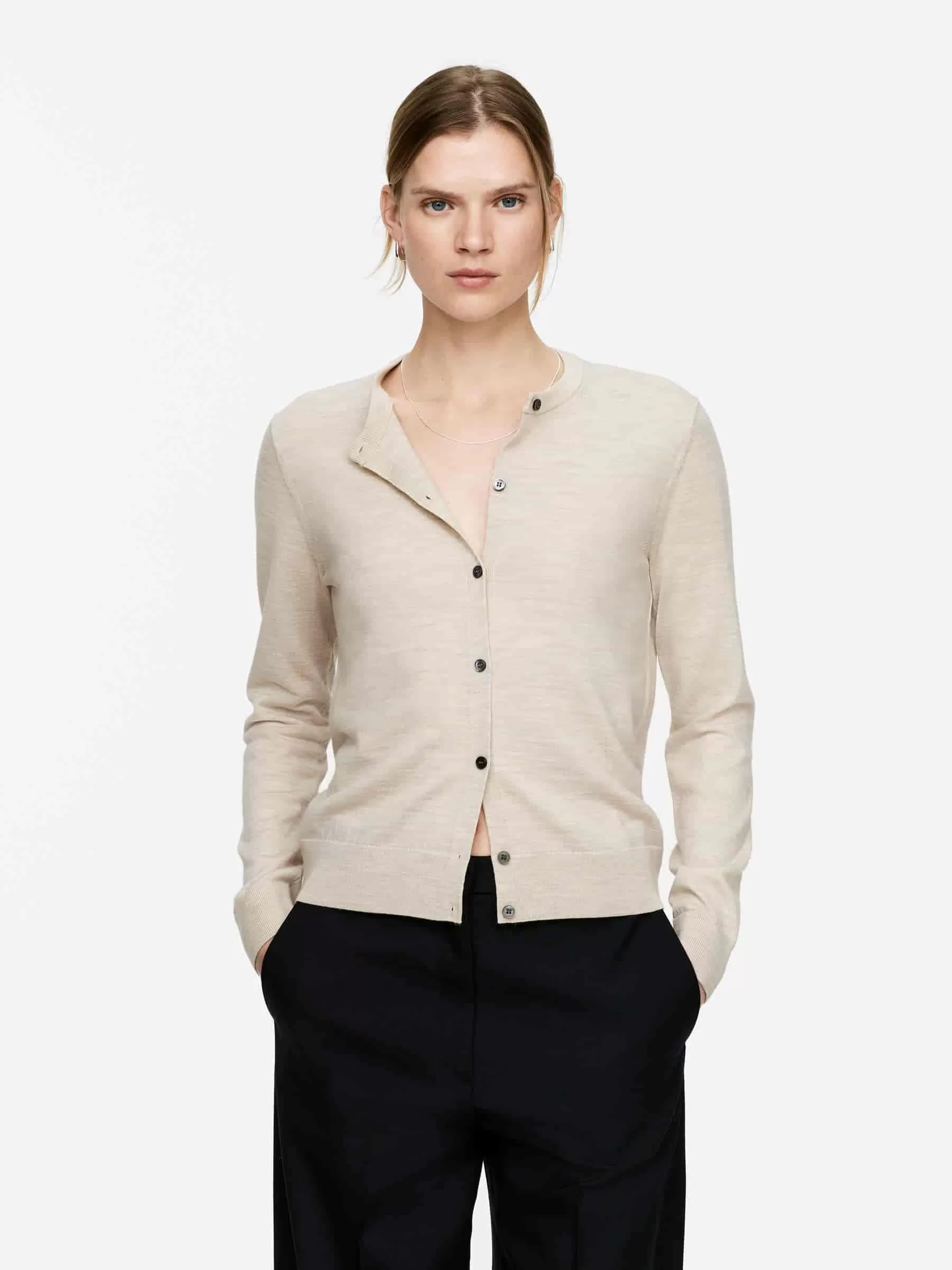 Cárdigan tejido con pura lana merino. Diseñado con ribetes acanalados y botones de nácar. Ajuste regular. El cárdigan contiene 100% lana RWS (TE-00047206). Los productos certificados según el Estándar de Lana Responsable (RWS) contienen fibra de lana procedente de granjas certificadas de forma independiente según los requisitos de bienestar animal y gestión de la tierra.