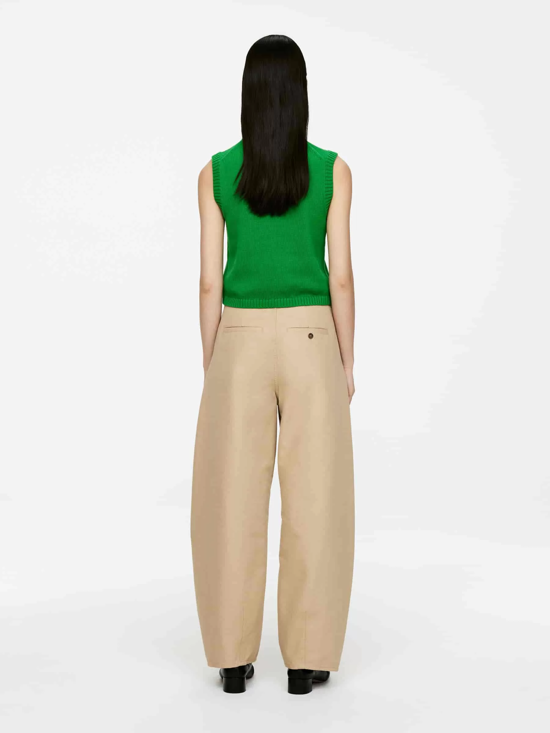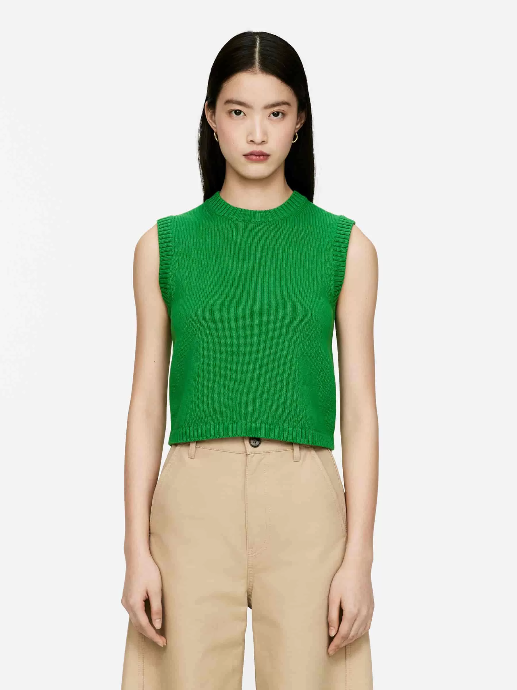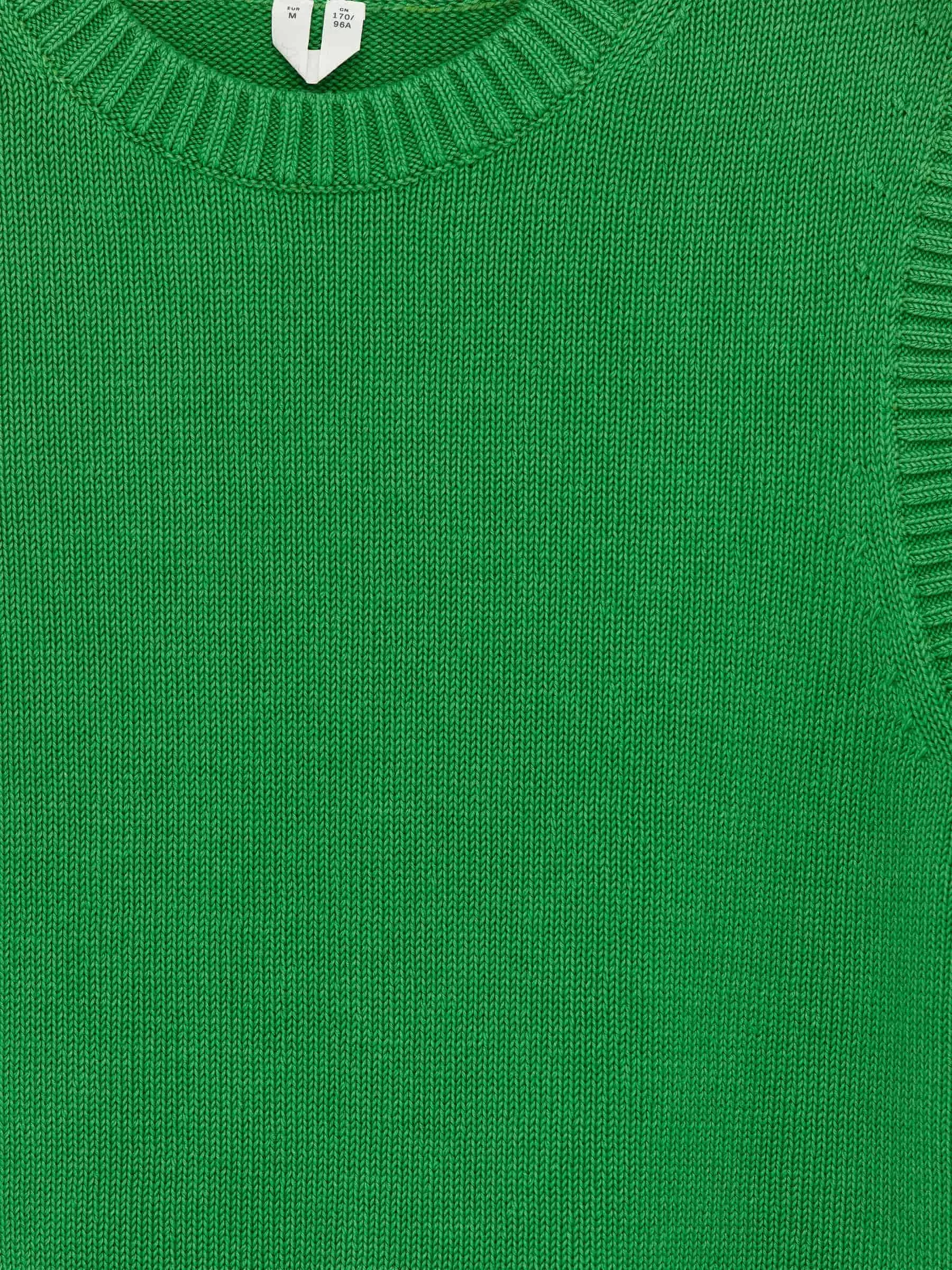 Chaleco de punto confeccionado en algodón, con corte encogido y ribetes de canalé.