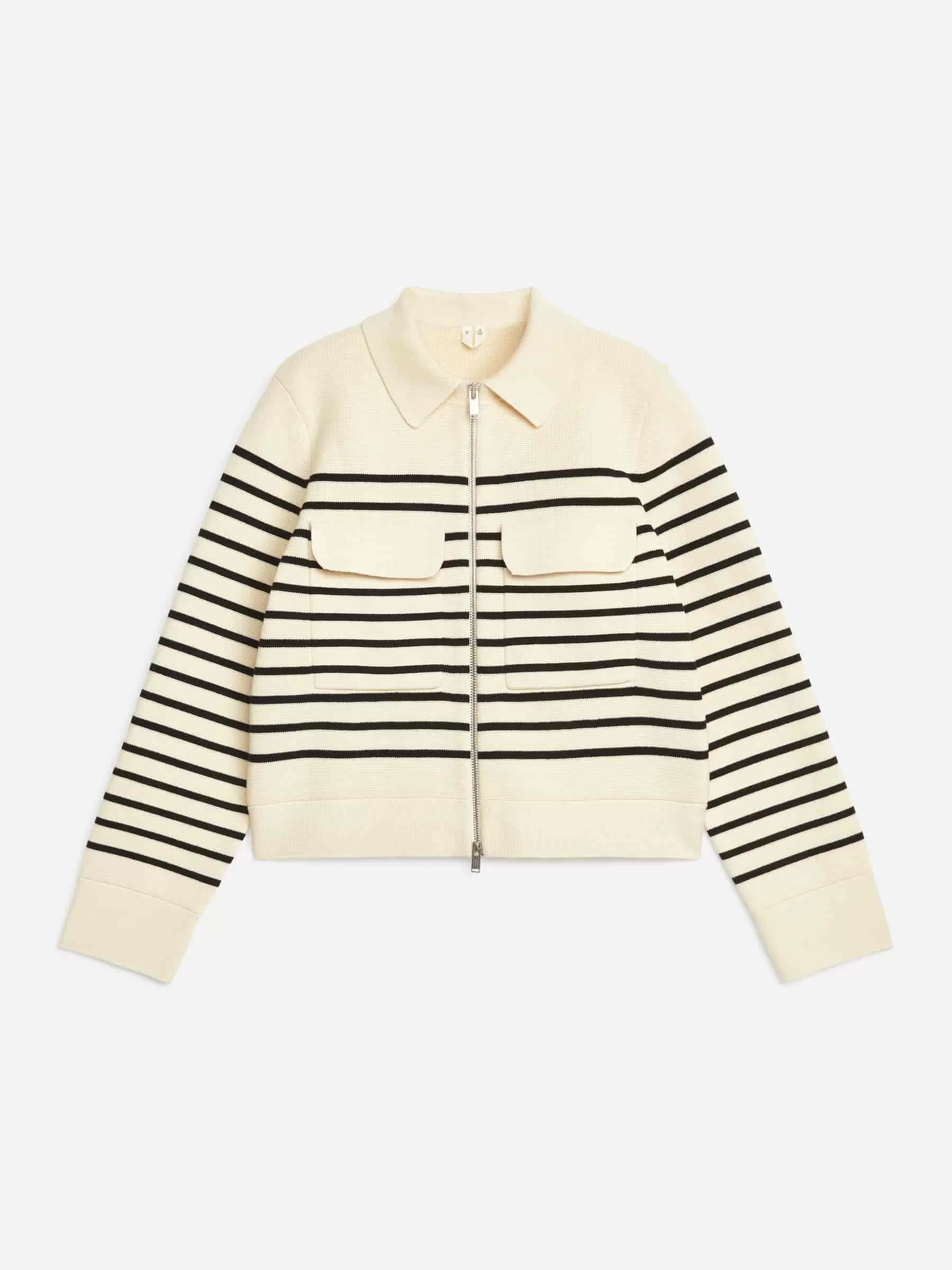ARKE Mujer Chaqueta de punto de algodón Blanco roto/azul marino
