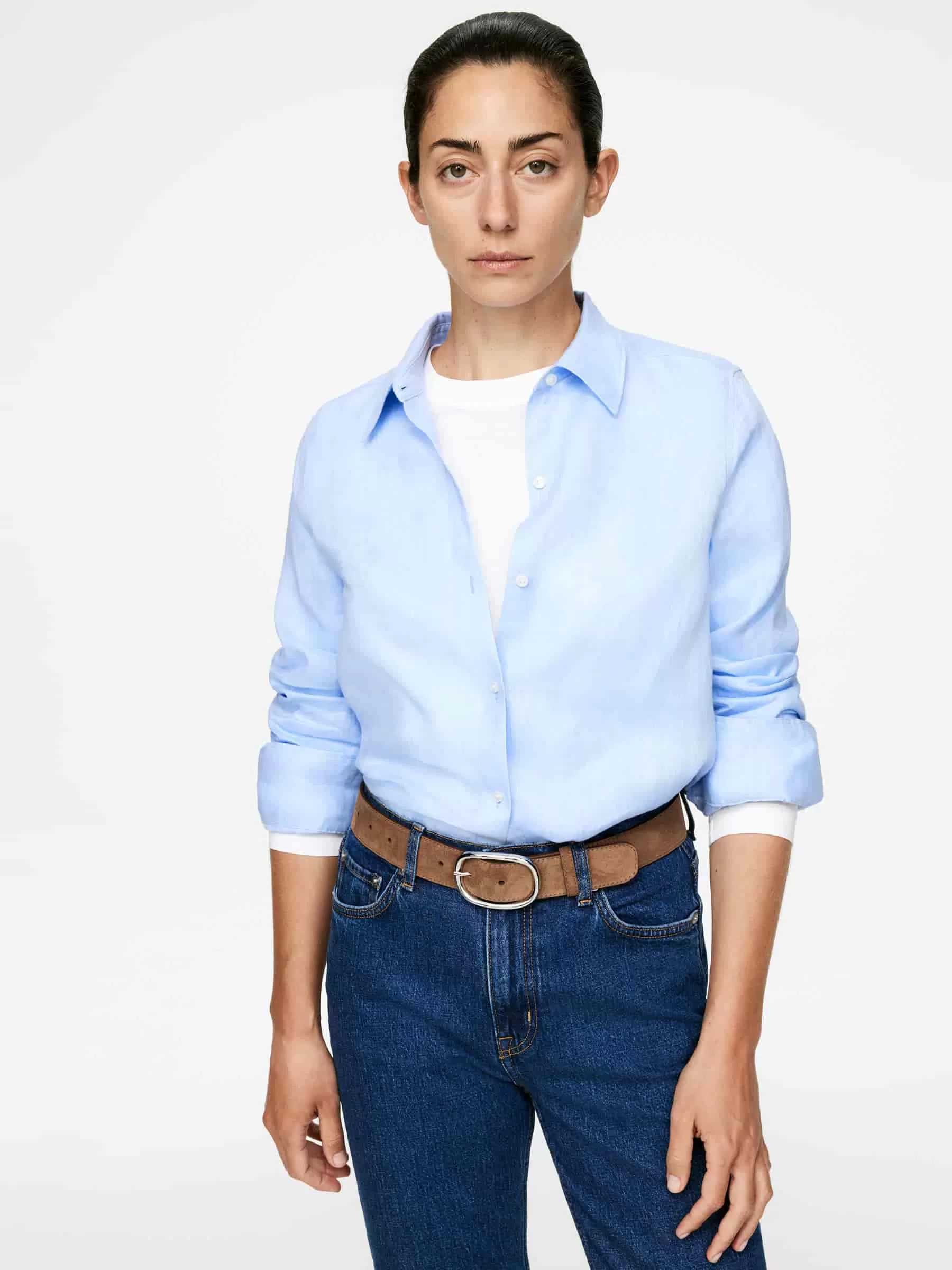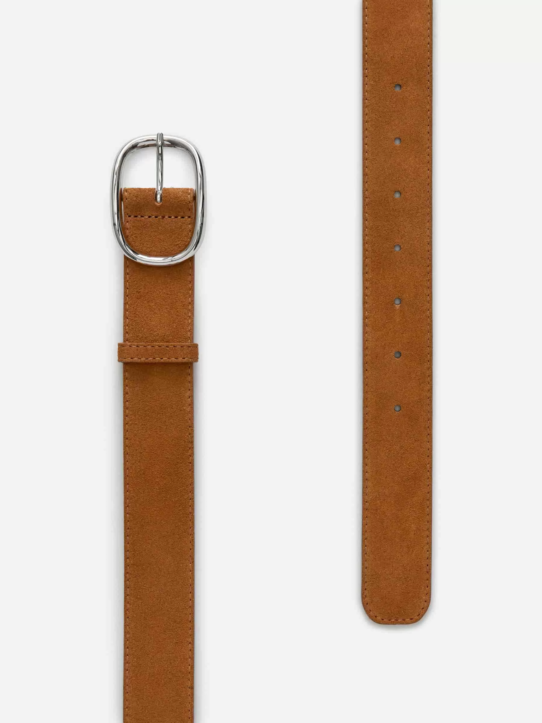 Cinturón de piel con hebilla plateada con esquinas semirredondeadas. Ancho 4 cm.