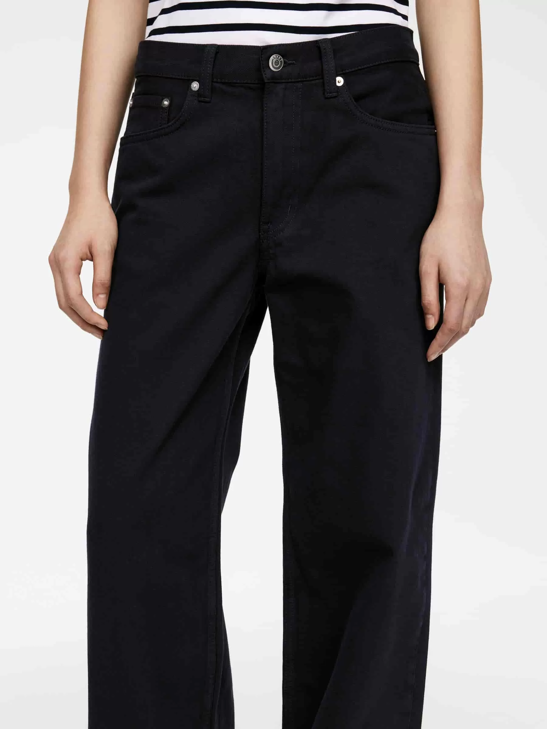 CLOUD está confeccionado en denim no elástico y presenta cintura baja, ajuste relajado y perneras holgadas. Bragueta con cremallera.