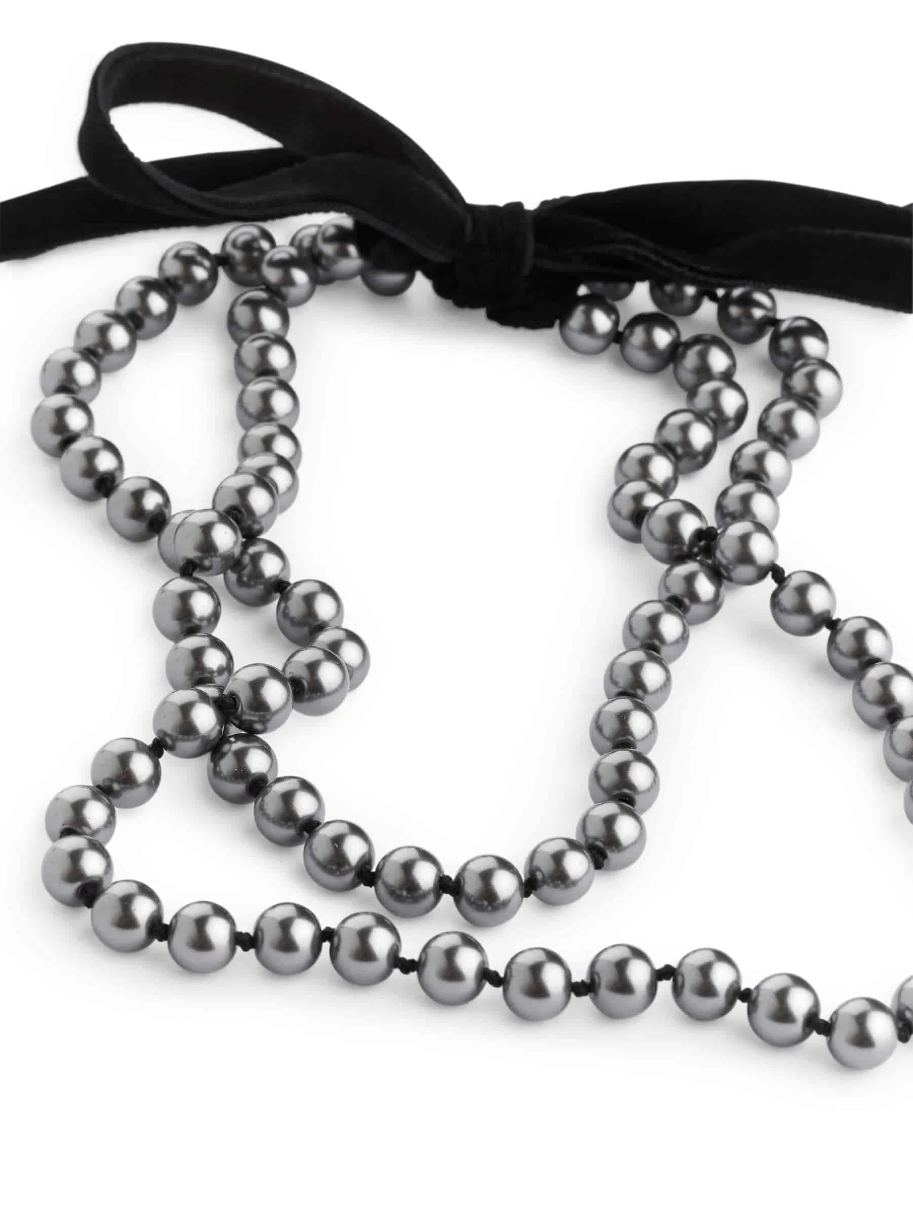 ARKE Mujer Collar de terciopelo con cuentas de vidrio Gris oscuro/Negro