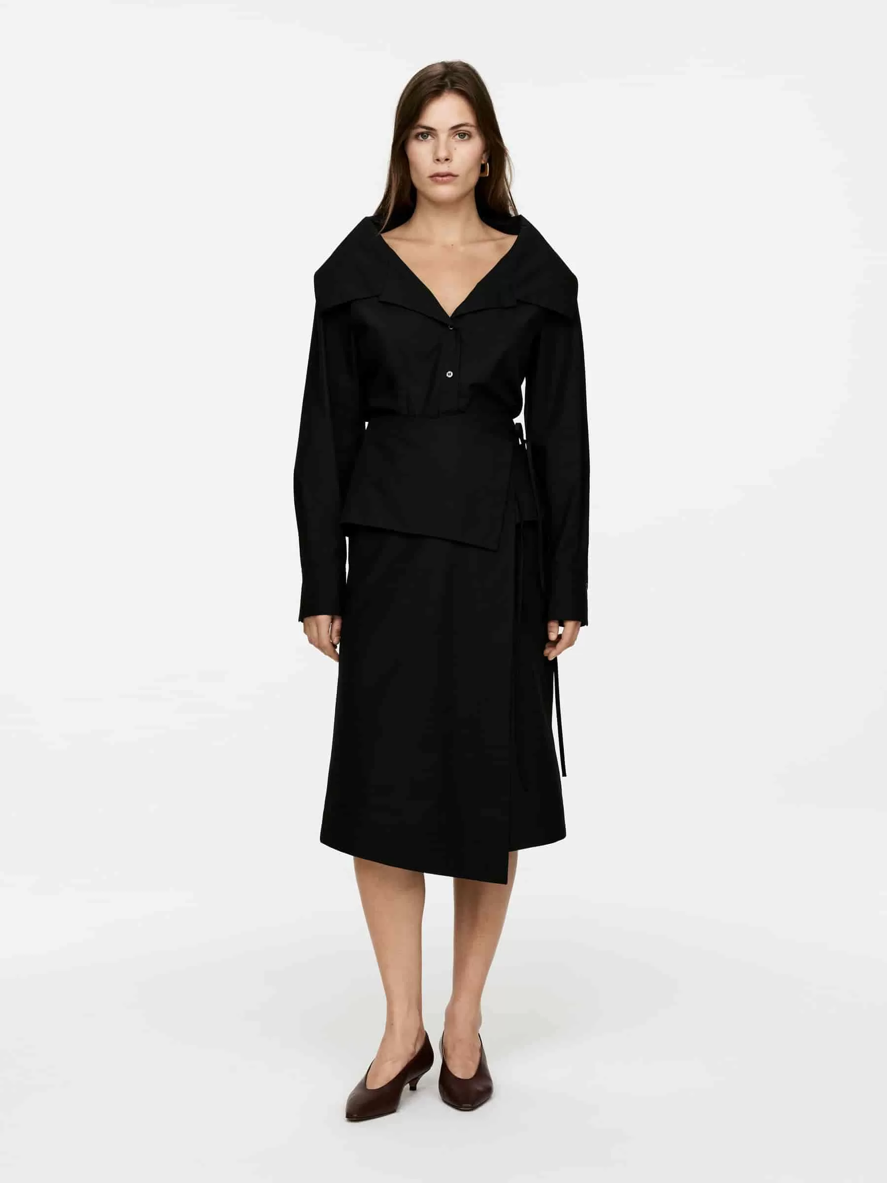 Falda cruzada confeccionada en tejido de popelina. Diseñado con un pliegue ancho y detalles de tira en la cintura. Ajuste regular.