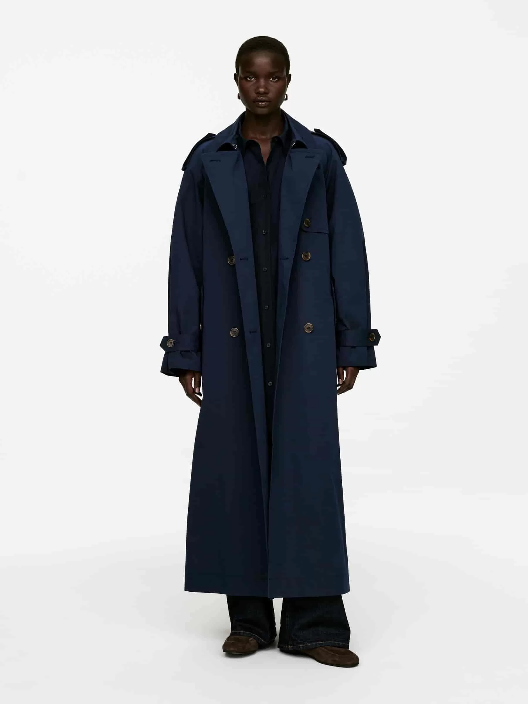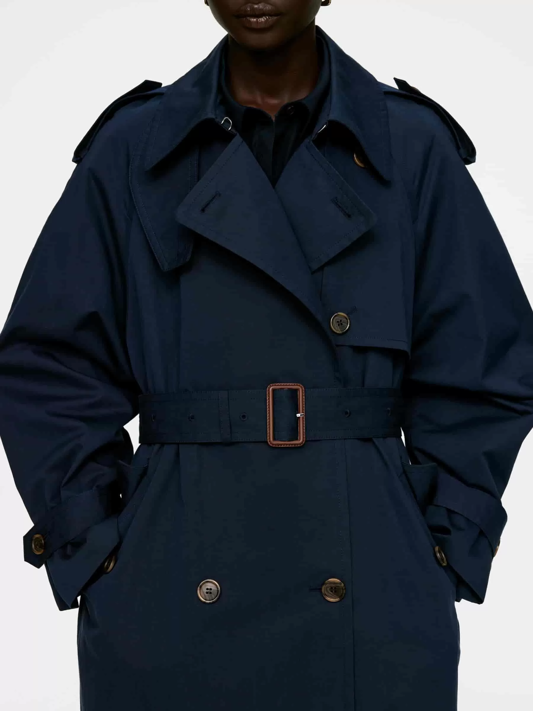 Gabardina clásica confeccionada en una mezcla de algodón. Un modelo extragrande con cinturón con ojales y forro en las mangas. Esta chaqueta forma parte de ARKET 2-in-1 Series™, un sistema de capas funcionales y forros aislantes que se pueden usar como prendas individuales o unidas entre sí.