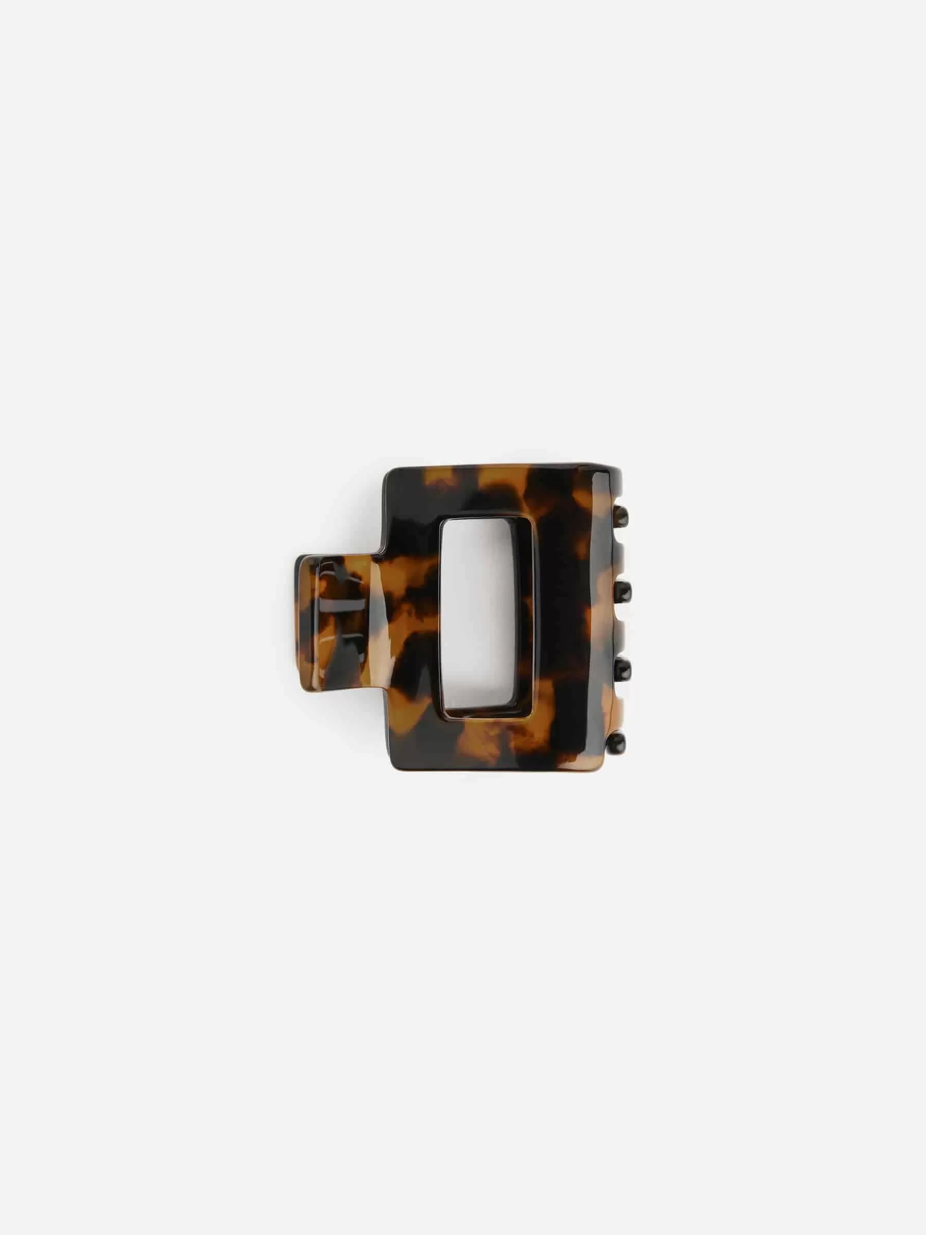 Garra para el pelo con forma cuadrada fabricada en acetato reciclado. Medidas 4,5 cm x 4,6 cm.
