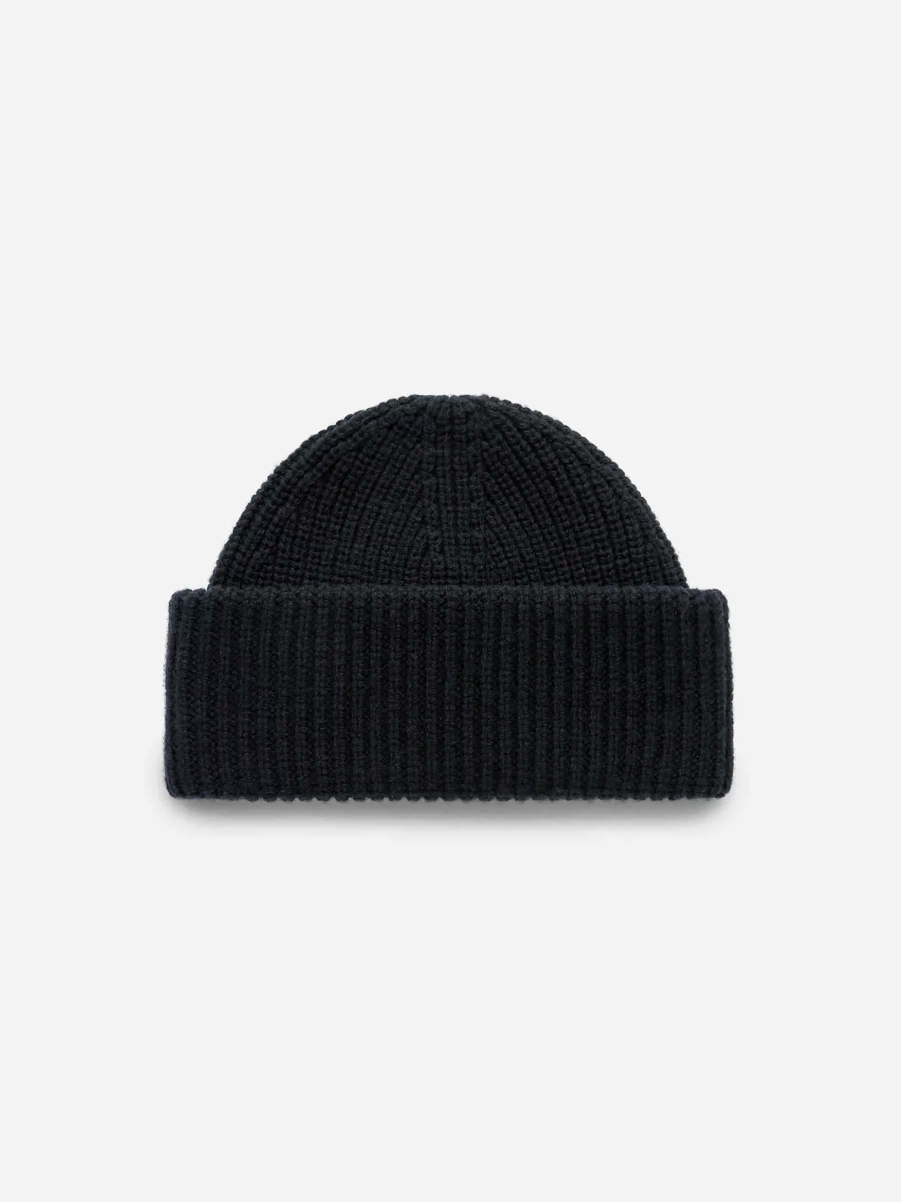 Gorro de lana con doblez tejido en punto medio cardigan. Este gorro contiene 100% lana RWS (TE-00047206). Los productos certificados según el Estándar de Lana Responsable (RWS) contienen fibra de lana procedente de granjas certificadas de forma independiente según los requisitos de bienestar animal y gestión de la tierra.