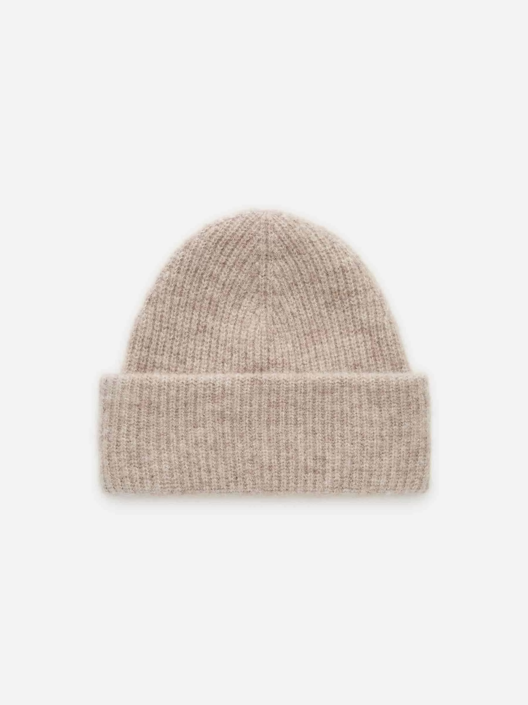 Gorro grueso de punto acanalado confeccionado con una mezcla de alpaca, lana y poliéster. Con una forma más ajustada y un ala ancha que se puede llevar doblada o desplegada. Este estilo contiene 31% RAS Alpaca y 32% lana RWS (TE-00047206). Los productos certificados según el Estándar de lana responsable (RWS) y el Estándar de alpaca responsable (RAS) contienen lana y fibra de alpaca de granjas certificadas de forma independiente según los requisitos de bienestar animal y gestión de la tierra.