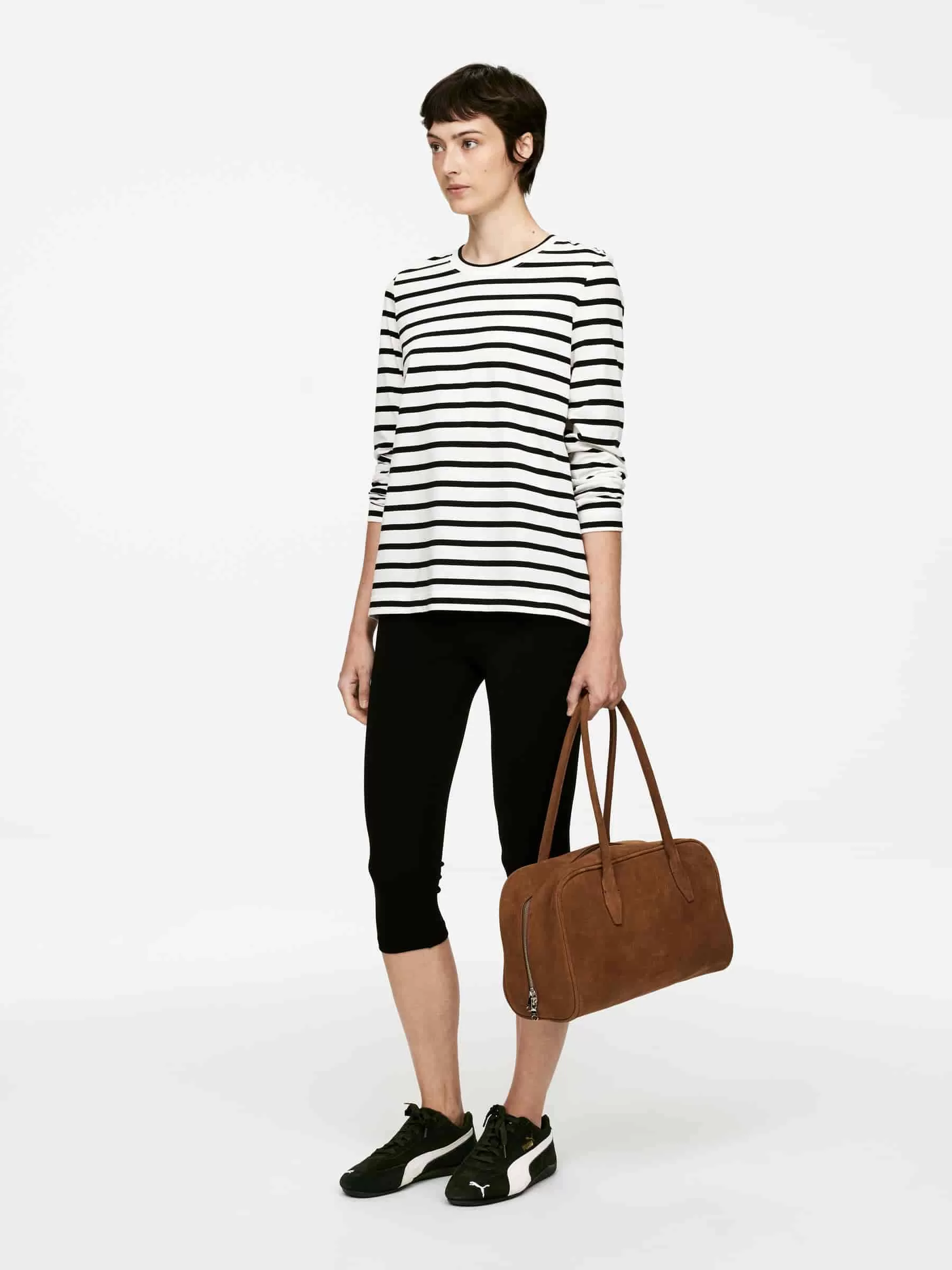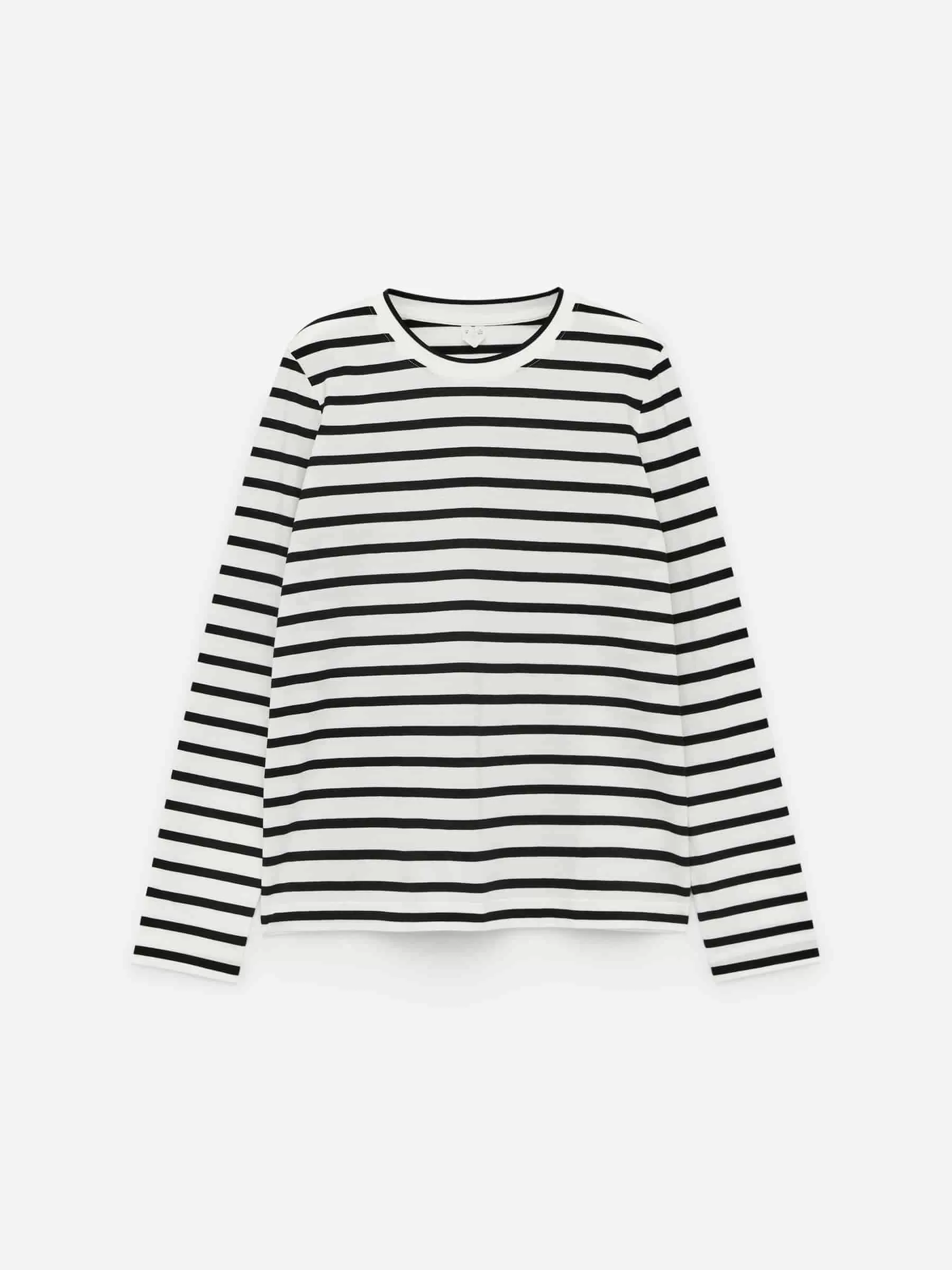 Camiseta de manga larga confeccionada con un punto ligero de algodón. Diseñado con cuello redondo y corte estándar.