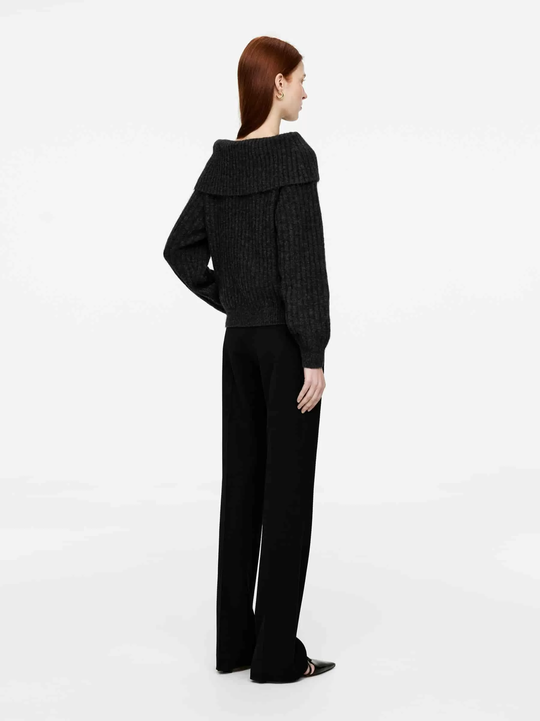 Jersey con hombros descubiertos y cuello vuelto. Este modelo está tejido a canalé con una mezcla de lana de alpaca. Corte ligeramente oversize. El jersey contiene un 31% de lana RWS (TE-00047206). Los productos certificados según el Estándar de Lana Responsable (RWS) contienen fibra de lana procedente de granjas certificadas de forma independiente según los requisitos de bienestar animal y gestión de la tierra.