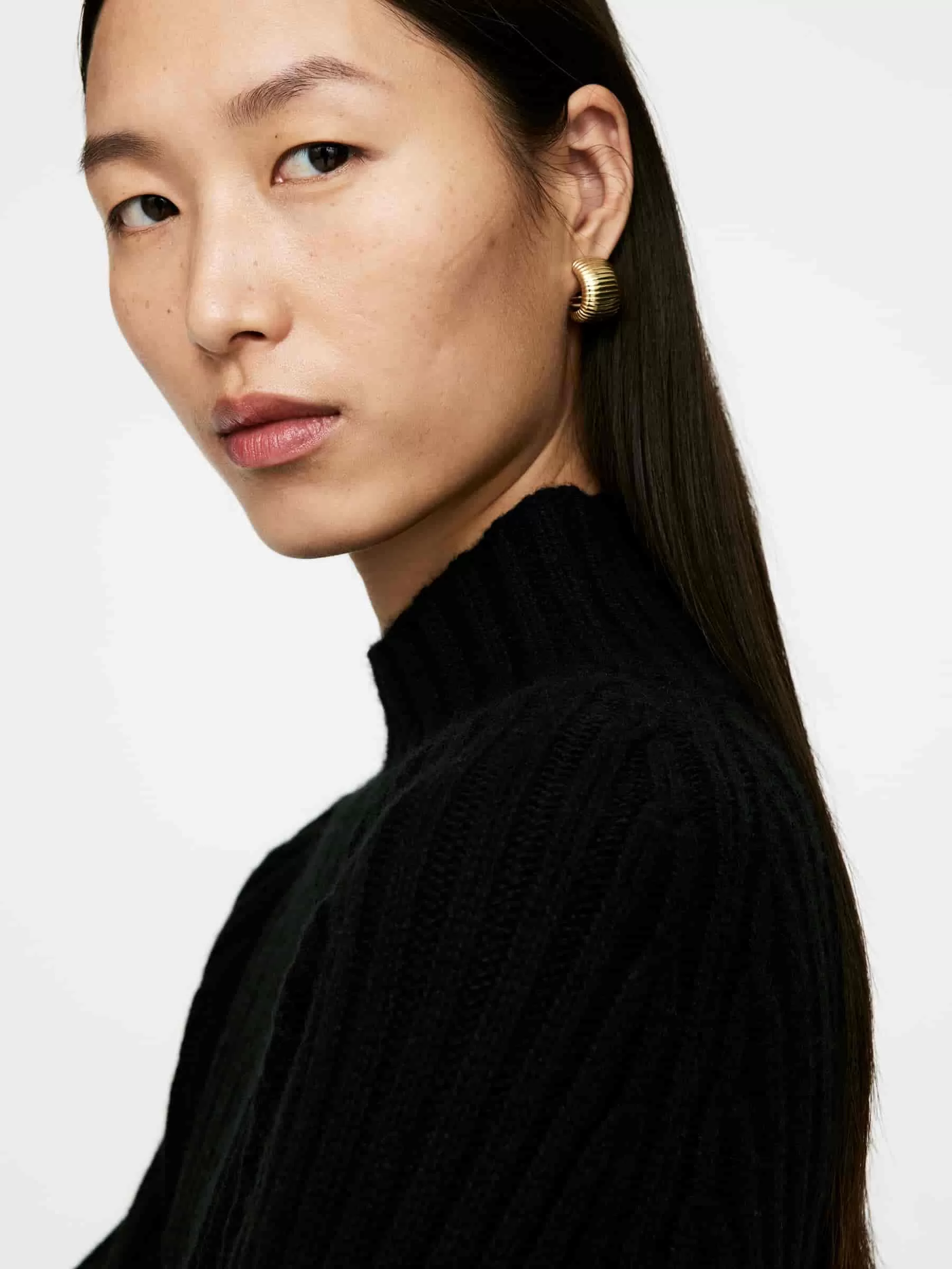 Jersey confeccionado en punto canalé de lana. Un modelo entallado con cuello alto y manga larga. El jersey contiene 100% lana RWS (TE-00047206). Los productos certificados según el Estándar de Lana Responsable (RWS) contienen fibra de lana procedente de granjas certificadas de forma independiente según los requisitos de bienestar animal y gestión de la tierra.