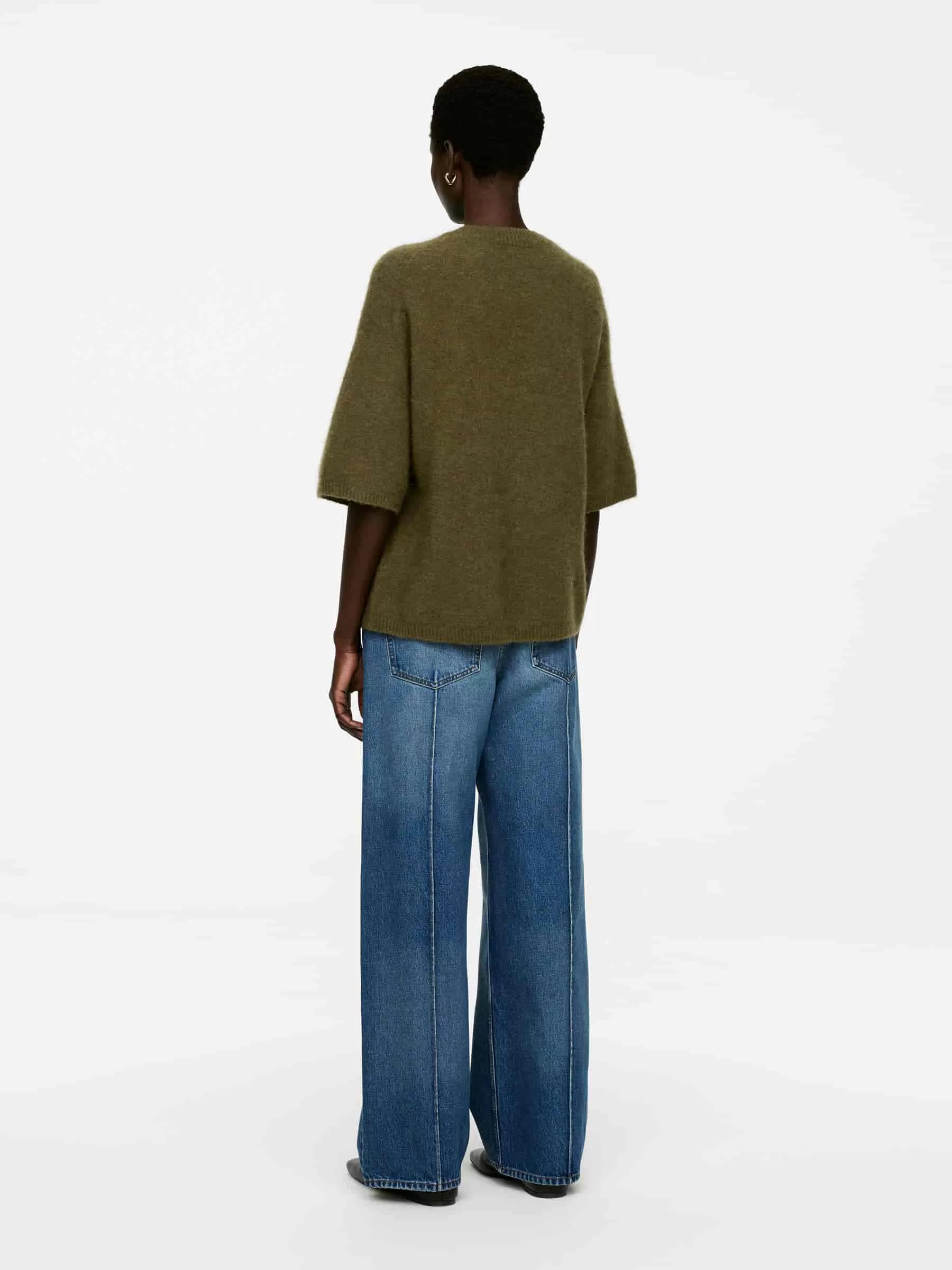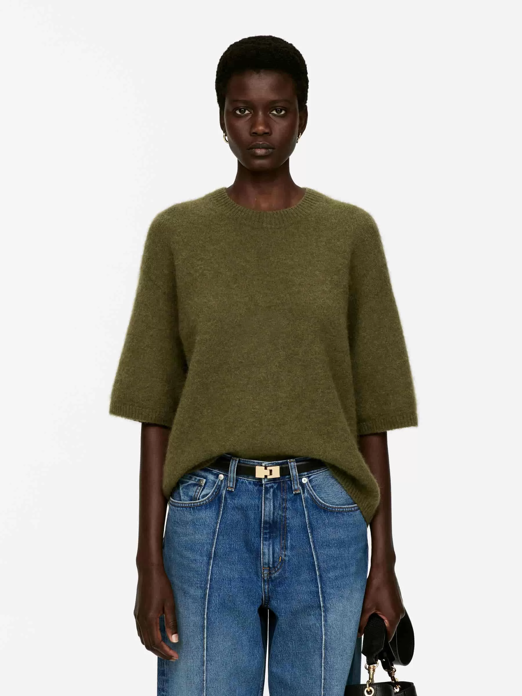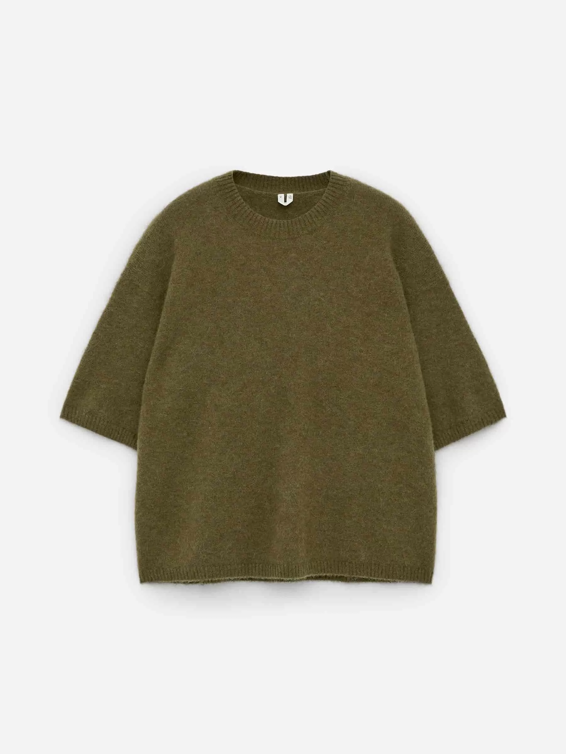 Jersey de manga corta confeccionado con alpaca y lana que aportan comodidad. Un modelo de cuello redondo con corte holgado. Los ribetes acanalados detallan el look. Este estilo contiene 31% RAS Alpaca y 31% lana RWS (TE-00047206). Los productos certificados según el Estándar de lana responsable (RWS) y el Estándar de alpaca responsable (RAS) contienen lana y fibra de alpaca de granjas certificadas de forma independiente según los requisitos de bienestar animal y gestión de la tierra.