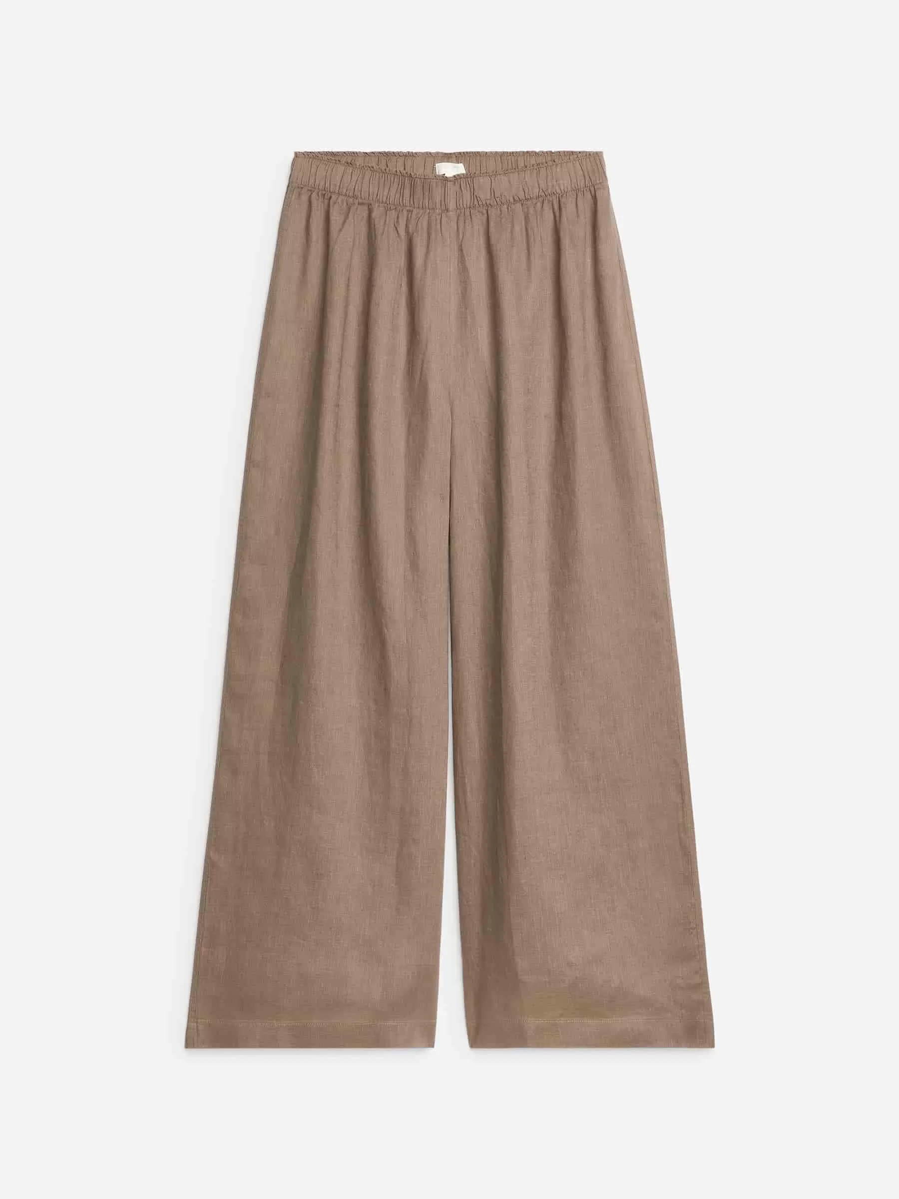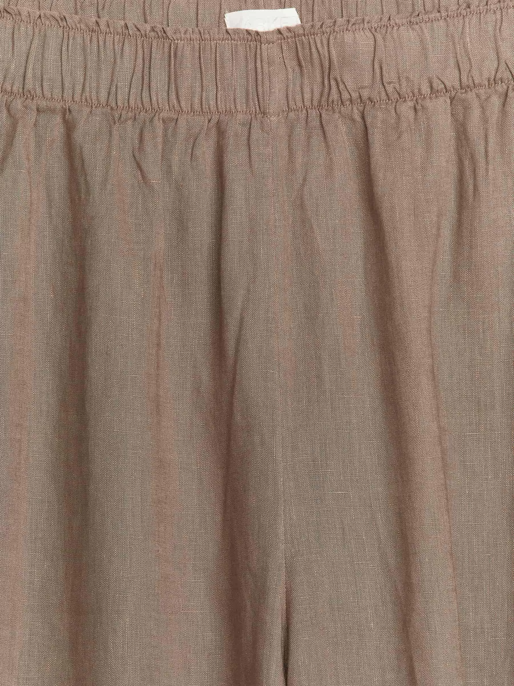 Pantalón ancho confeccionado en puro lino. Detallado con elásticos anchos en la cintura.