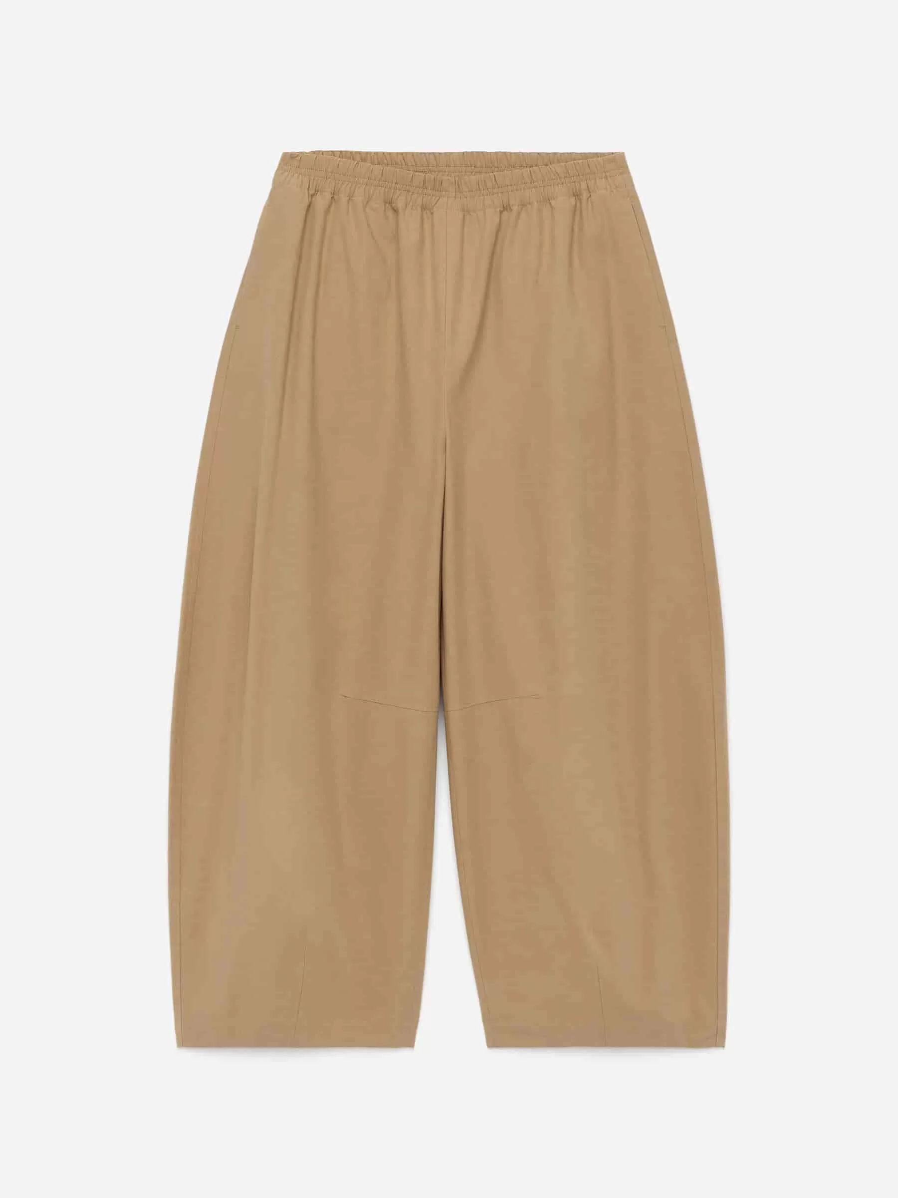 Pantalón tubo de popelín con elásticos y detalle de pinzas en cintura. Un estilo de tiro medio con bolsillos laterales y un ajuste relajado.