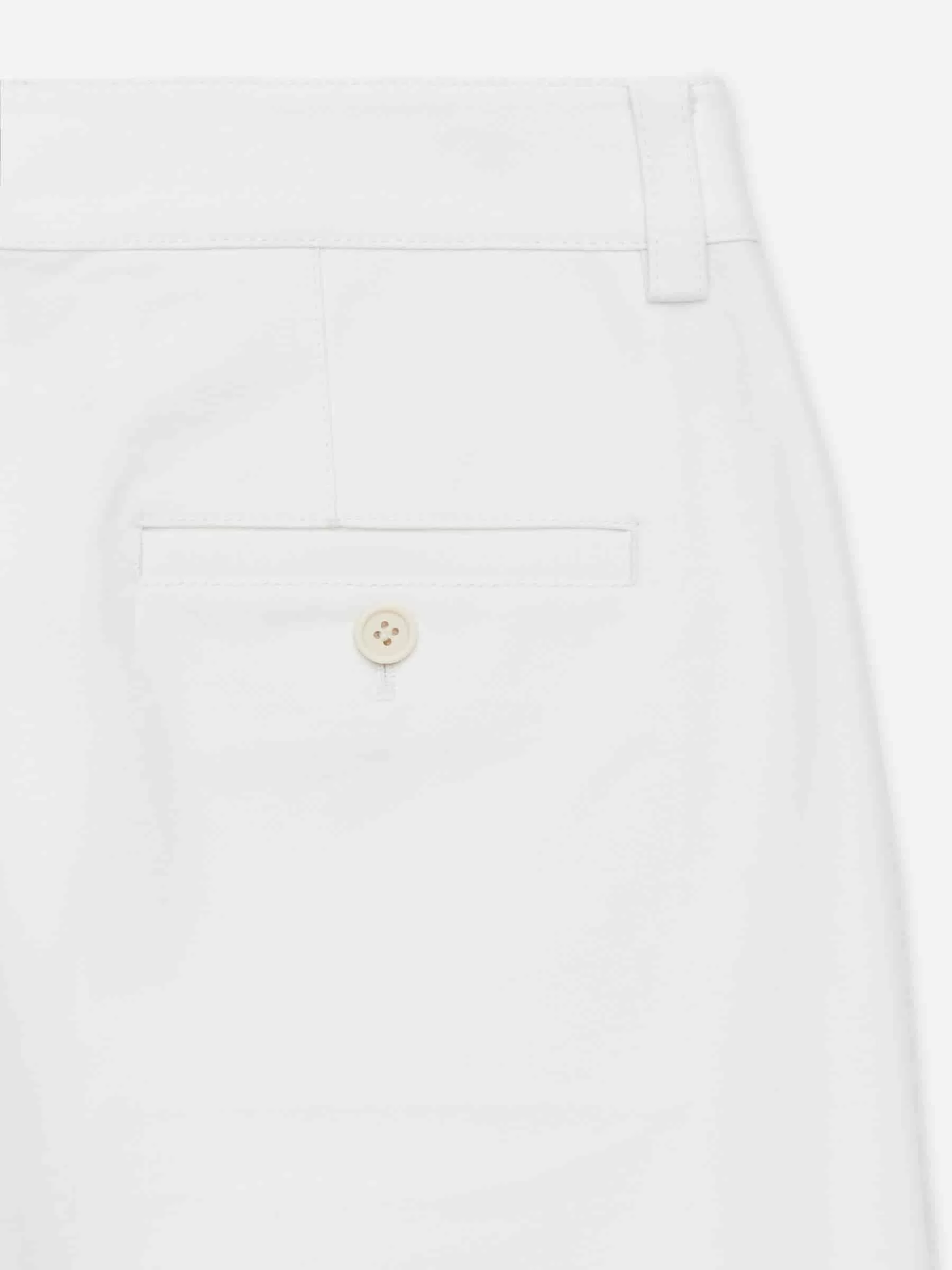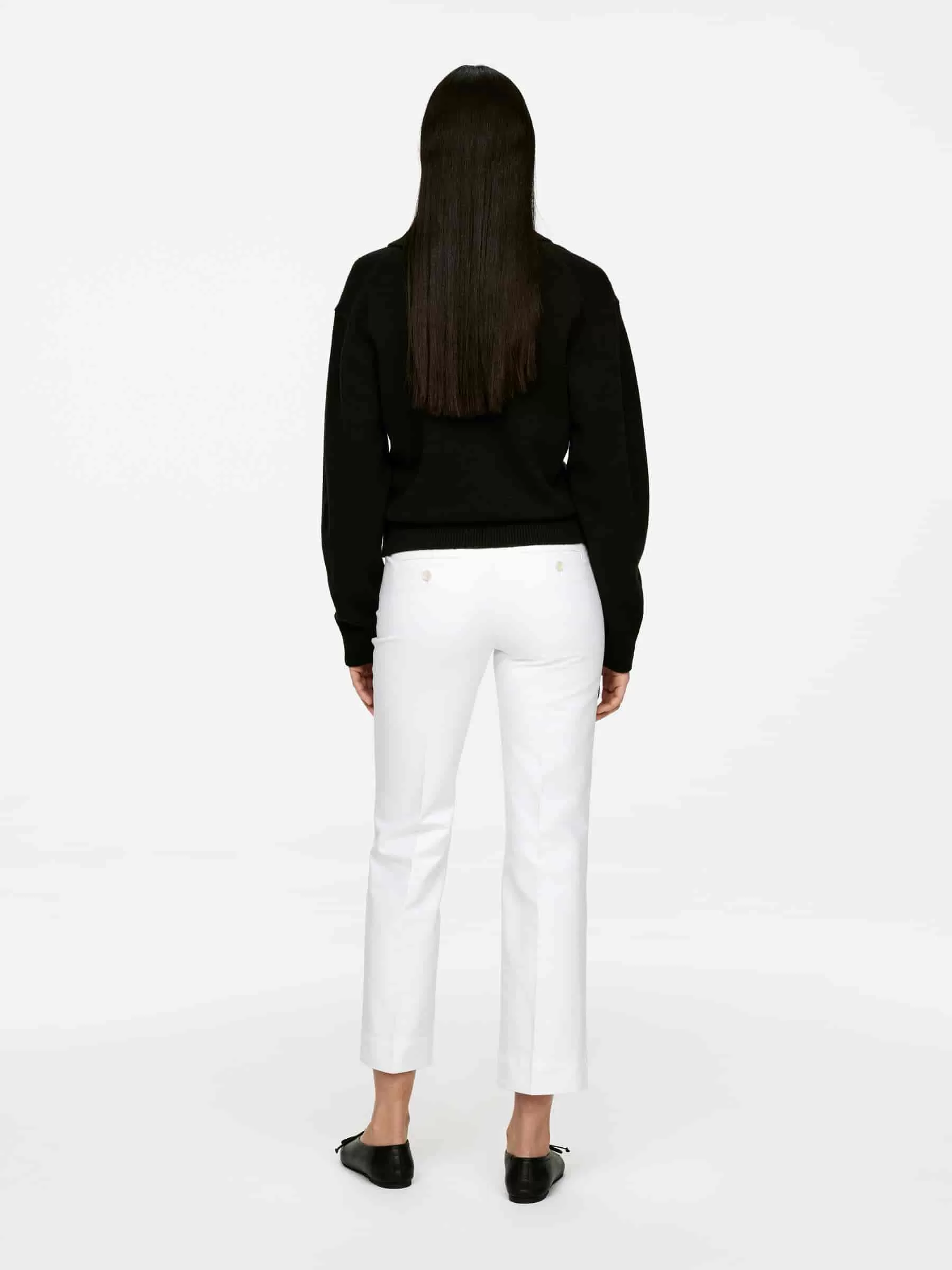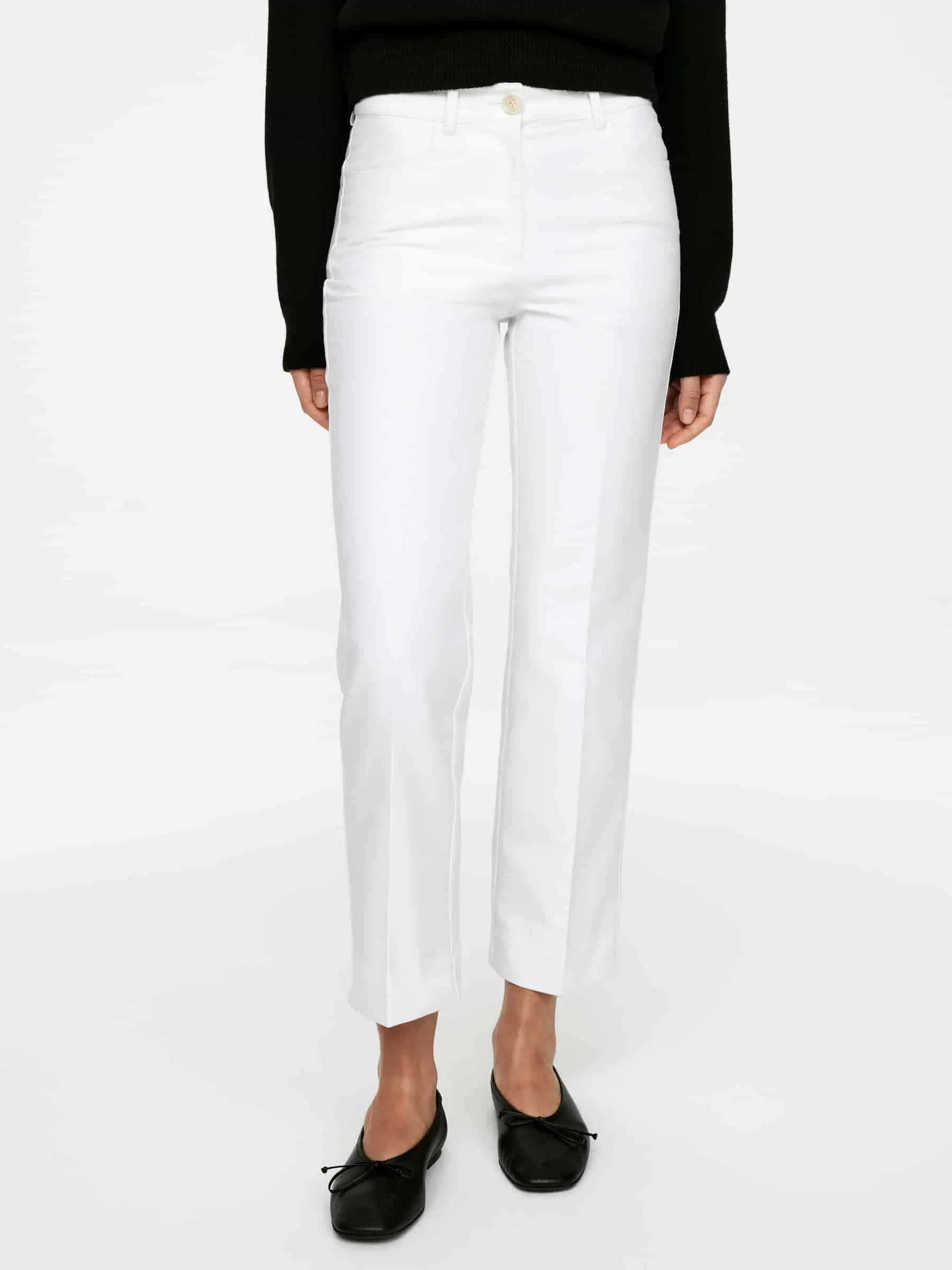 Pantalón entallado con raya planchada en la parte delantera. Diseñado con cintura de tiro medio y perneras rectas. Cierre con cremallera y botón. Bolsillos delanteros y bolsillos de ribete con cierre de botón en la parte trasera.