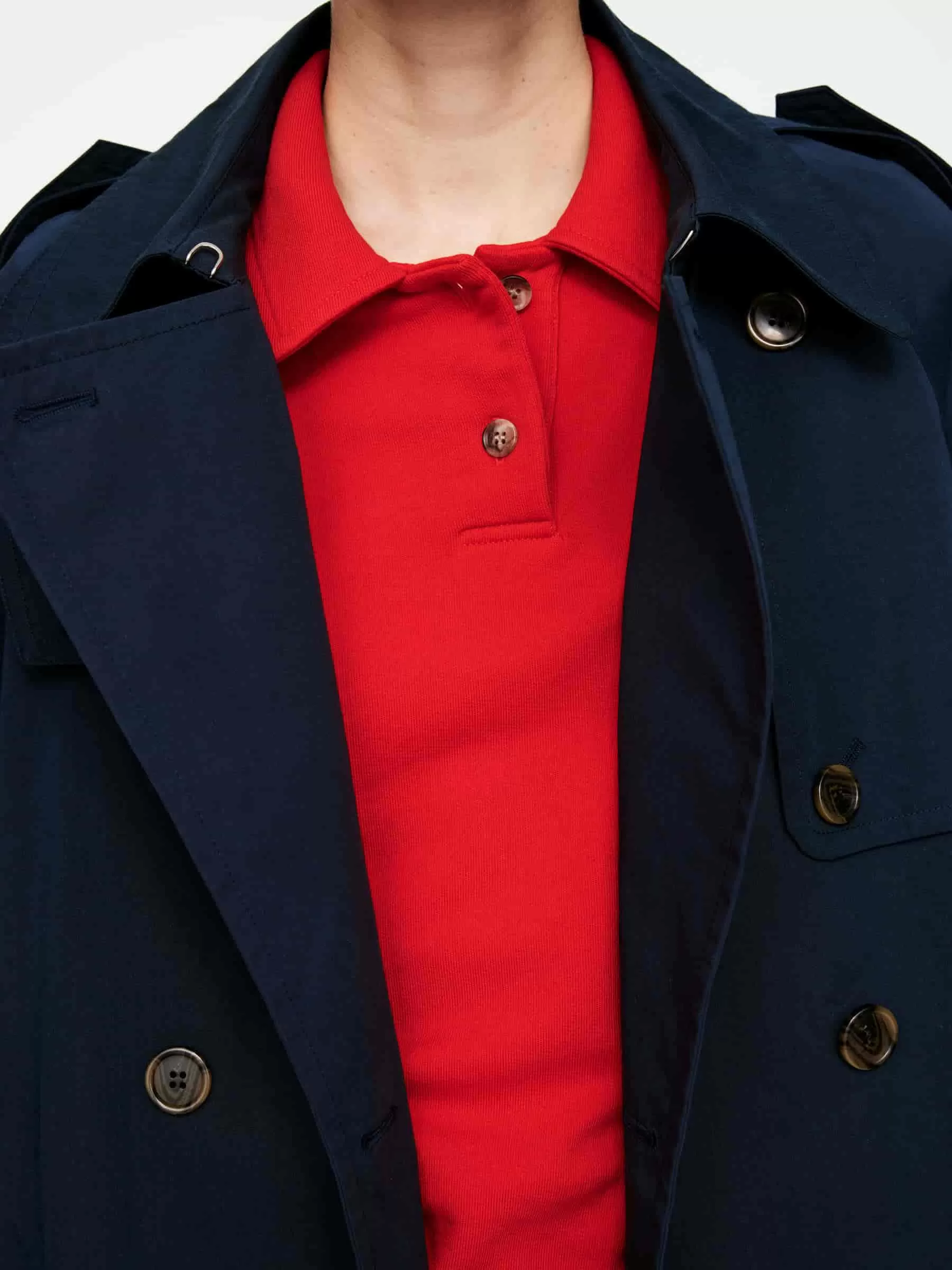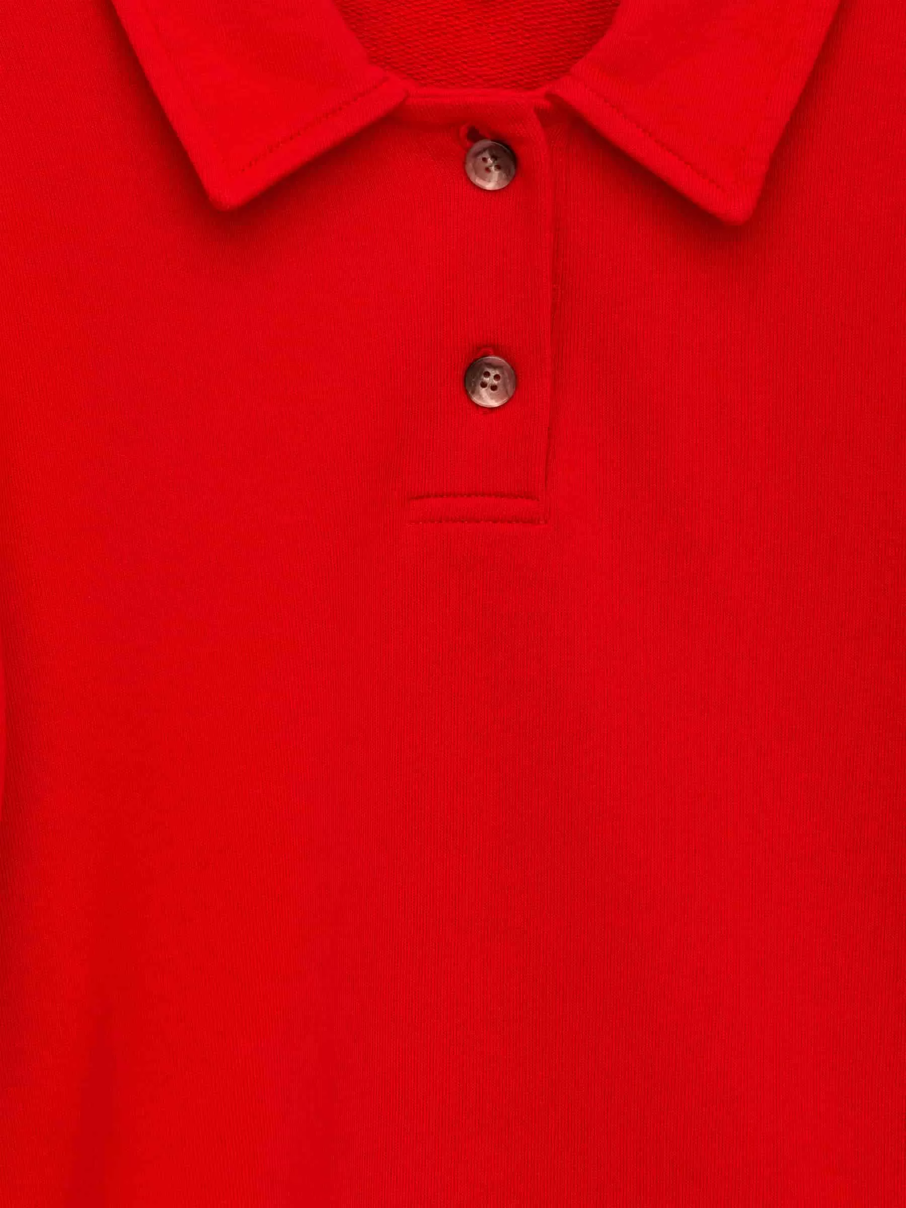 Polo confeccionado en algodón con parte inferior de felpa francesa para propiedades que absorben la humedad. Diseñado con media tapeta abotonada y ribetes de canalé.