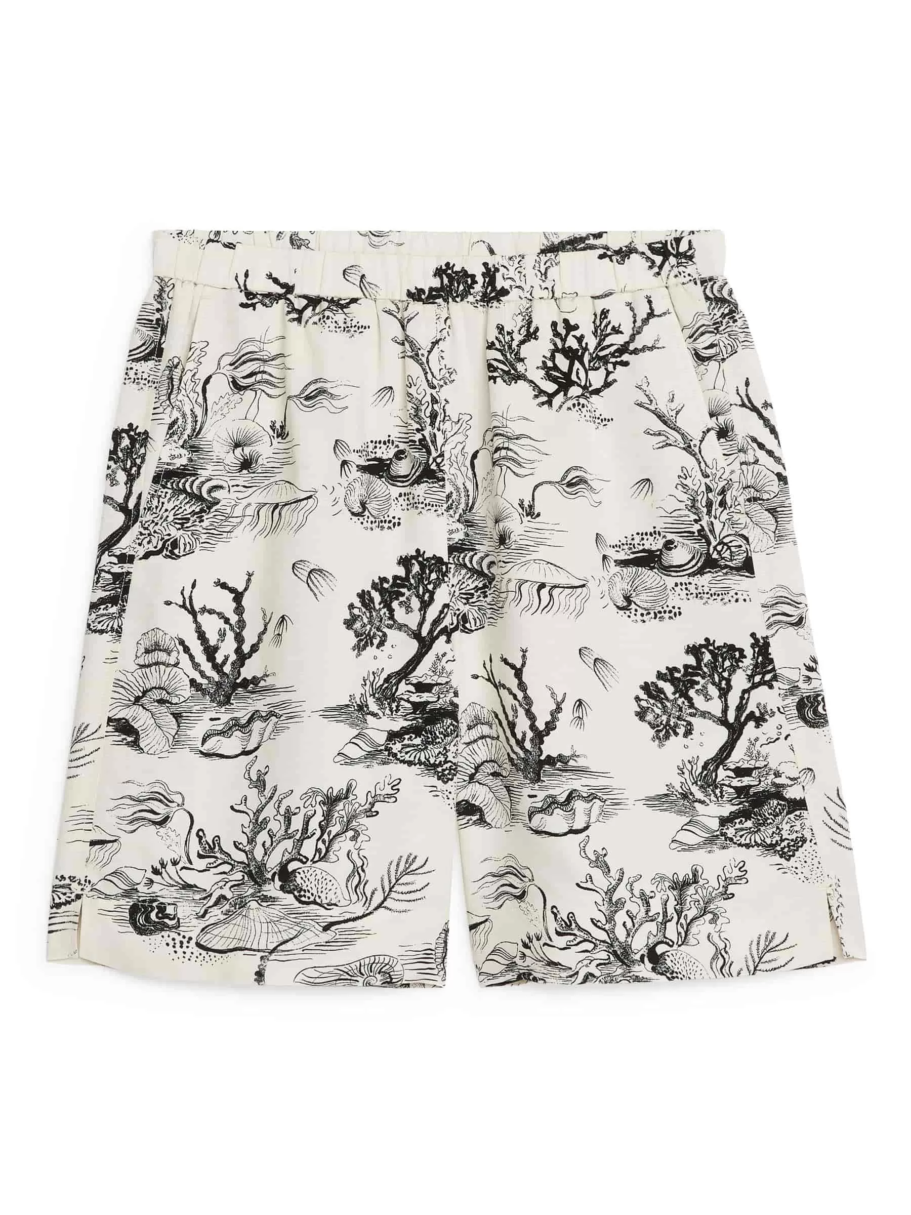 Shorts sin cordones con estampado integral. Un modelo de cintura media con elásticos en la cintura y bolsillos laterales. Corte que cae a mitad del muslo.