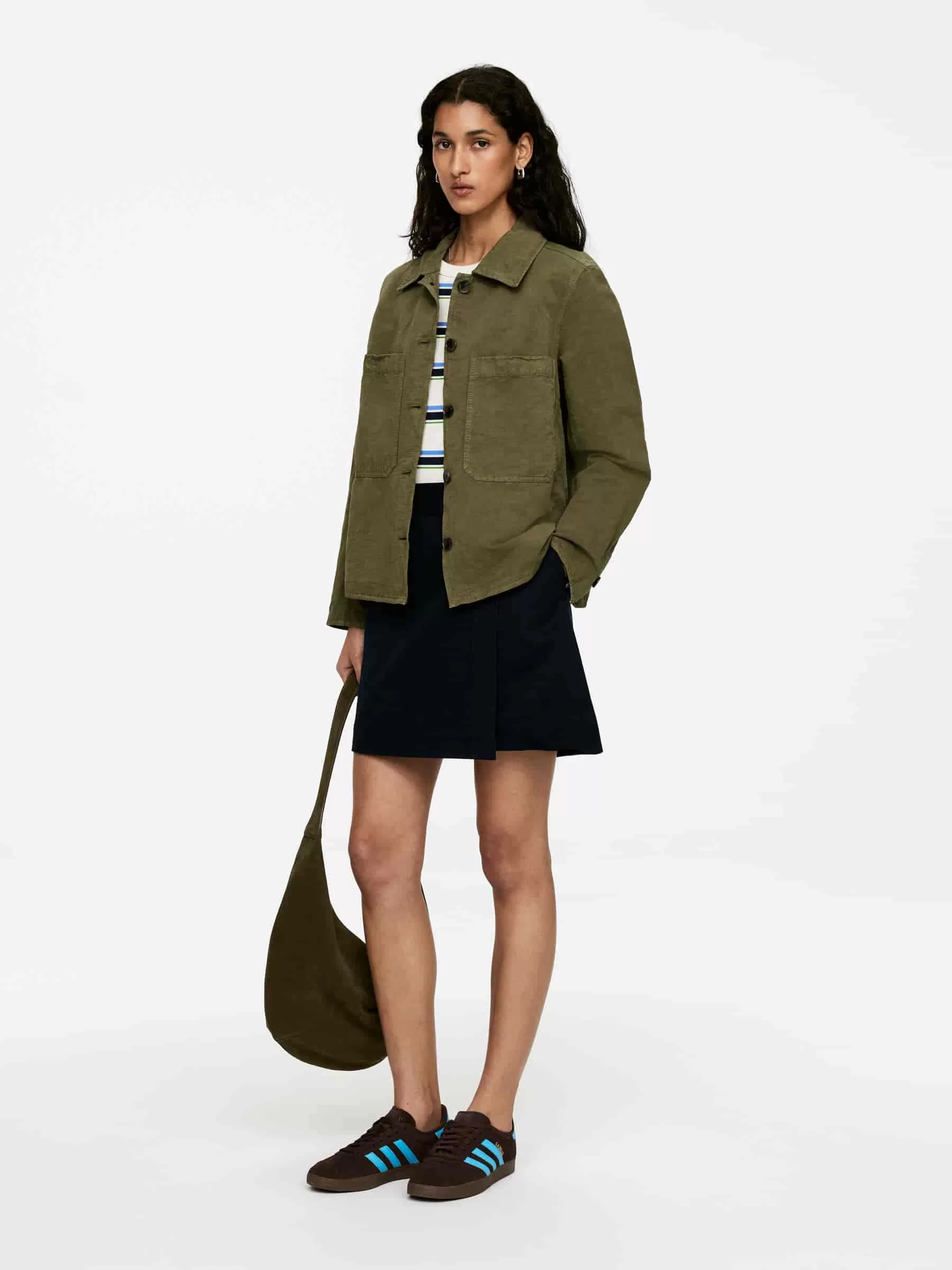 Sobrecamisa inspirada en la ropa de trabajo con corte corto y cuadrado. Detallado con amplios bolsillos de parche en el pecho y botones centrales delanteros en un color contrastante.